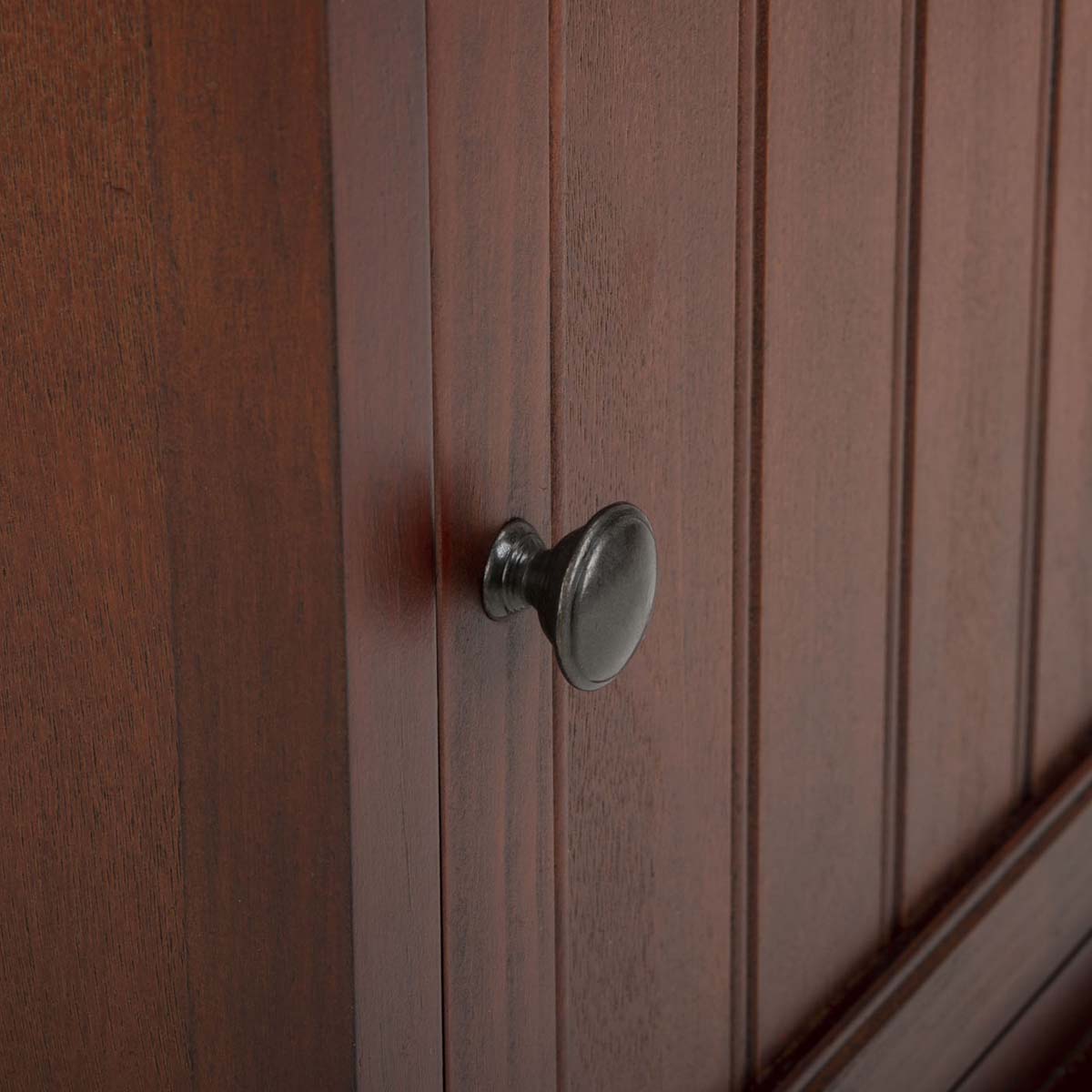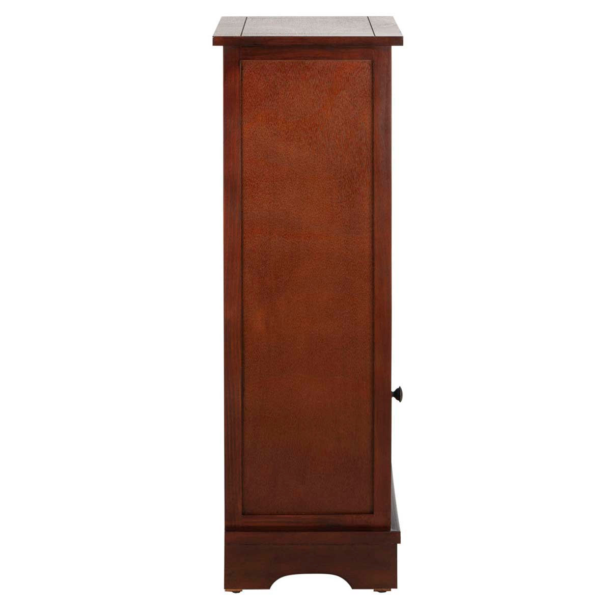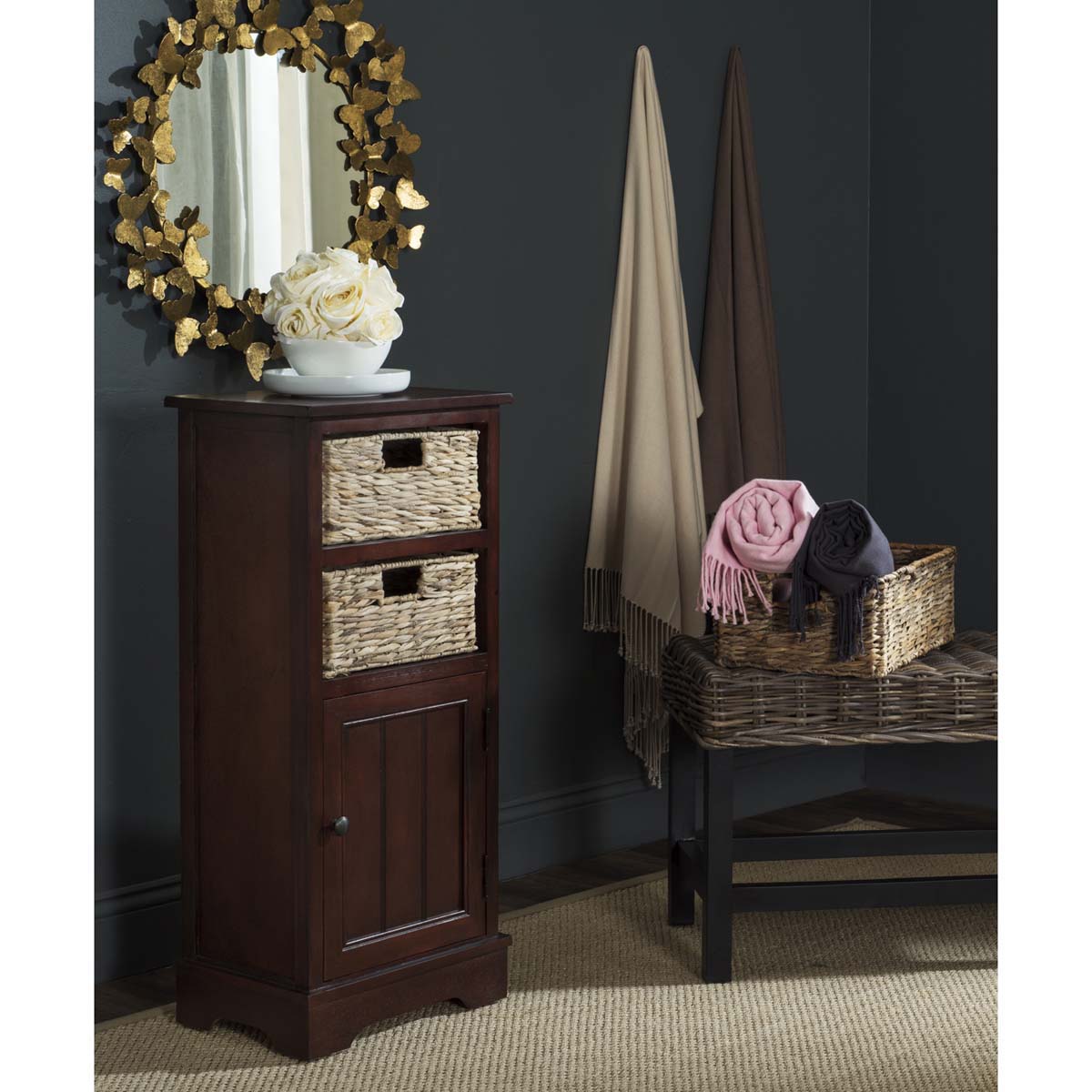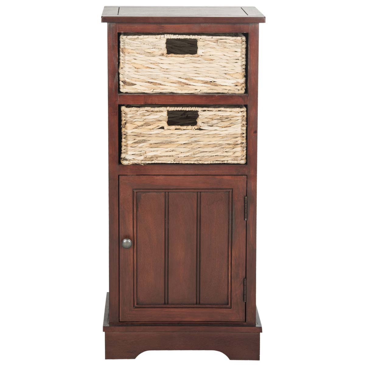 This Connery Cabinet elevates traditional farmhouse charm for today's classic contemporary interiors. Crafted of pine with wicker baskets above a closed door cabinet in a rich cherry finish, Connery keeps essentials close at hand yet out of sight.