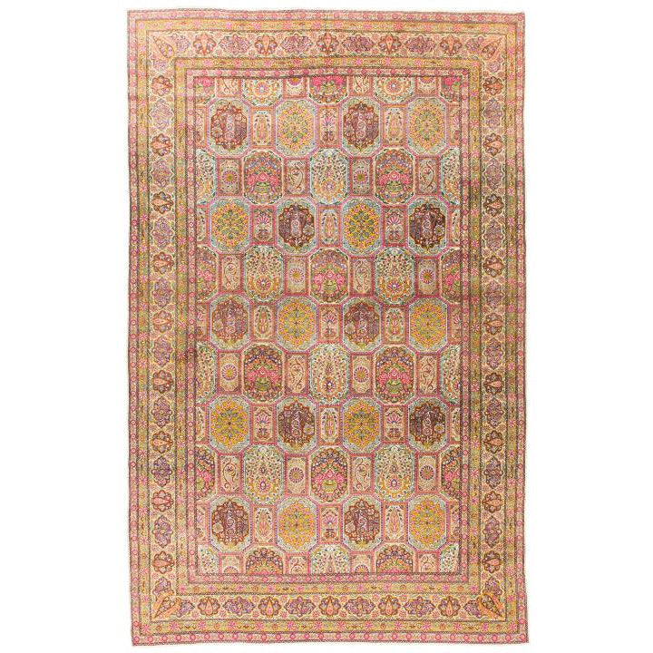 Antique Hand Knotted Persian Kerman Pink / Yellow / Cream Rug - 9'-6" x 15'