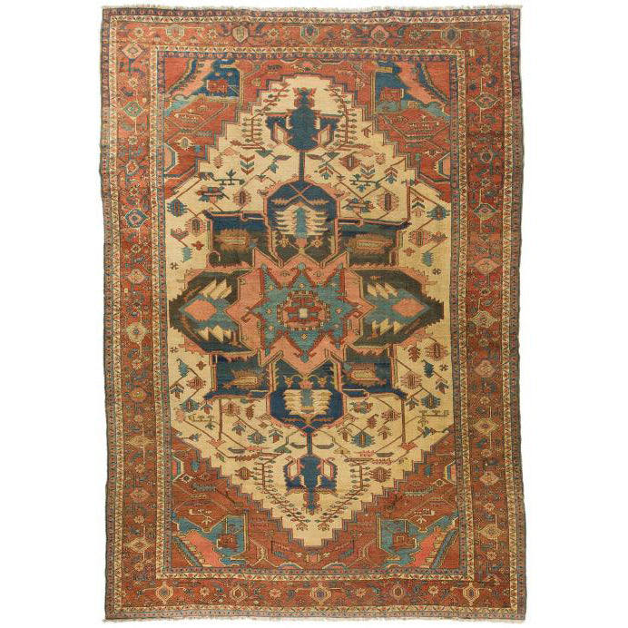 Antique Persian Serapi Cream / Rust / Navy Rug - 10'-3" x 14'-1"