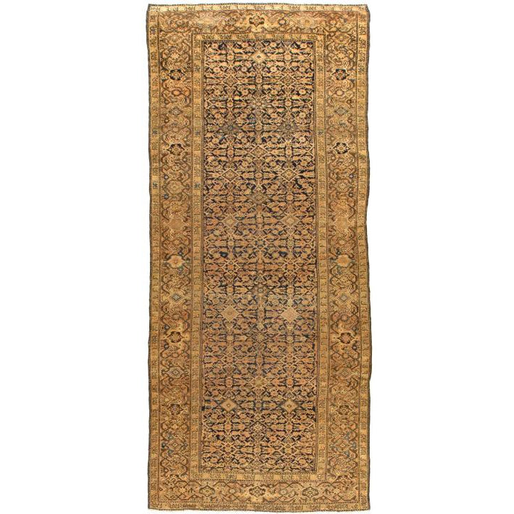 Malayer Antique Handmade Gold / Navy Persian Wool Rug - 5'-0" x 11'-0"