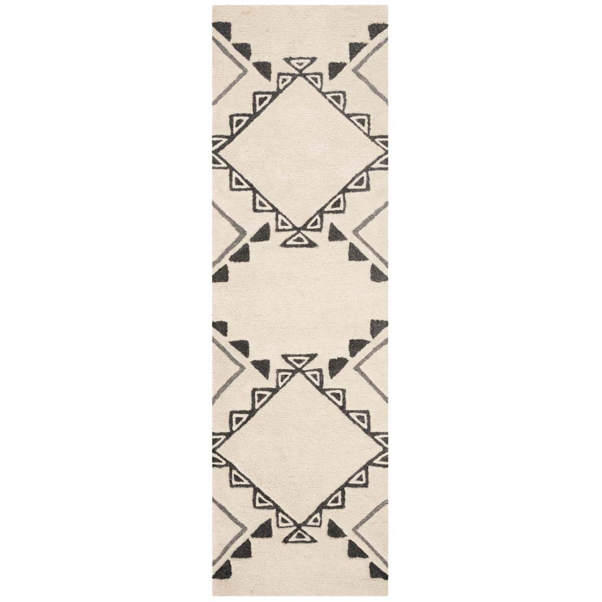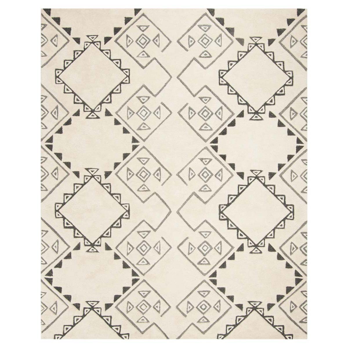 The color palette of ivory and grey exudes a serene and versatile aesthetic that seamlessly integrates with any decor, from contemporary to classic. Adorned with a captivating geometric pattern, the design of this rug features bold, symmetrical shapes that create a sense of harmony and balance in your space.