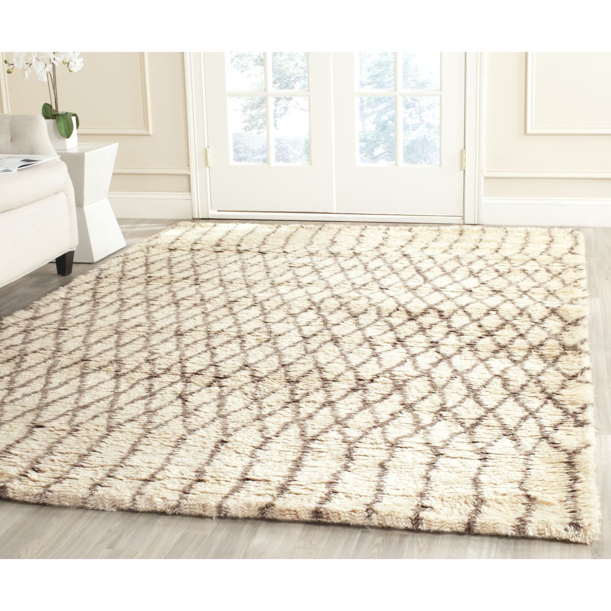Immerse yourself in the elegant ivory and grey hues that form a harmonious canvas for the captivating lattice pattern adorning this rug. The intricate interplay of lines creates a subtle yet striking visual impact, blending seamlessly with a variety of decor aesthetics from contemporary to classic.