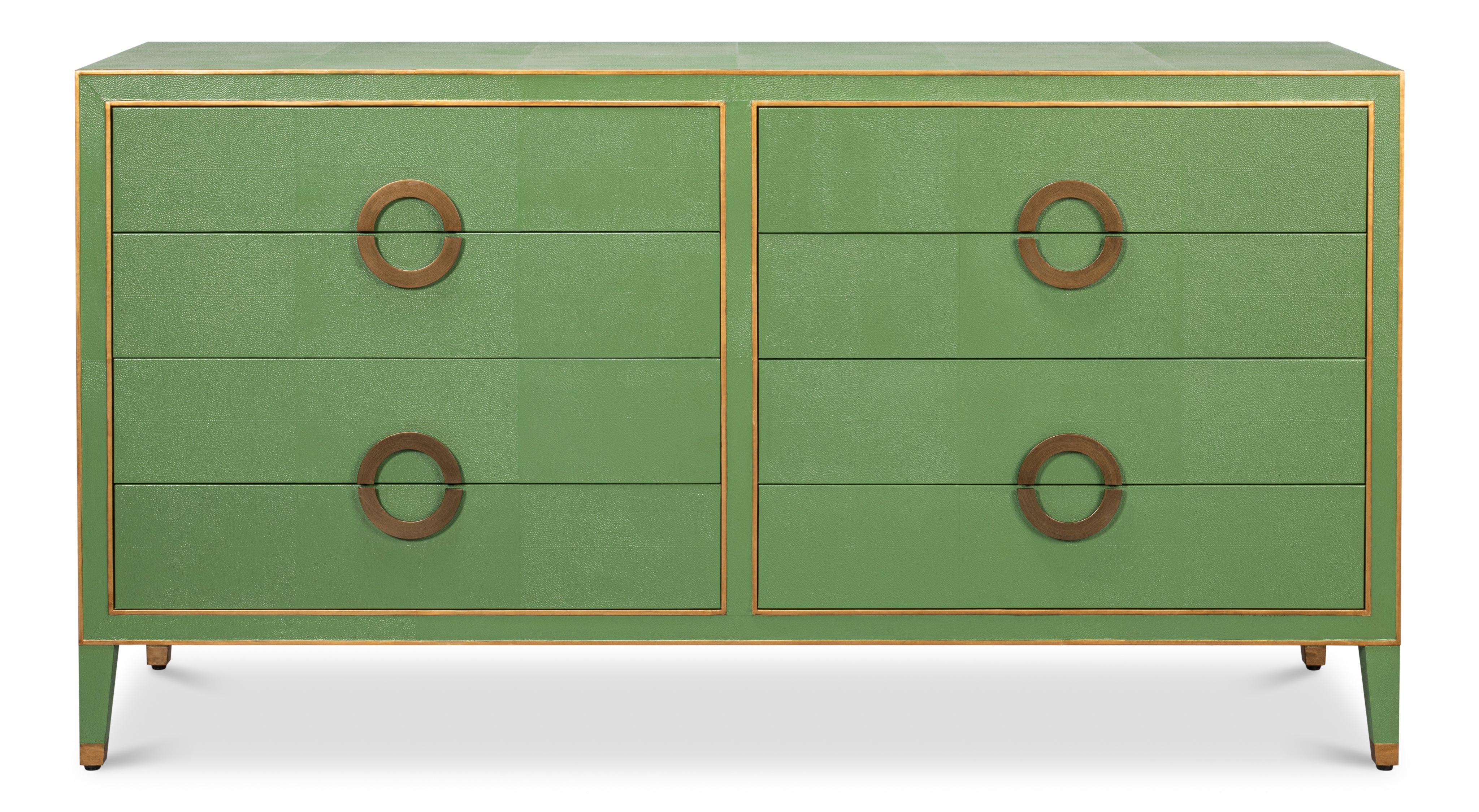 Wood, Embossed Shagreen Leather - 8 Drawers, Watercress Green Finish