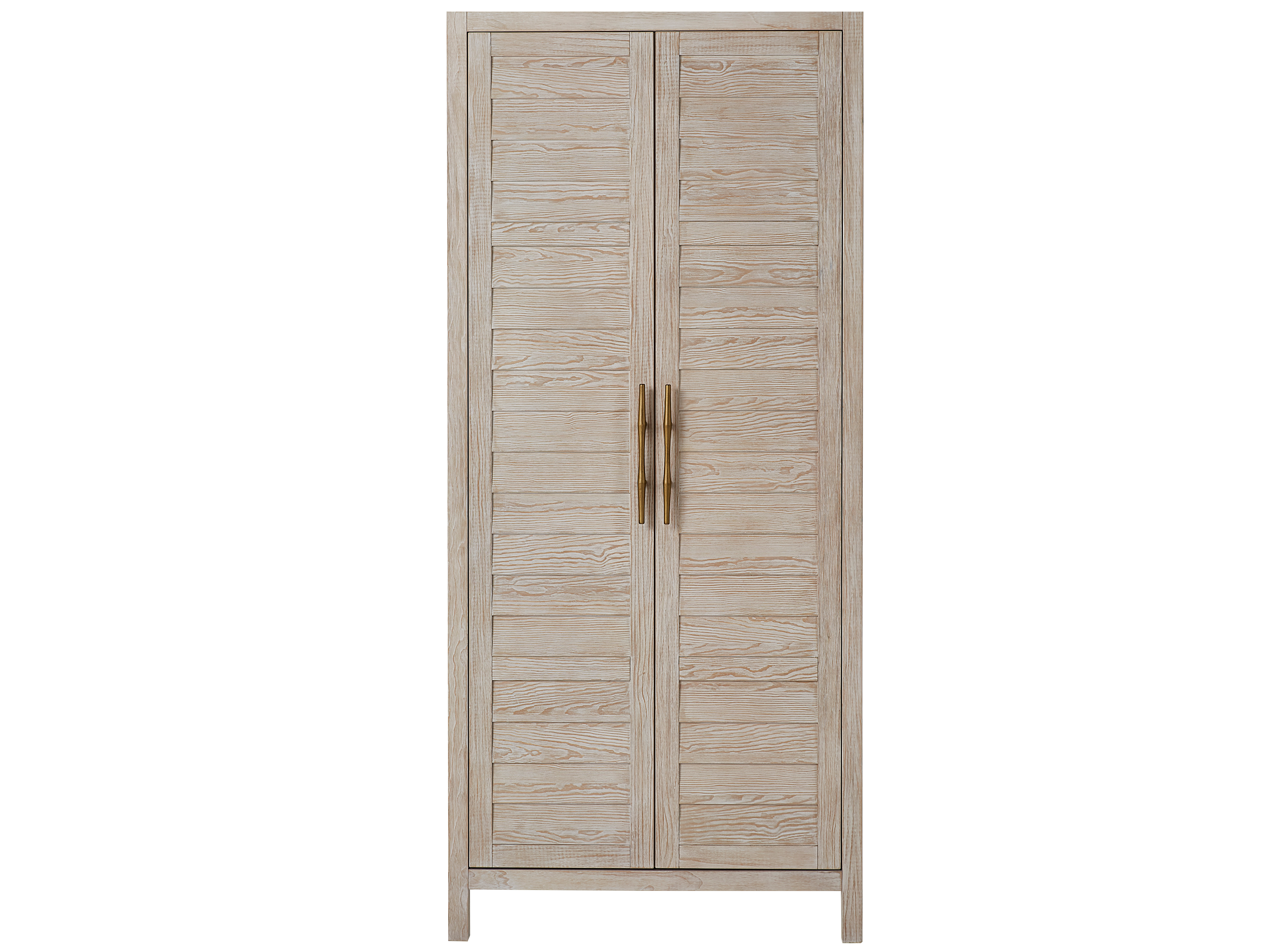 A stunning natural finish, perfectly paneled doors and sleek bronze bar hardware define the Getaway Utility Cabinet, an essential home storage piece.