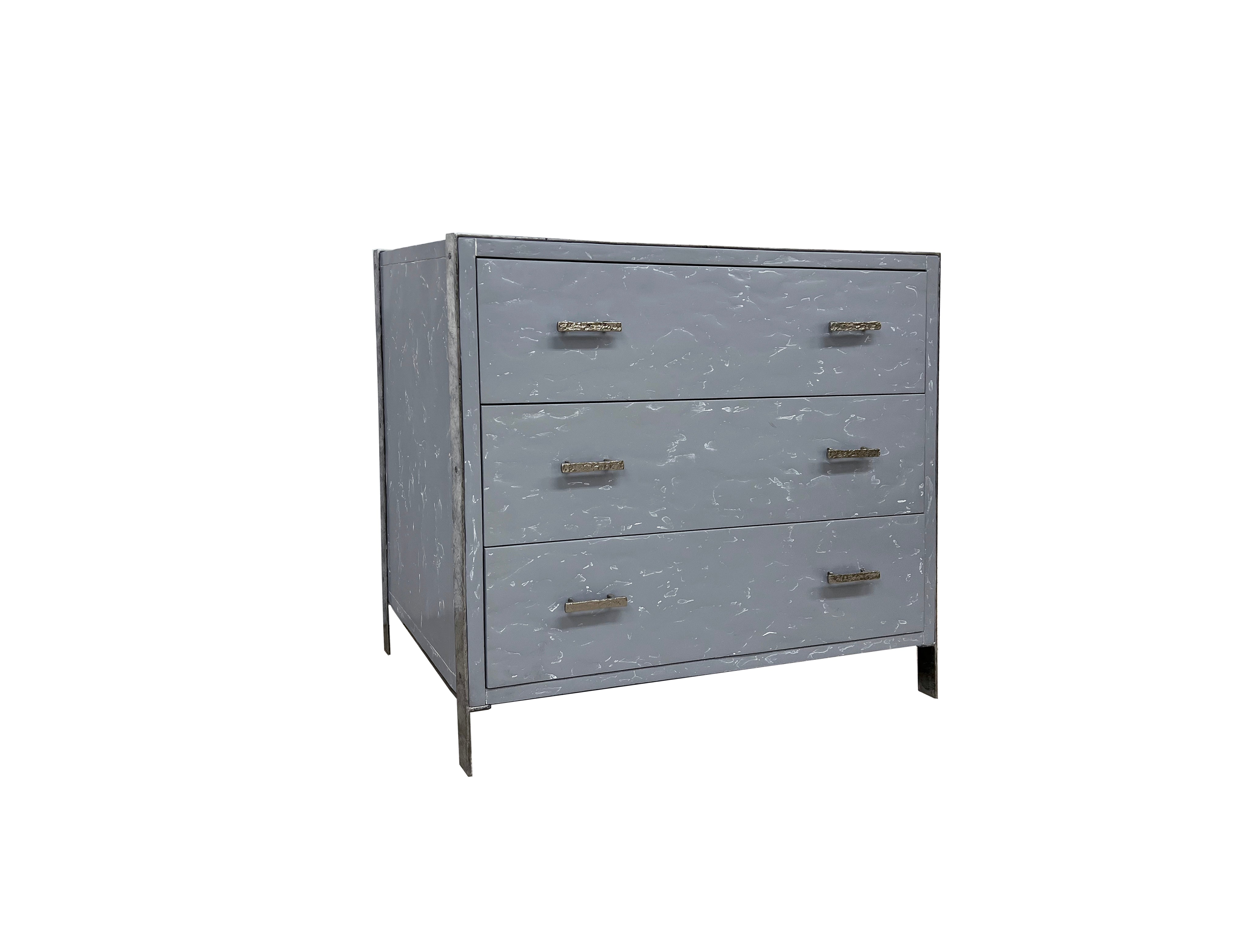 Polished Nickle and Mist Grey Lacquer Finished San Juan Chest of Drawers