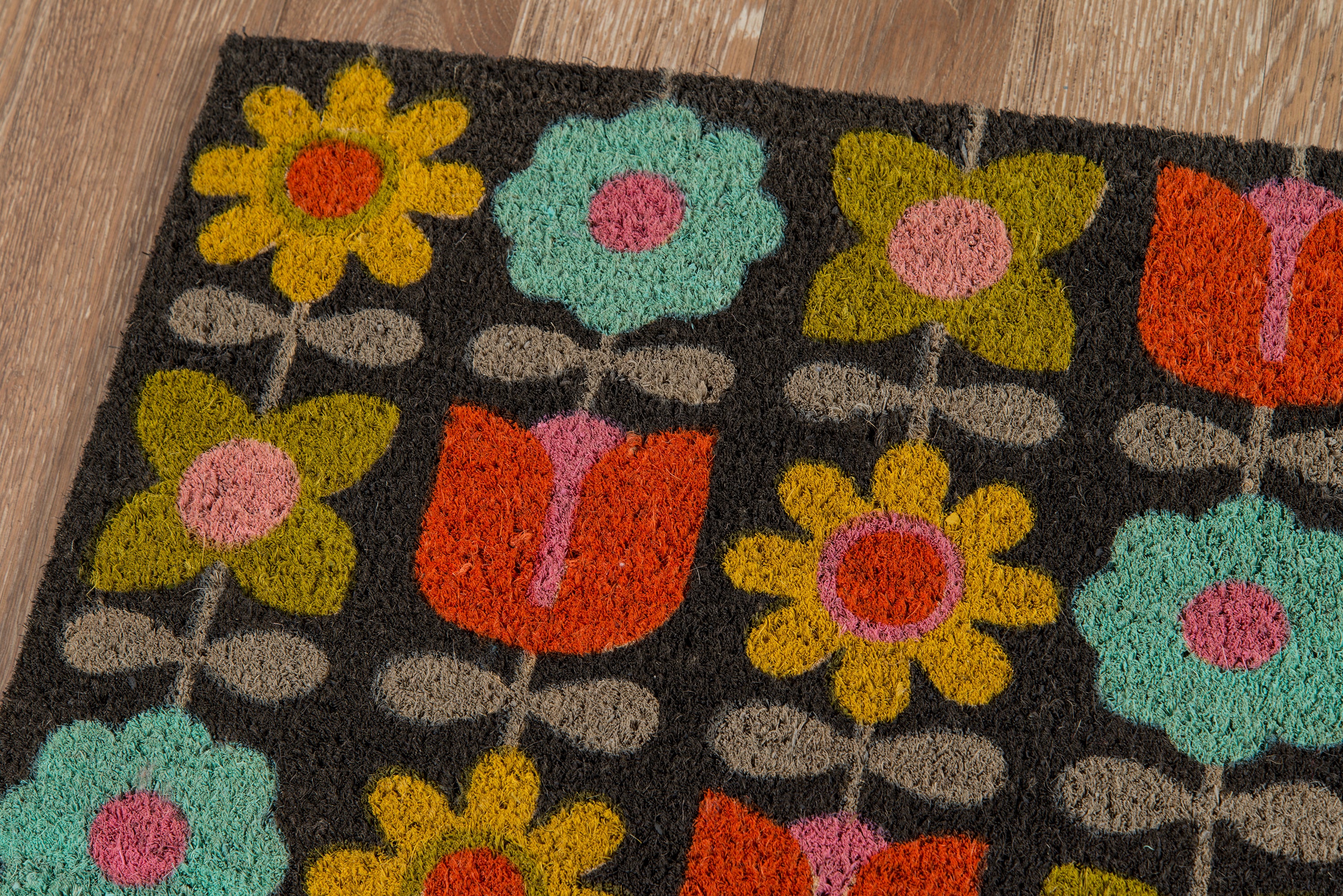 A welcome mat with major mojo, the retro styling of this outdoor area rug is perfect for welcoming family and friends into your home. Graphic color blocking and bold typography calls attention to words like “family” and “hello” with fashionable flair and an exterior application that you can wipe your feet on. Each decorative floorcovering is crafted from 100% natural coir fibers to create a area rug assortment that’s as sustainable as it is cool.
