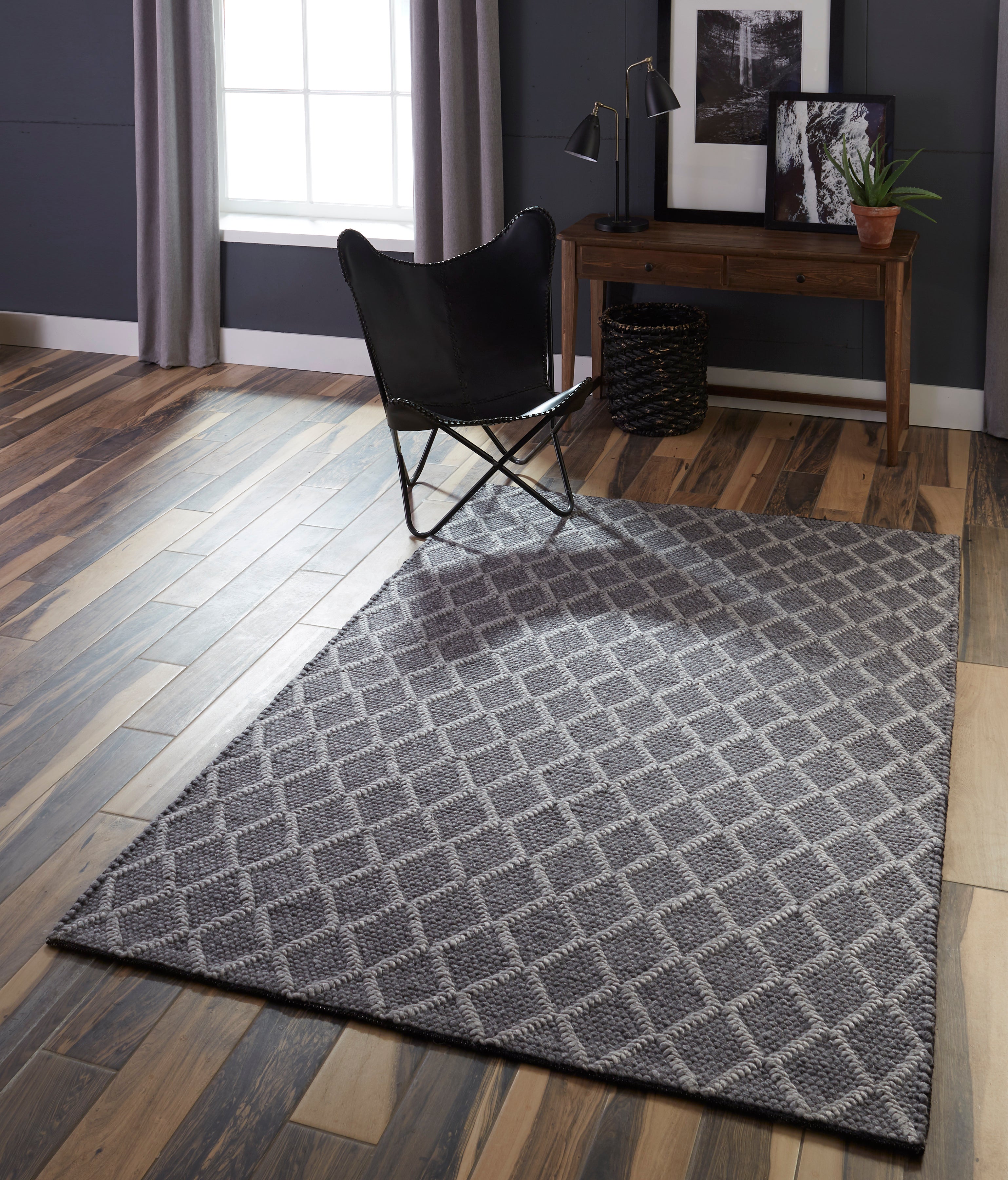 Add a touch of the American Southwest with the earthy styling of this modern area rug. This assortment of decorative floorcoverings features a softly toned grey, beige and blue color palette and high-low pile that accentuates graphic geometric patterns like diamonds and stripes. With balanced, rustic designs, this elegant series of hand-tufted wool rugs brings long-lasting elegance to high-traffic areas and restful spaces alike.