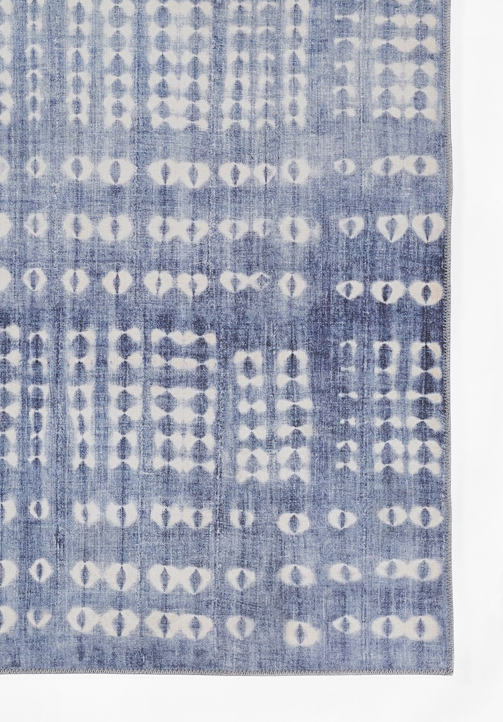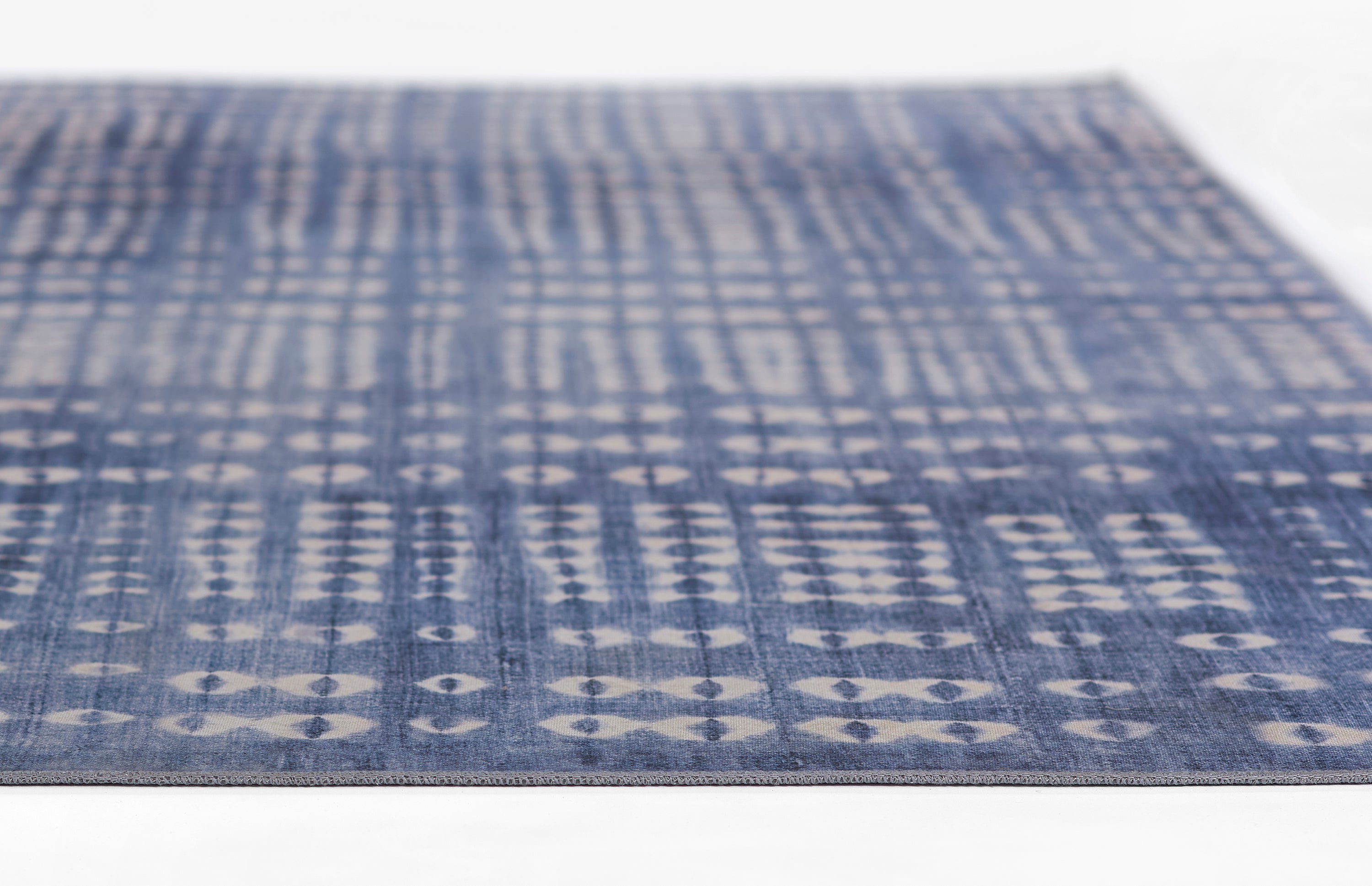 Full of surprises, this flat-weave polyester rug only looks like it’s been hand-dyed—thankfully it’s far more durable. A mix of dots and lines make up this perfectly imperfect pattern and its quirky irregularities only adds to its charm. Its blue hue would feel right at home in a bright white space with a lot of light, which would really allow it to steal the show.