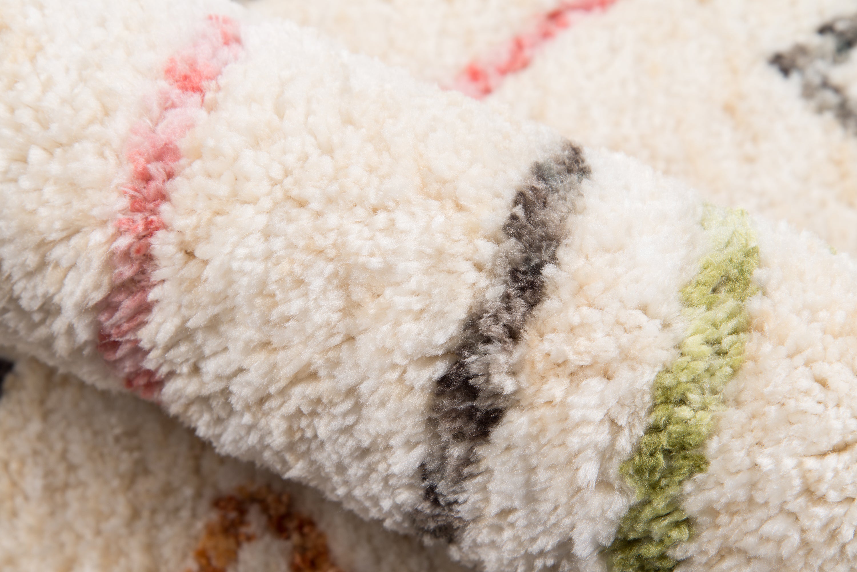 Graphic geometric patterns and a bohemian color palette give this modern area rug a major dose of retro. Eclectic designs like freeform diamonds, tribal prints, colorful hexagons and stripes adorn each floorcovering with vintage vibes from decades past. Plush polyester fibers and tufted construction creates a fun accent rug assortment for interior floors that feels casual and completely chic.