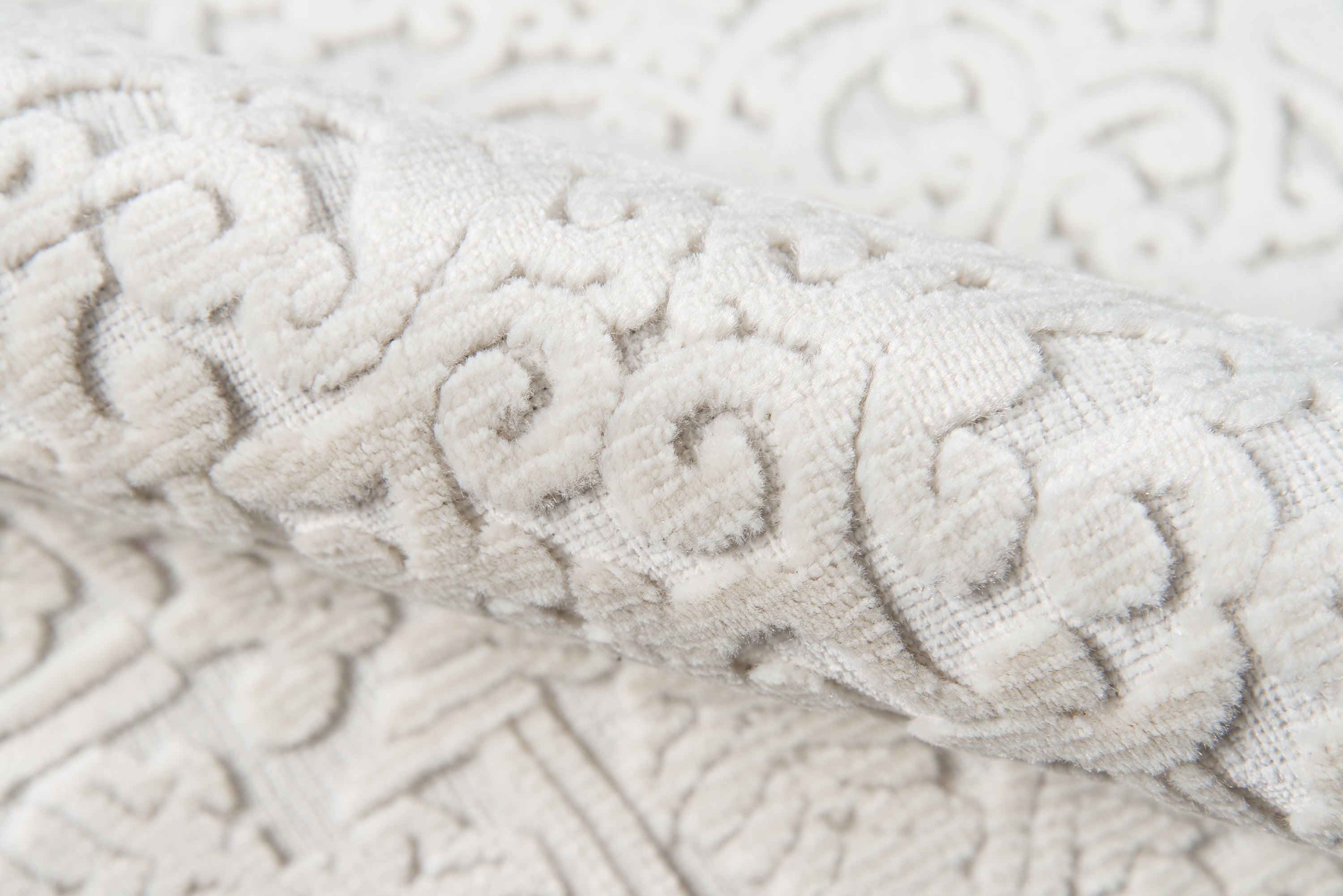 BEAUTIFUL FINISH FOR YOUR HOME: A blend of synthetic and soft chenille fibers lends a sculptural quality to each decorative floorcovering, using depth and dimension to define the edges of every intricate pattern.