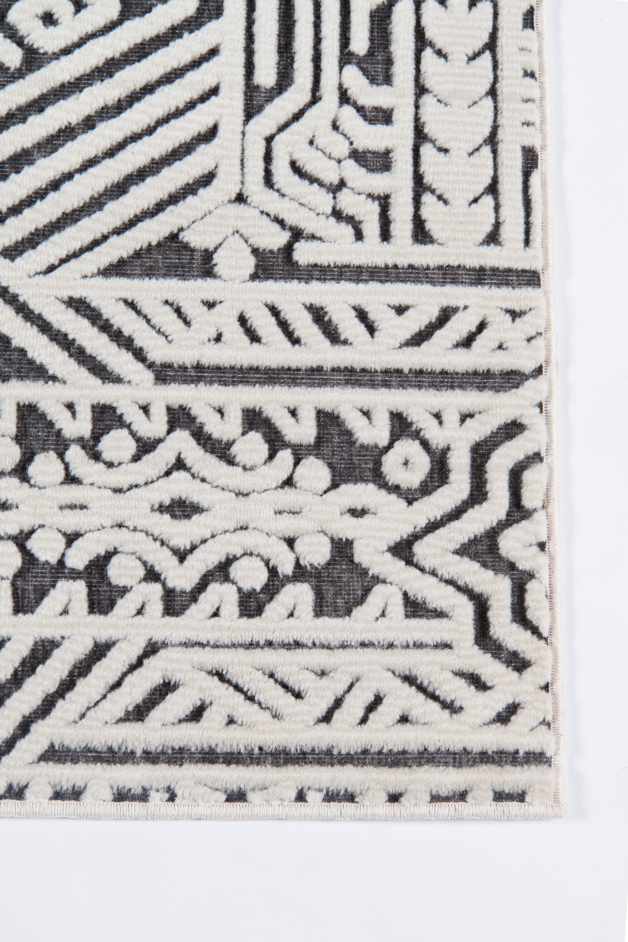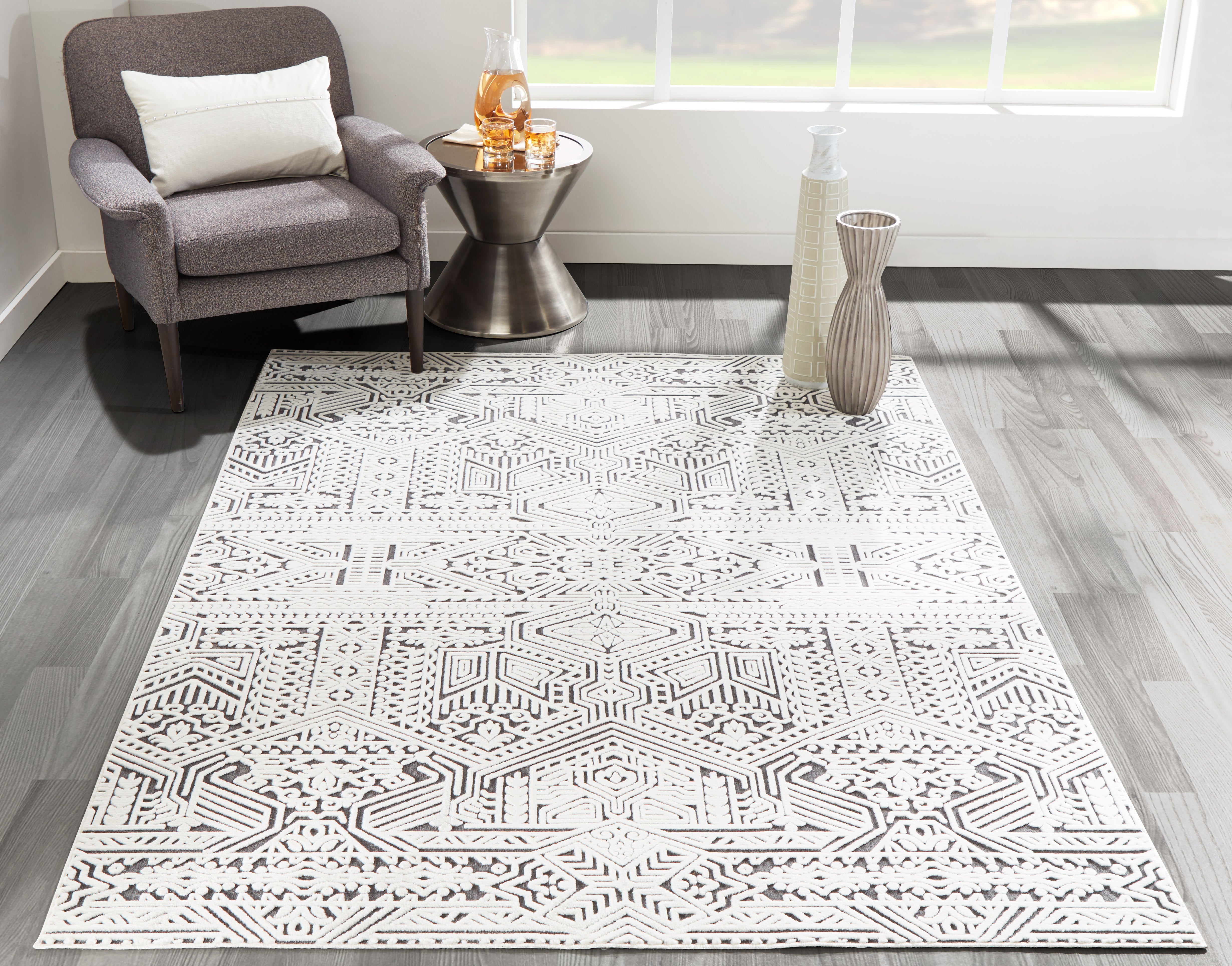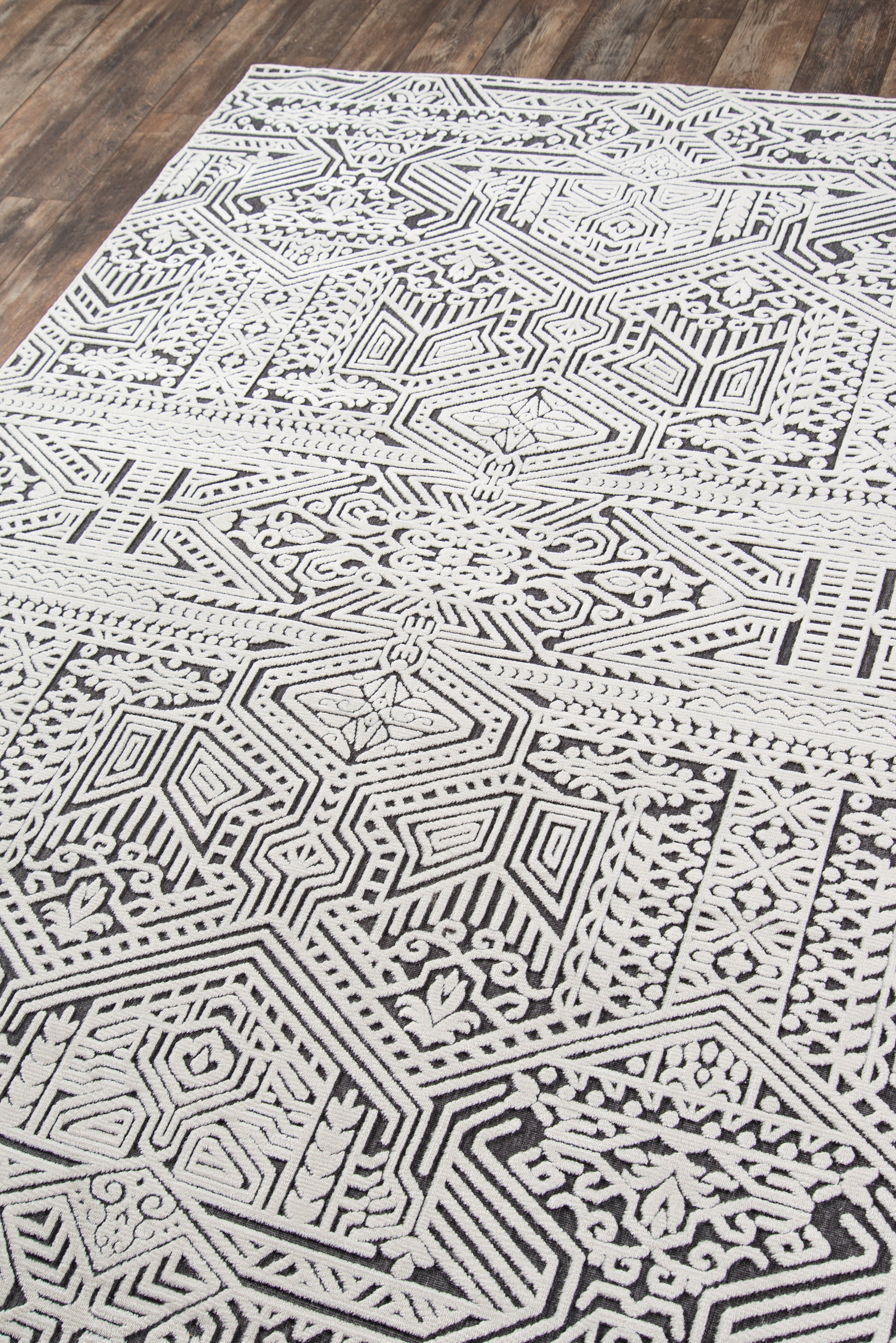 Graphic ethnic motifs fill this indoor area rug collection with standout styles to stand upon. From geometric tribal designs to scrolling French filigree, the exotic rug assortment offers multiple options for accessorizing interior floors. A blend of synthetic and soft chenille fibers lends a sculptural quality to each decorative floorcovering, using depth and dimension to define the edges of every intricate pattern.