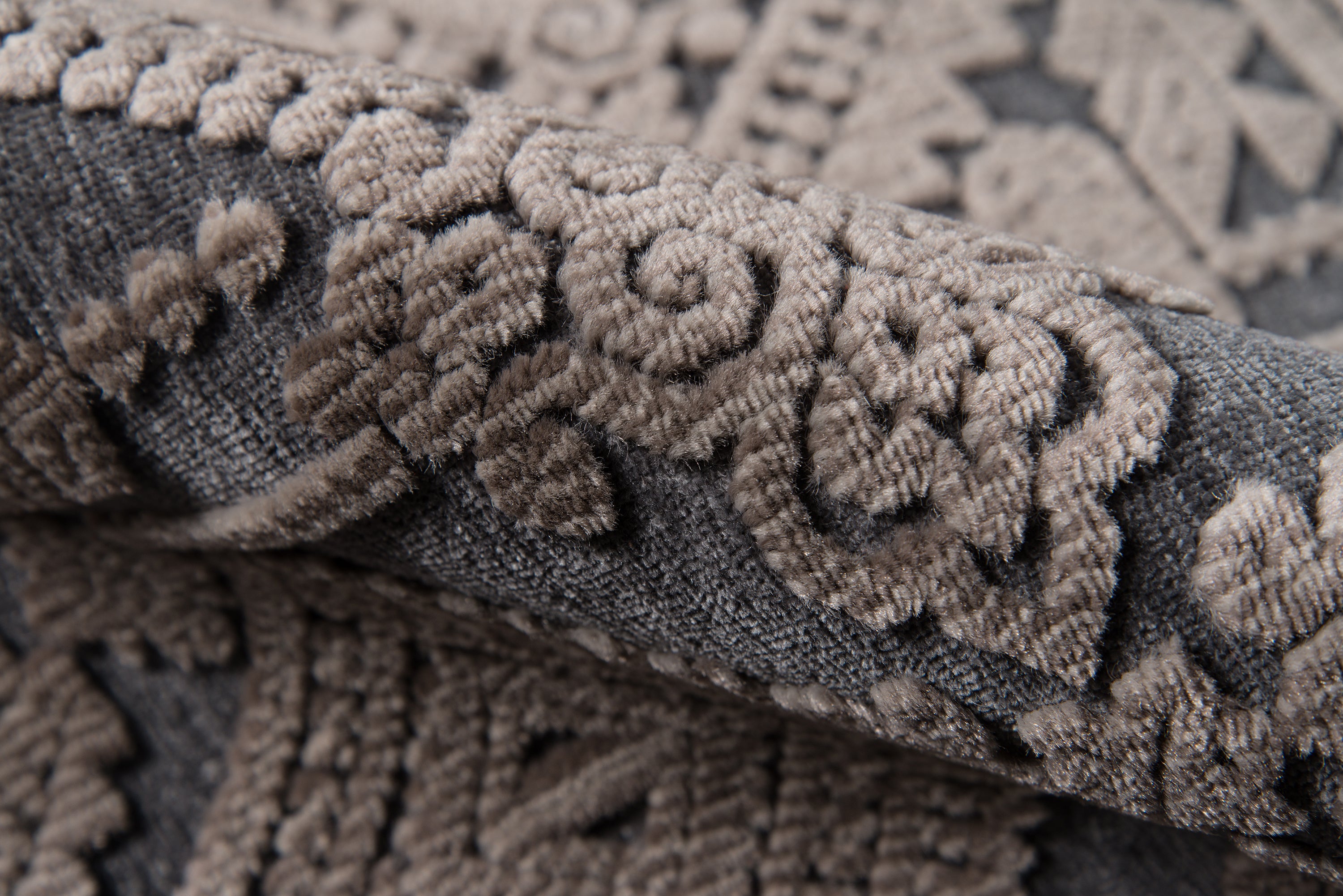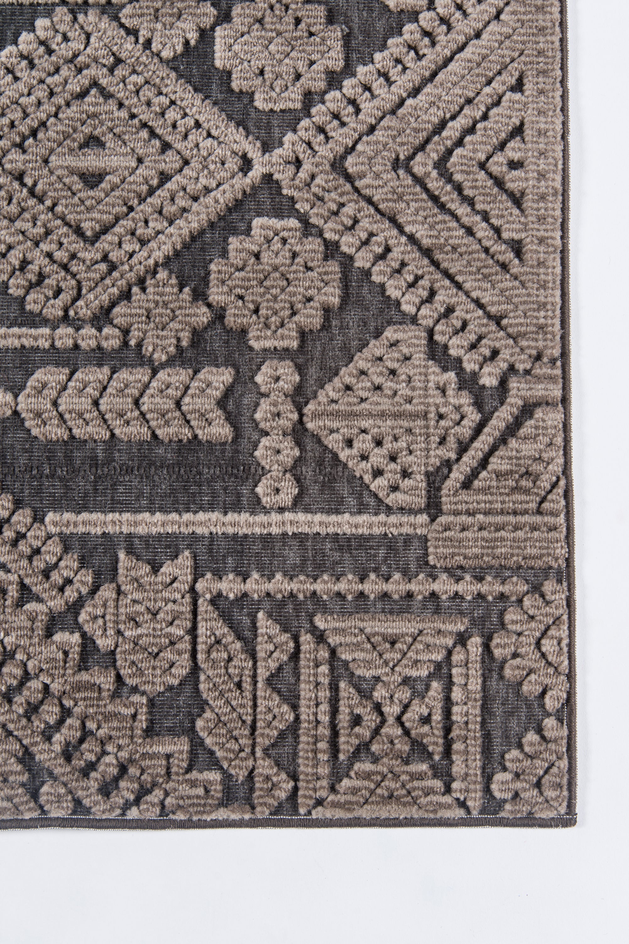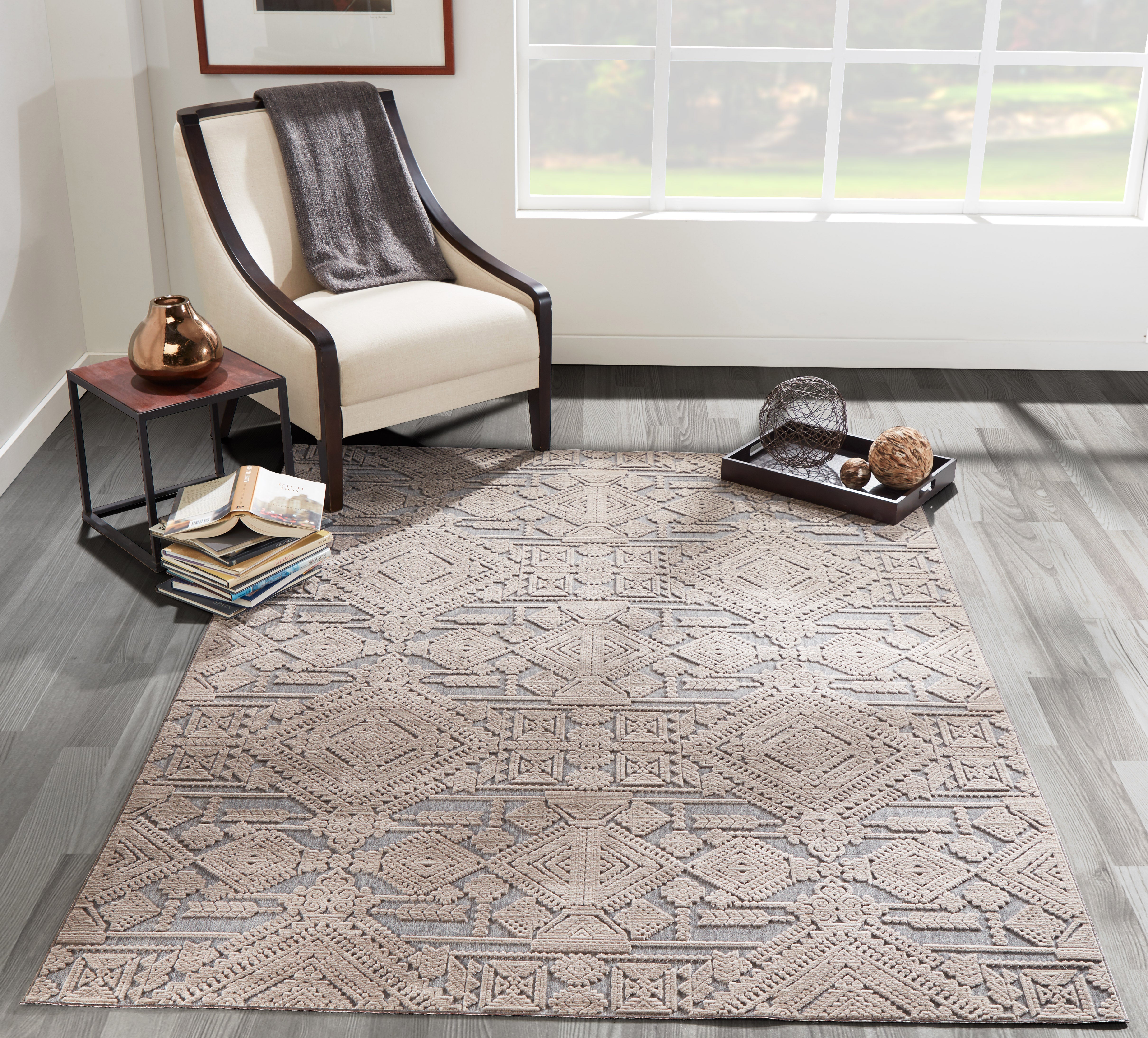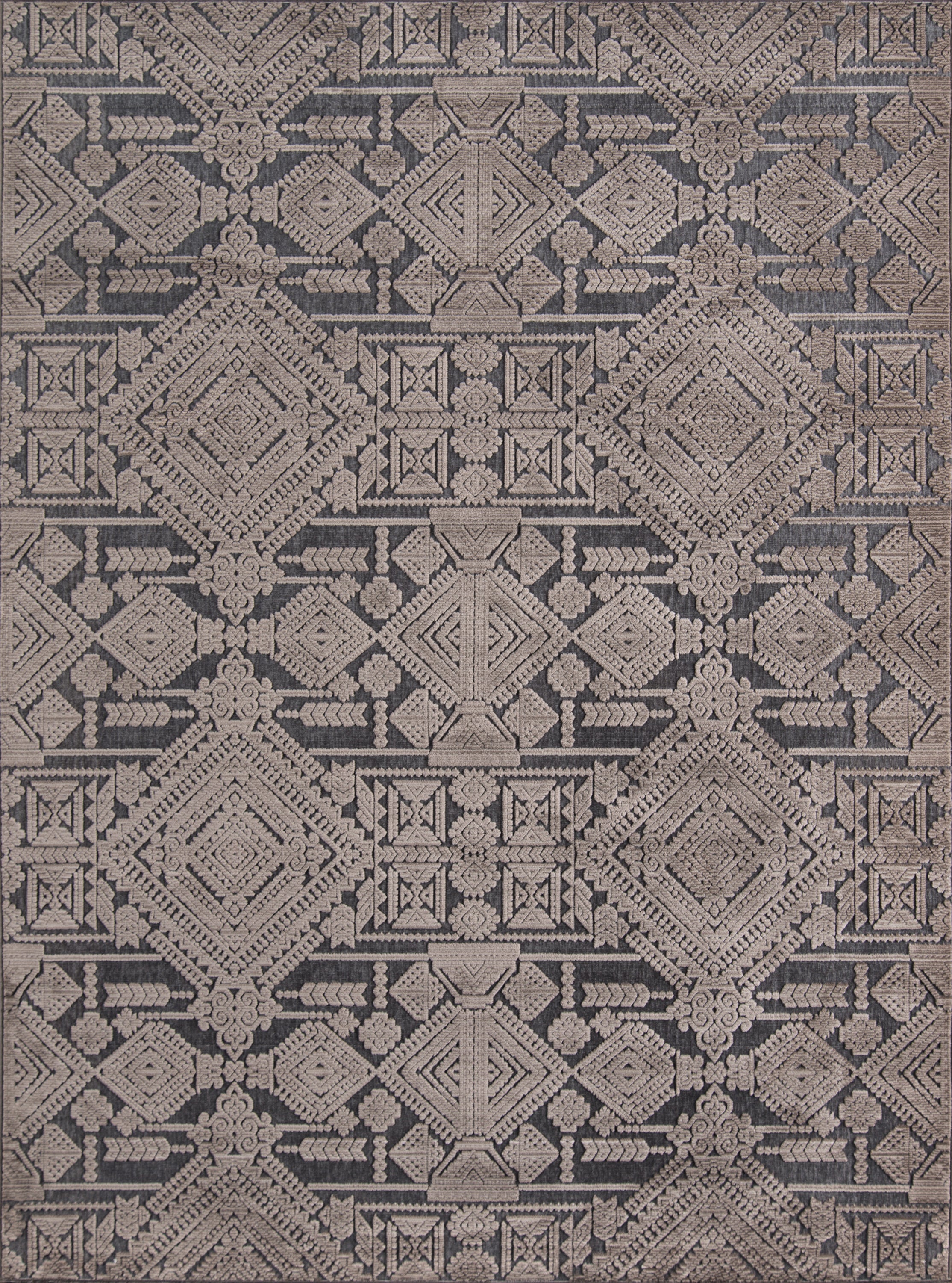 Graphic ethnic motifs fill this indoor area rug collection with standout styles to stand upon. From geometric tribal designs to scrolling French filigree, the exotic rug assortment offers multiple options for accessorizing interior floors. A blend of synthetic and soft chenille fibers lends a sculptural quality to each decorative floorcovering, using depth and dimension to define the edges of every intricate pattern.