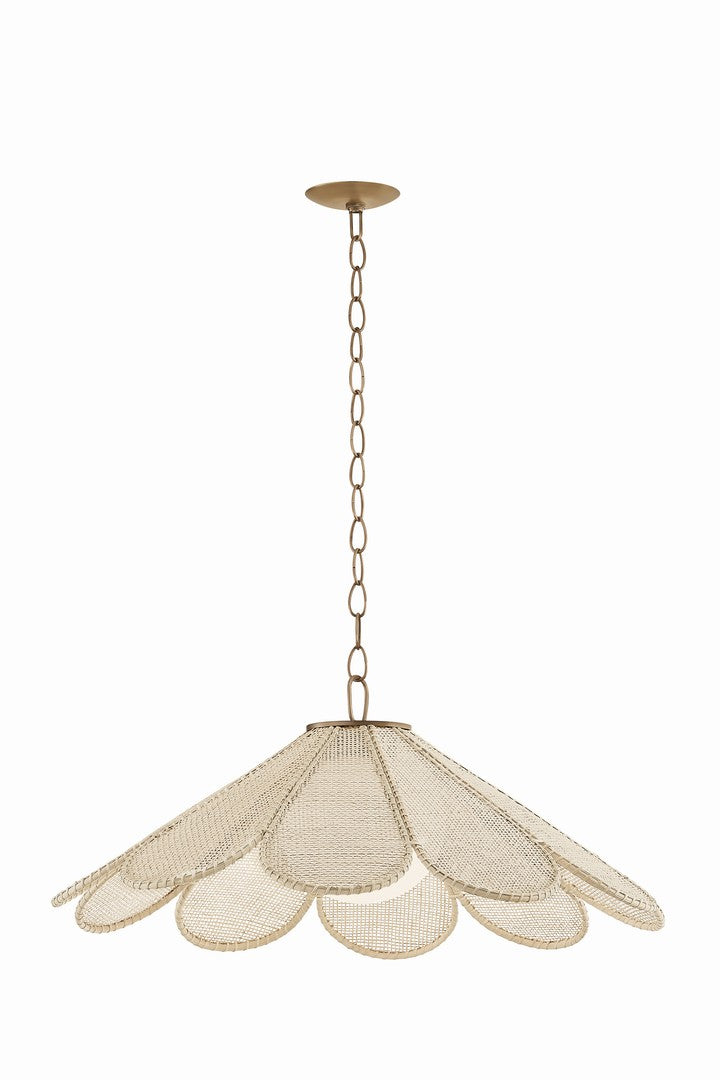 A nod to nature’s quiet beauty, Petal features handwoven rattan cane shaped into delicate “petals” that surround a shiny opal glass globe. The organic silhouette—both rustic and refined—is suspended by a bold loop and chain in Patina Brass (PBR). Available in two sizes, it’s a charming addition above a kitchen island or breakfast nook.*Due to the one-of-a-kind nature of the medium, exact colors and patterns may vary slightly from the image shown.
