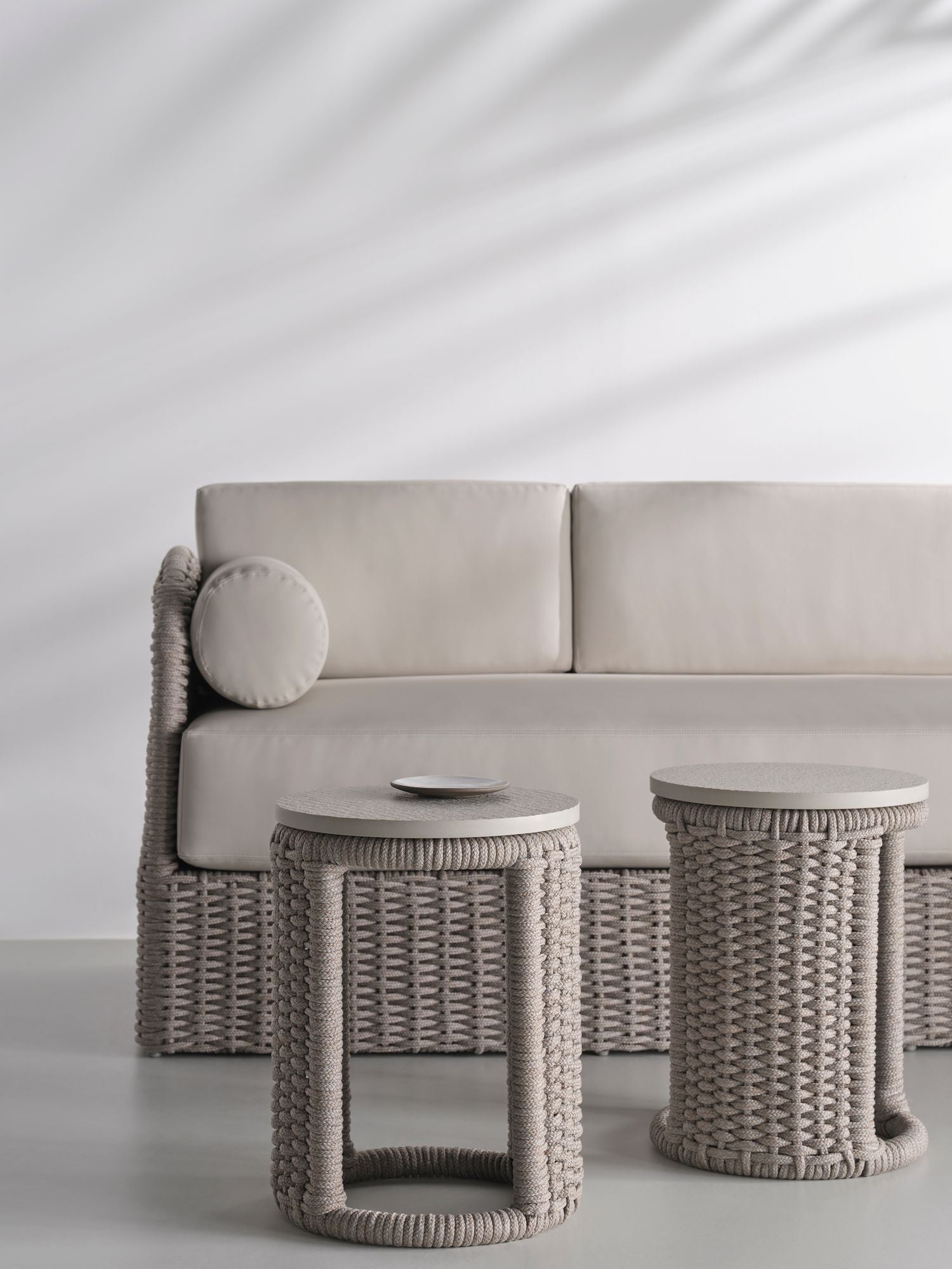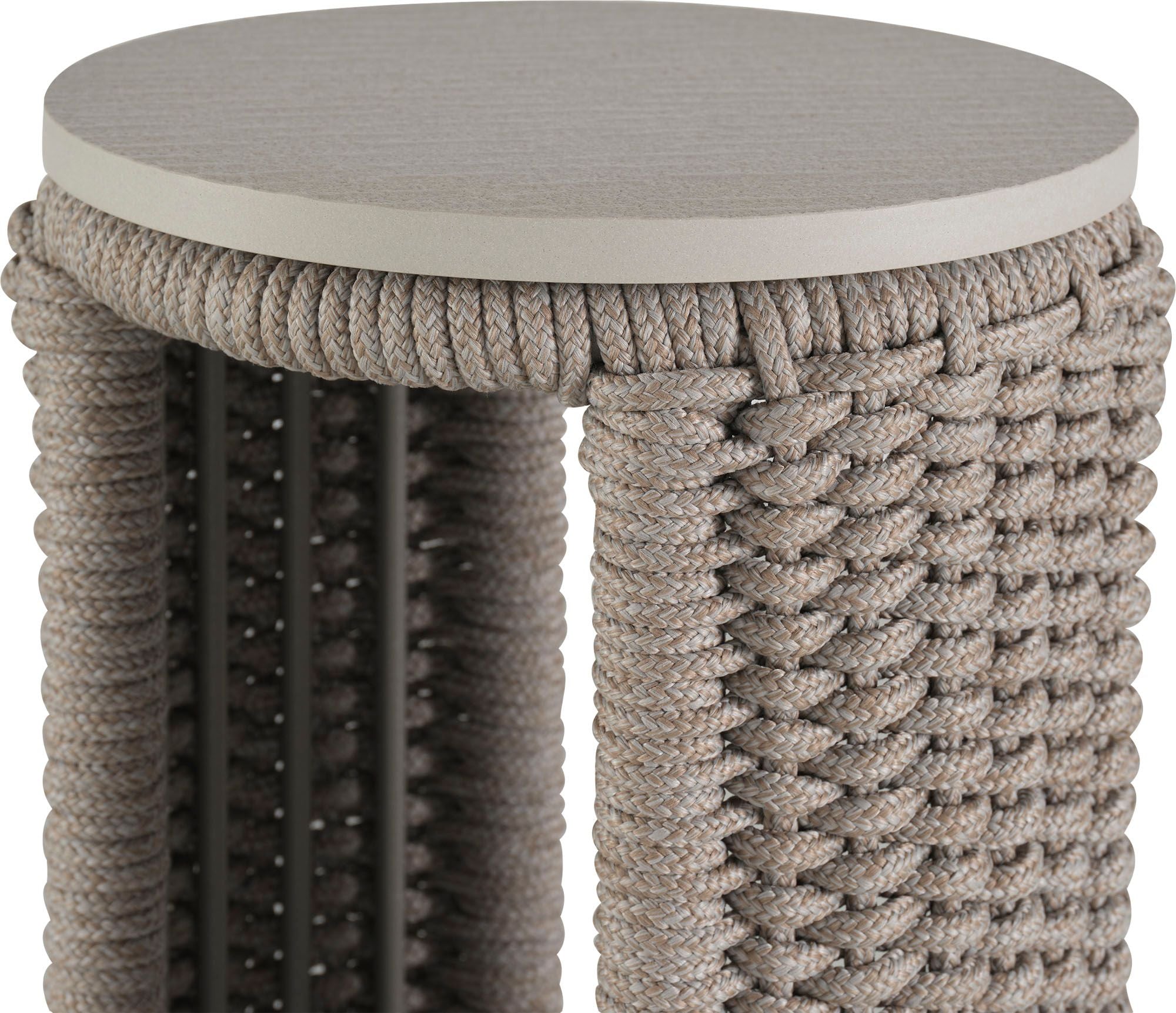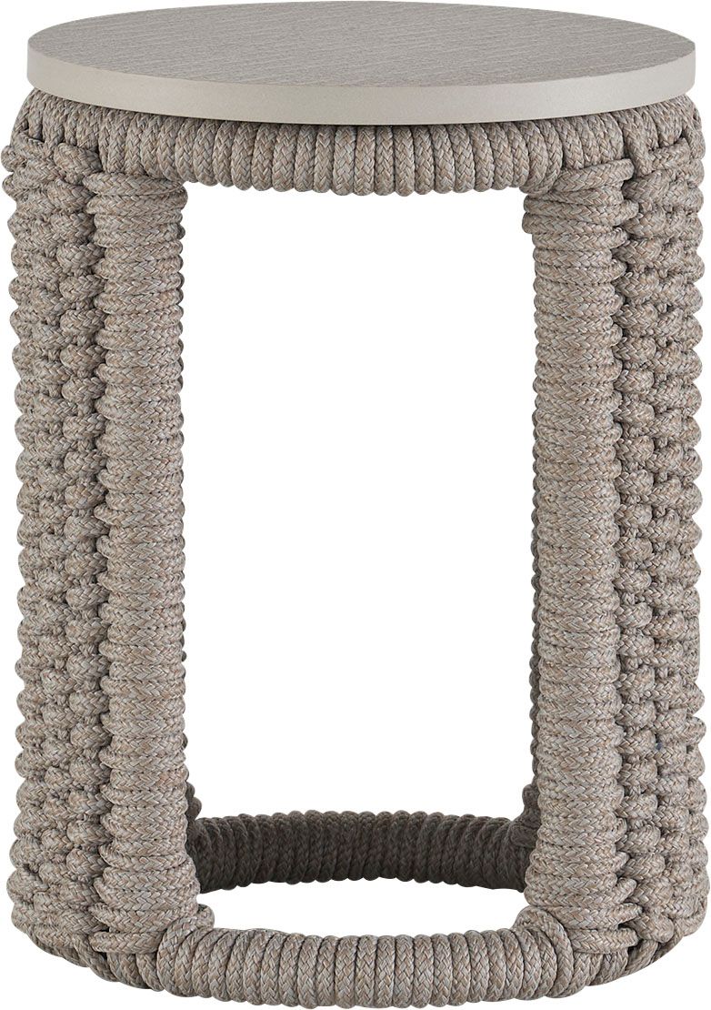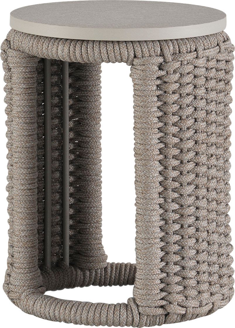Woven acrylic cording flows around the curved surface of the Cuerda Spot Table to create a dramatic, highly detailed piece. Featuring soft neutral tones, the table can accompany nearly any outdoor piece including the collection’s Cuerda Slipper Chair or Cuerda Lounge Chair.