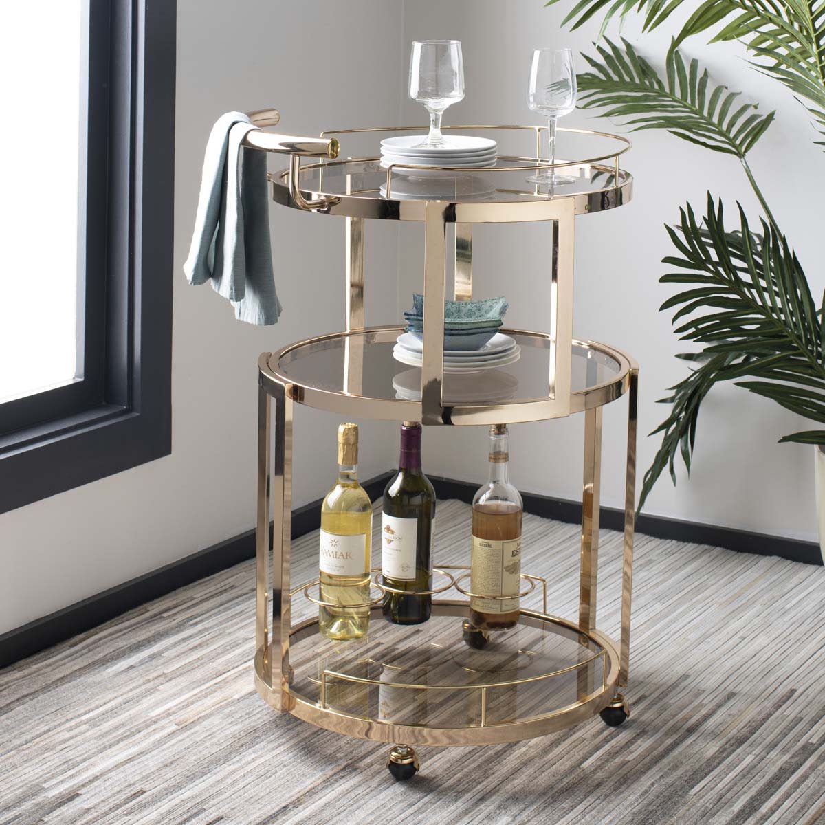 Safavieh Rio 3 Tier Round Bar Cart And Wine Rack - Gold/Tea Glass
