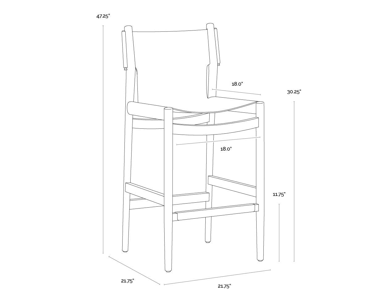 Crafted from a single piece of supple nubuck leather, the seat and back of the Argus Barstool are elegantly suspended within a solid oak frame. Inspired by the relaxed form of a director's chair, it features stitched leather side panels highlighting its artisanal finish. With its clean profile and sling-style silhouette, it channels a refined mid century-modern aesthetic.