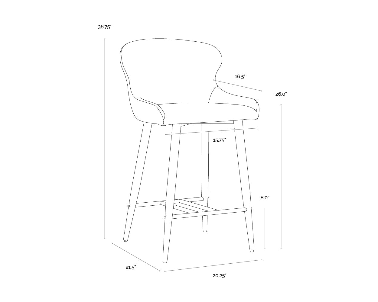 A gorgeous counter stool that features a sleek and minimal profile. Stylishly designed with tone-on-tone colours, this chair is stocked in bravo black faux leather and completed with metal upholstered legs.