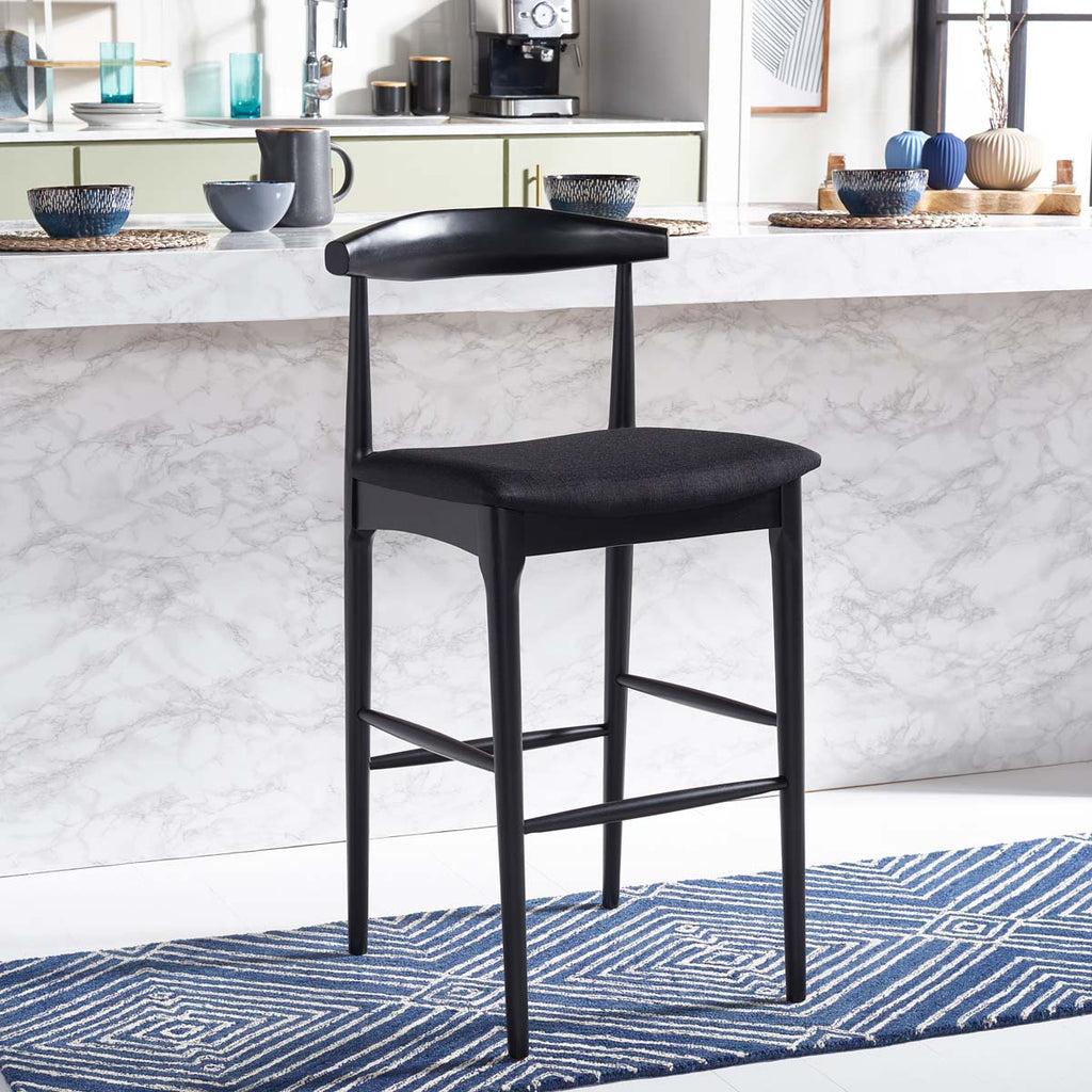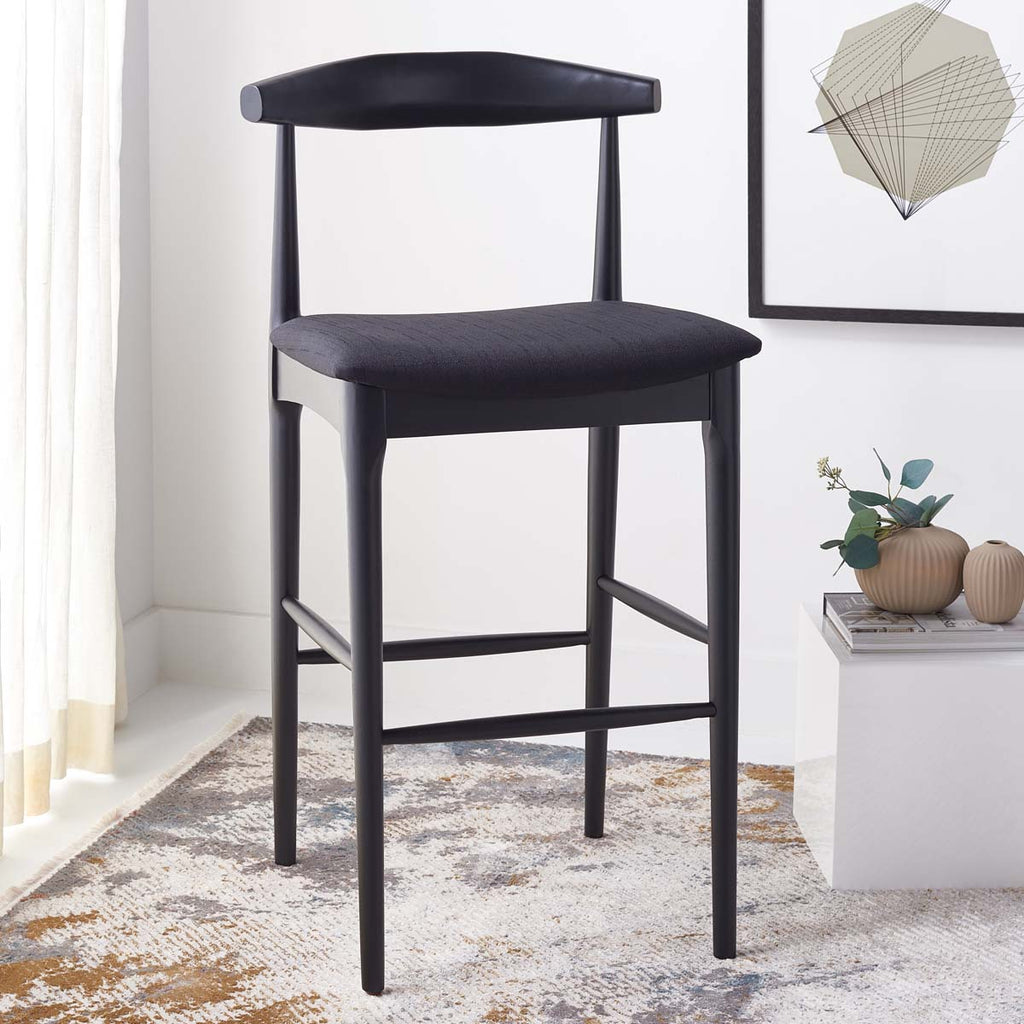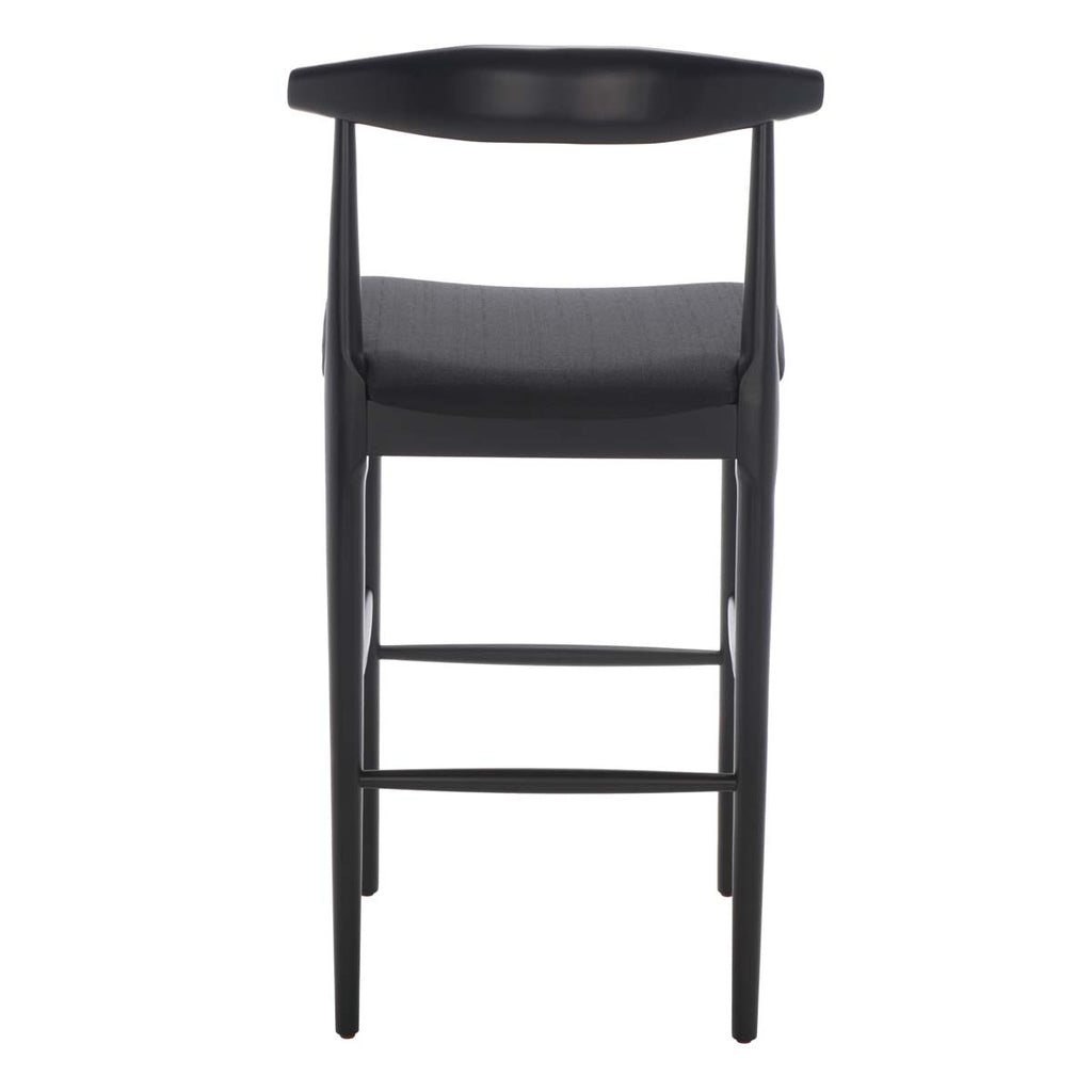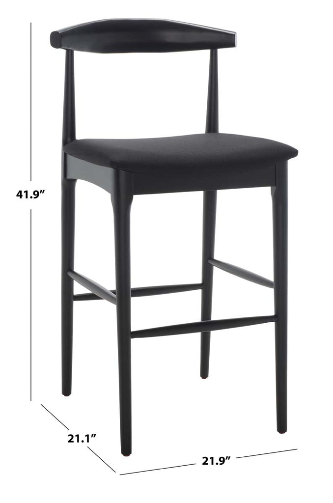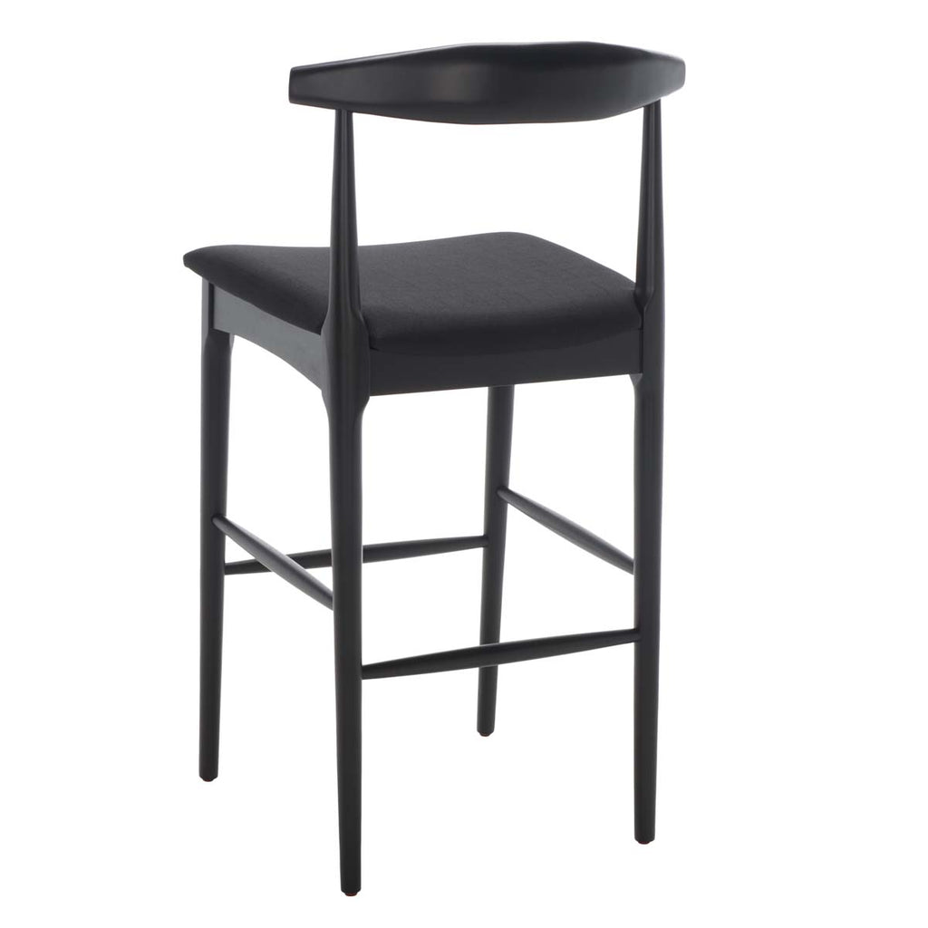 Bring sleek style and comfort to your home with our Lionel bar stool. With a gracefully curved bentwood back, our counter stool packs exceptional comfort and support within its minimal design. Its sleek frame and tapered legs are crafted from solid wood in a chic black finish. The frame creates a beautiful contrast with its generously padded black seat. Our bar stool offers a comfy stay at a bar, high dining table, or kitchen island.