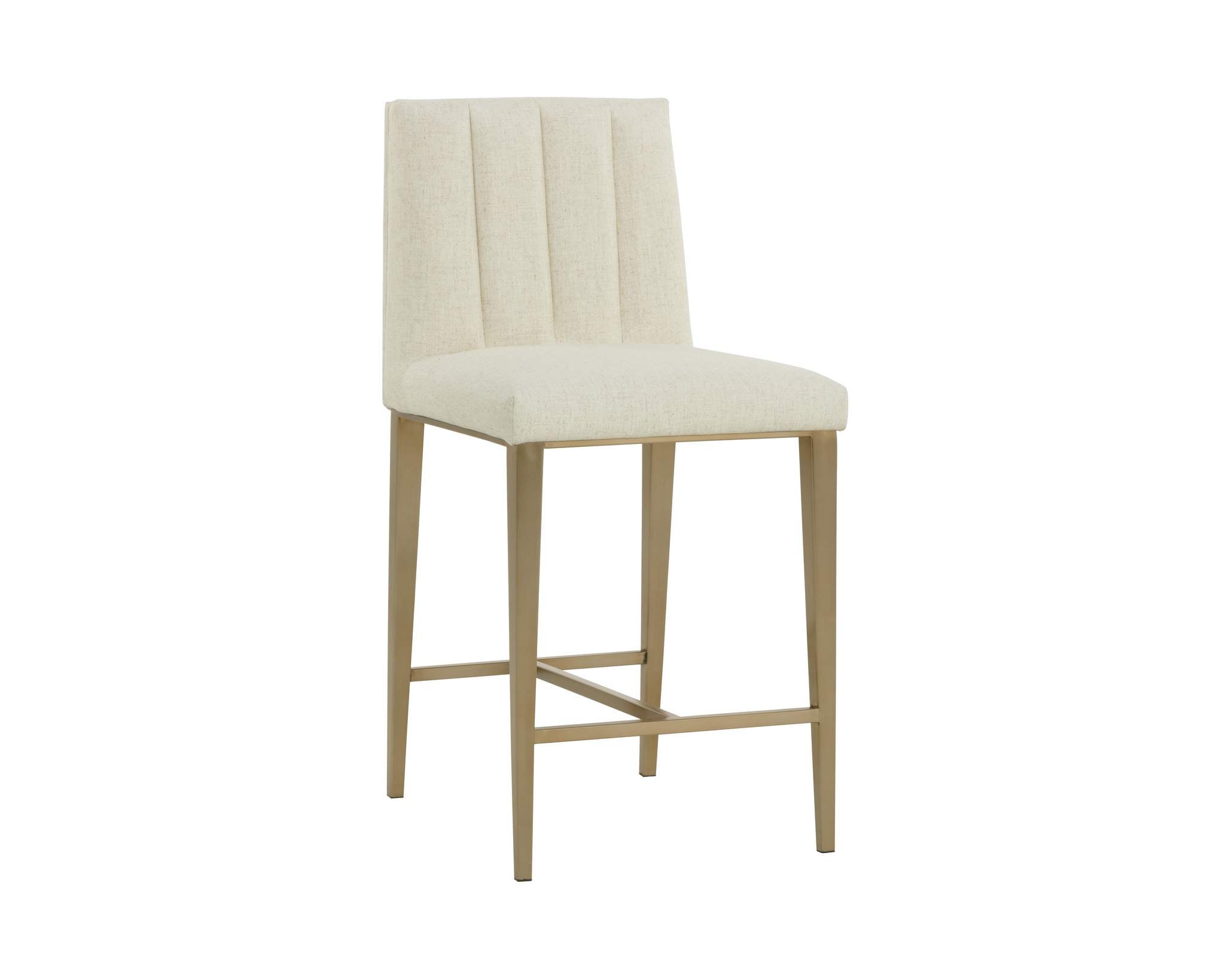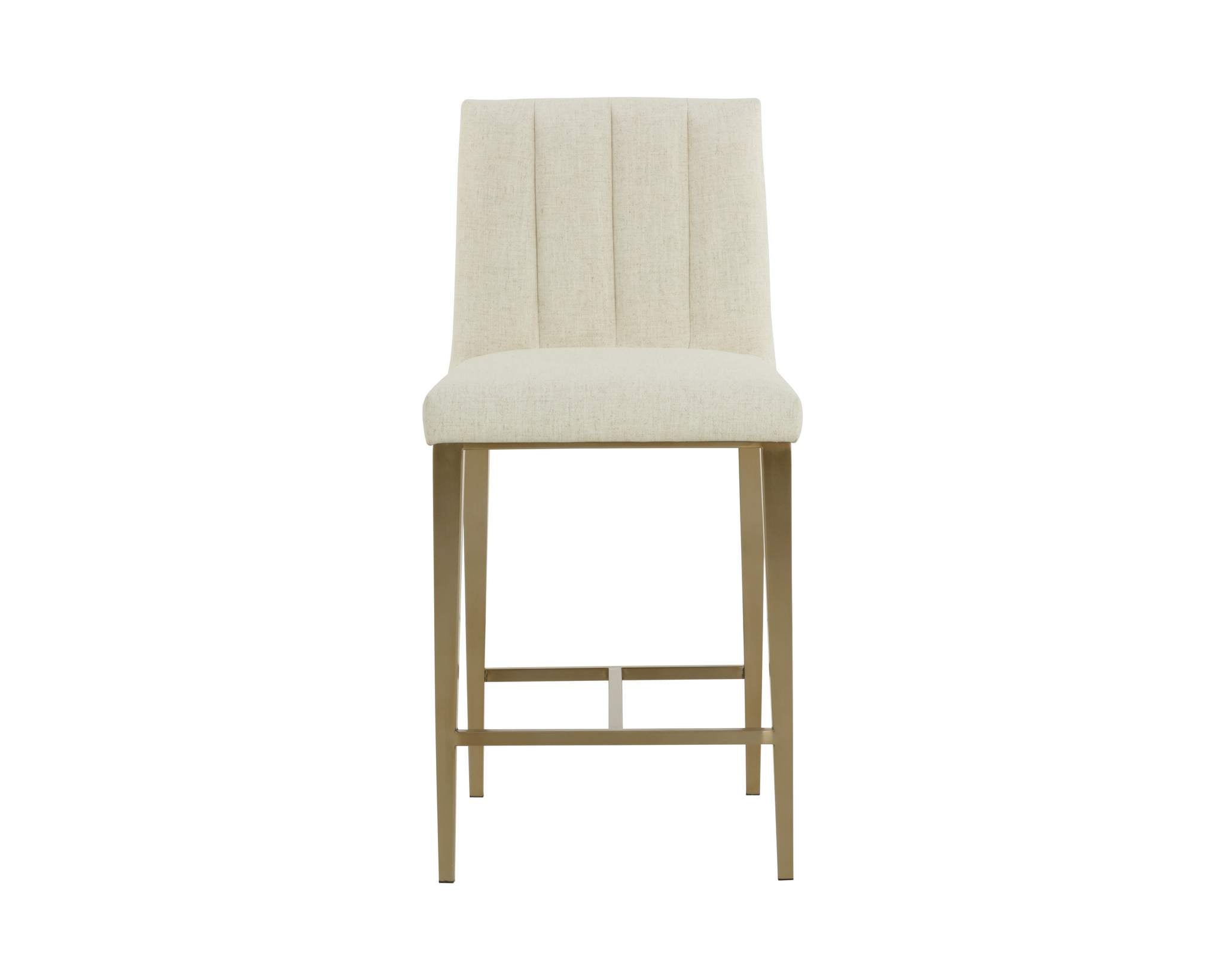 Minimal and classic best describes the Wilbur Counter Stool. Upholstered in geralt linen performance fabric with vertical channeling on the back seat for added flair. Finished with powder-coated stainless steel legs and a matching decorative handle.