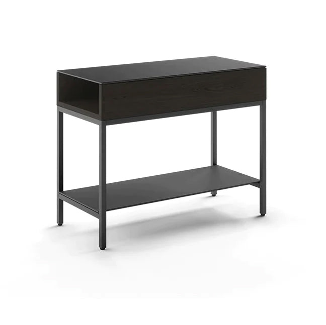 The slender yet highly versatile Reveal 1196 end table coordinates perfectly with various seating and living room configurations. Available in three finishes, the table's tempered glass top and lower shelf are ideal for sofa side display, while a unique divided compartment provides storage and concealed cable management. Partner with the Reveal 1192 lift-top coffee table to create a beautifully functional table grouping for work and relaxation.