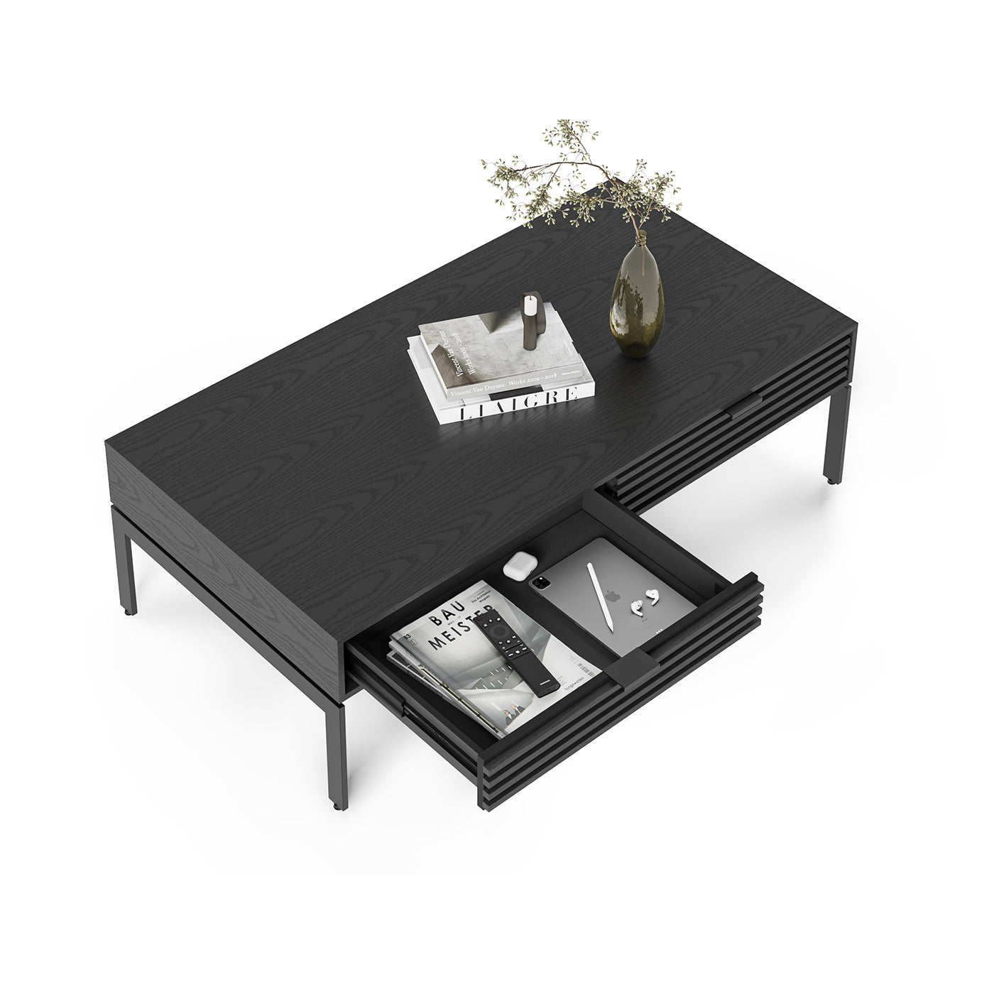 Featuring generously-sized wood tops and a striking louvered design, Cora tables coordinate perfectly with BDI’s most popular entertainment and storage collections. Sleek drawers provide easy access to concealed storage.