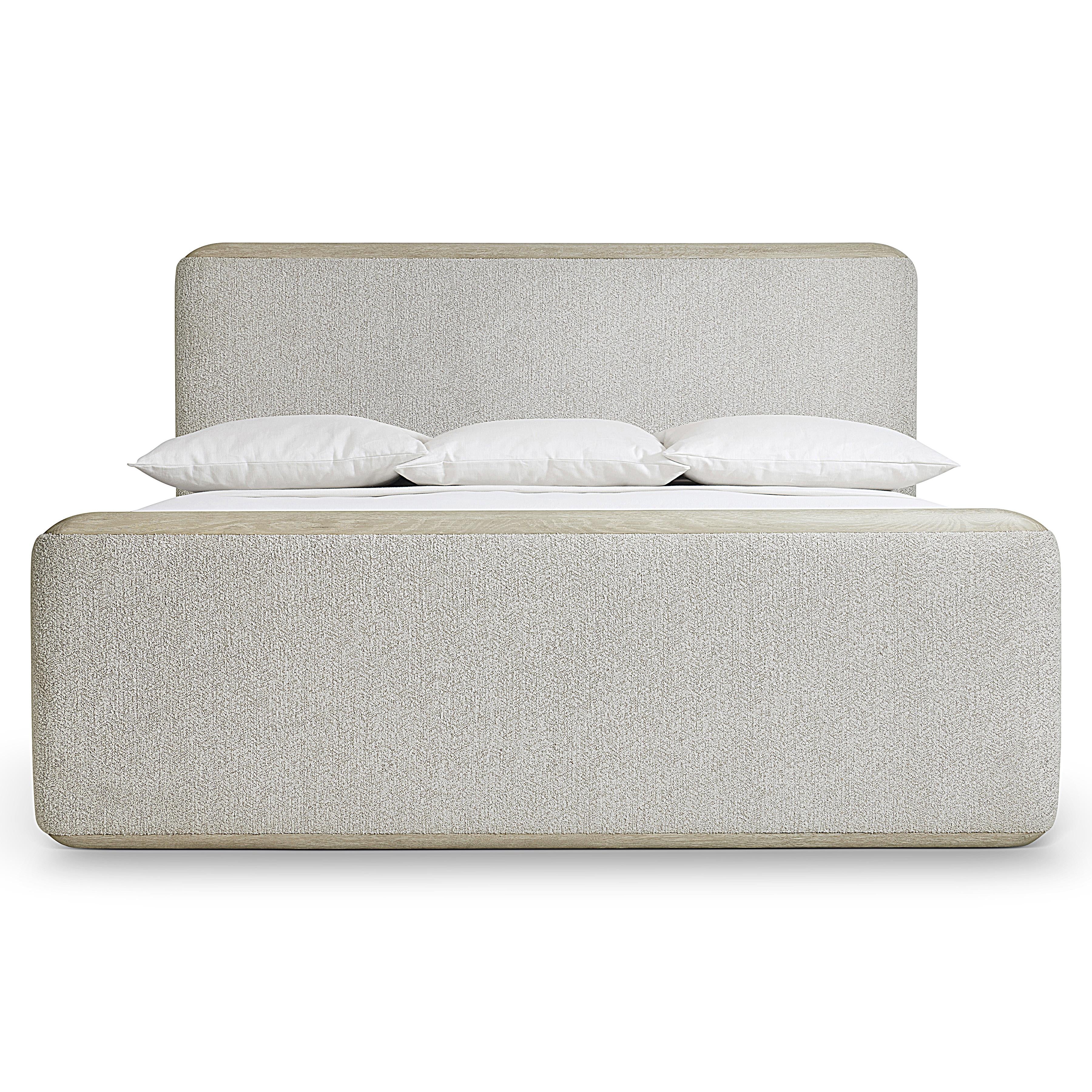 Beautifully rounded and upholstered panels form the headboard and footboard for the Arcadia bed. The shapes are highlighted by cast resin cap rails with a woodgrain pattern in Clay finish. Upholstered side panels continue the textural design, giving this bed a serene style.