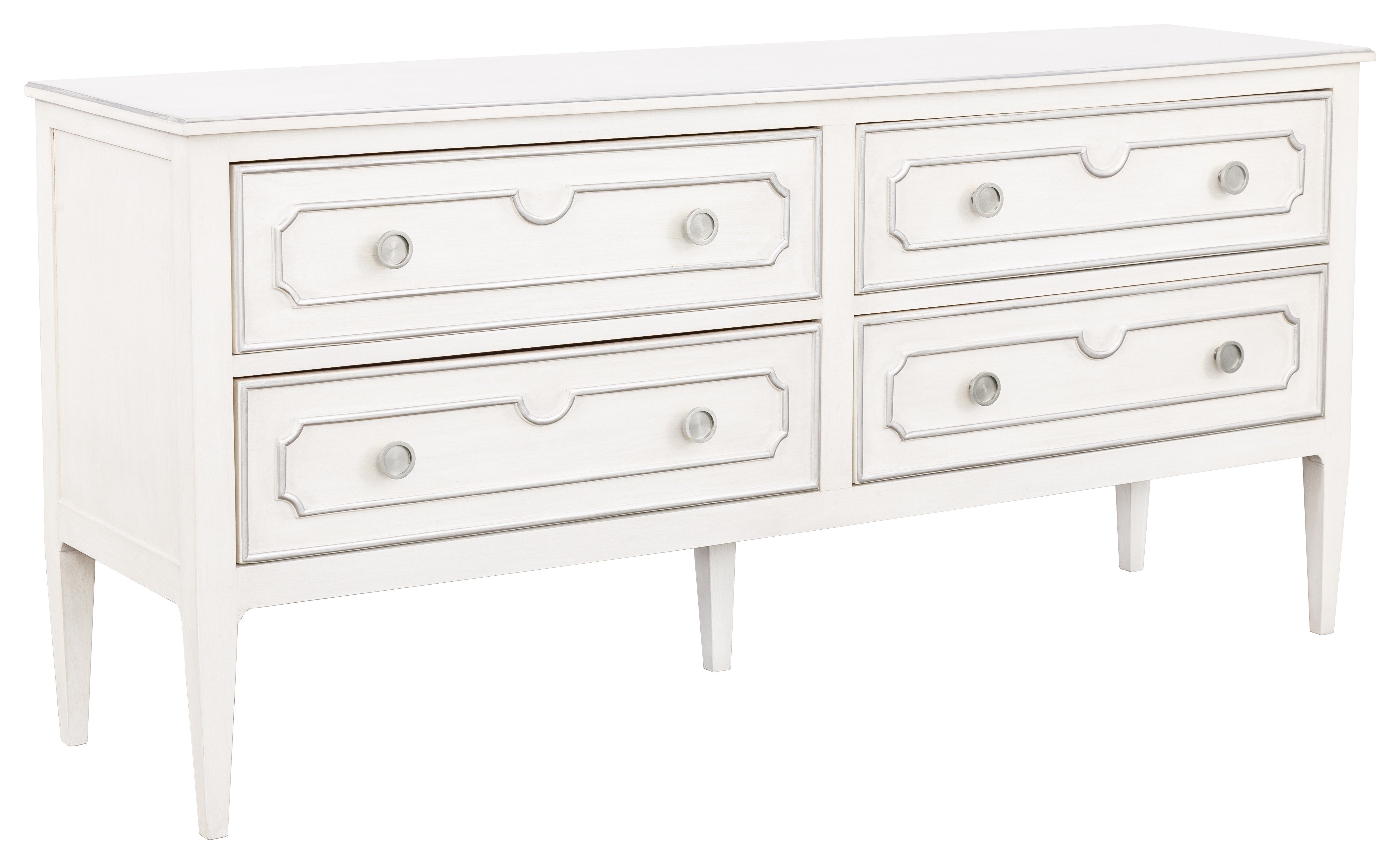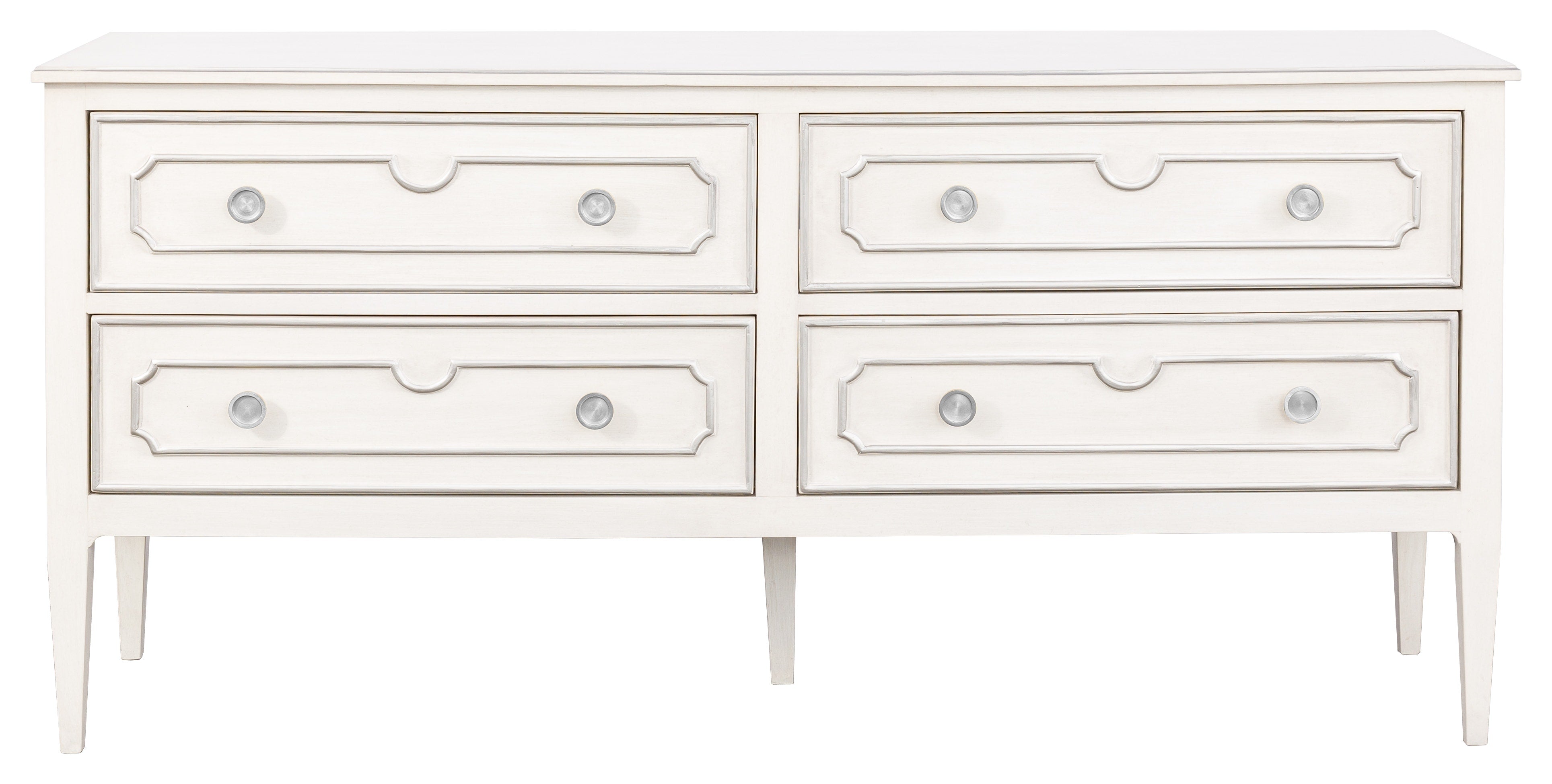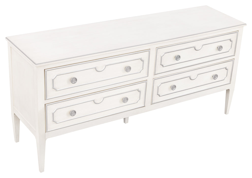 The Camille Bedroom is a luxurious blend of old world meets new world. This French styled wing bed, features refreshingly simple lines, accented with bead hand carvings around the headboard. Camille is finished in our painted linen finish adorned with antique pewter striping. This classic design has been modernized deselecting many of the traditional carving details found in it's 18th Century origin.