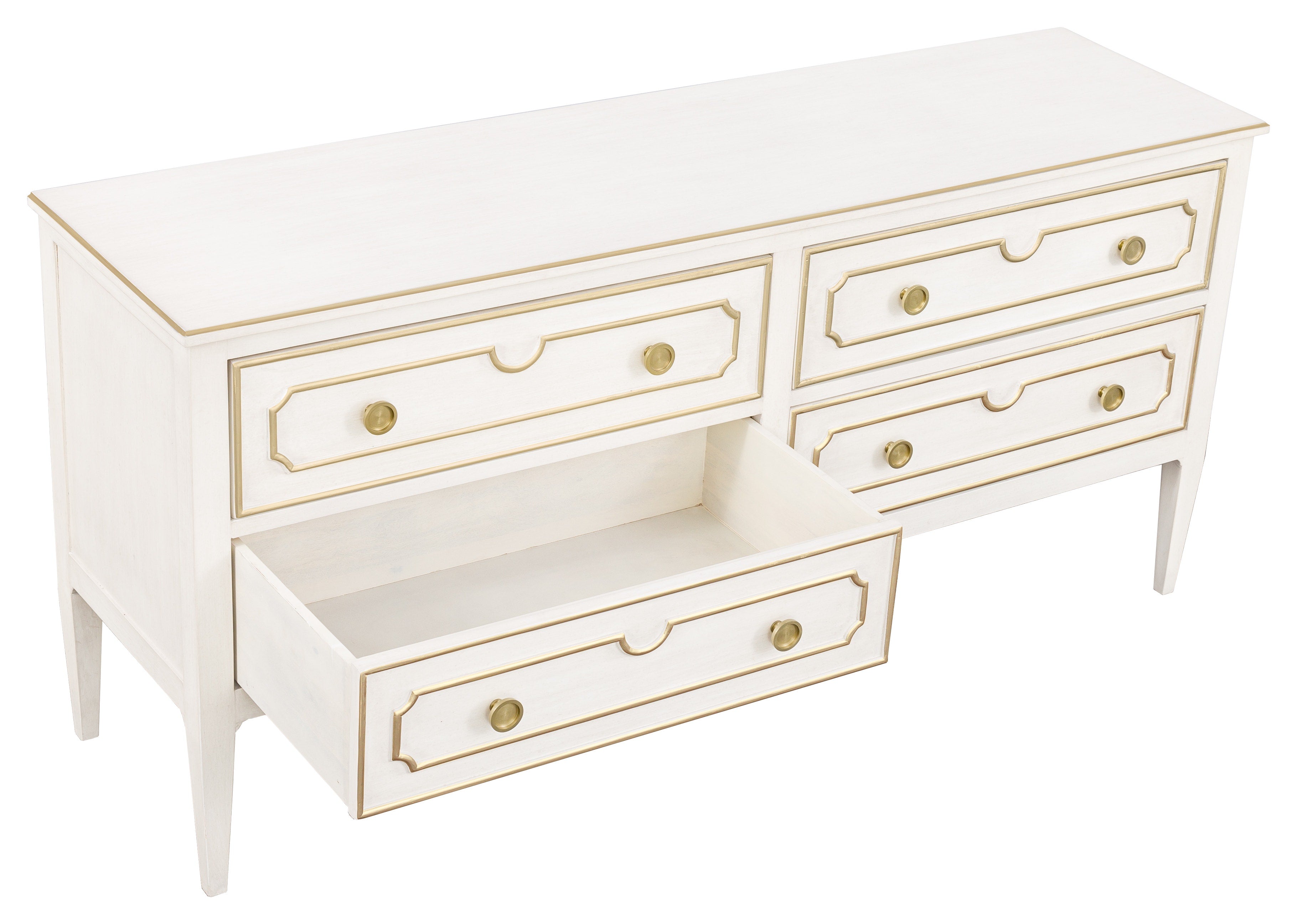 The Camille Bedroom is a luxurious blend of old world meets new world. This French styled wing bed, features refreshingly simple lines, accented with bead hand carvings around the headboard. Camille is finished in our painted linen finish adorned with antique gold striping. This classic design has been modernized deselecting many of the traditional carving details found in it's 18th Century origin.