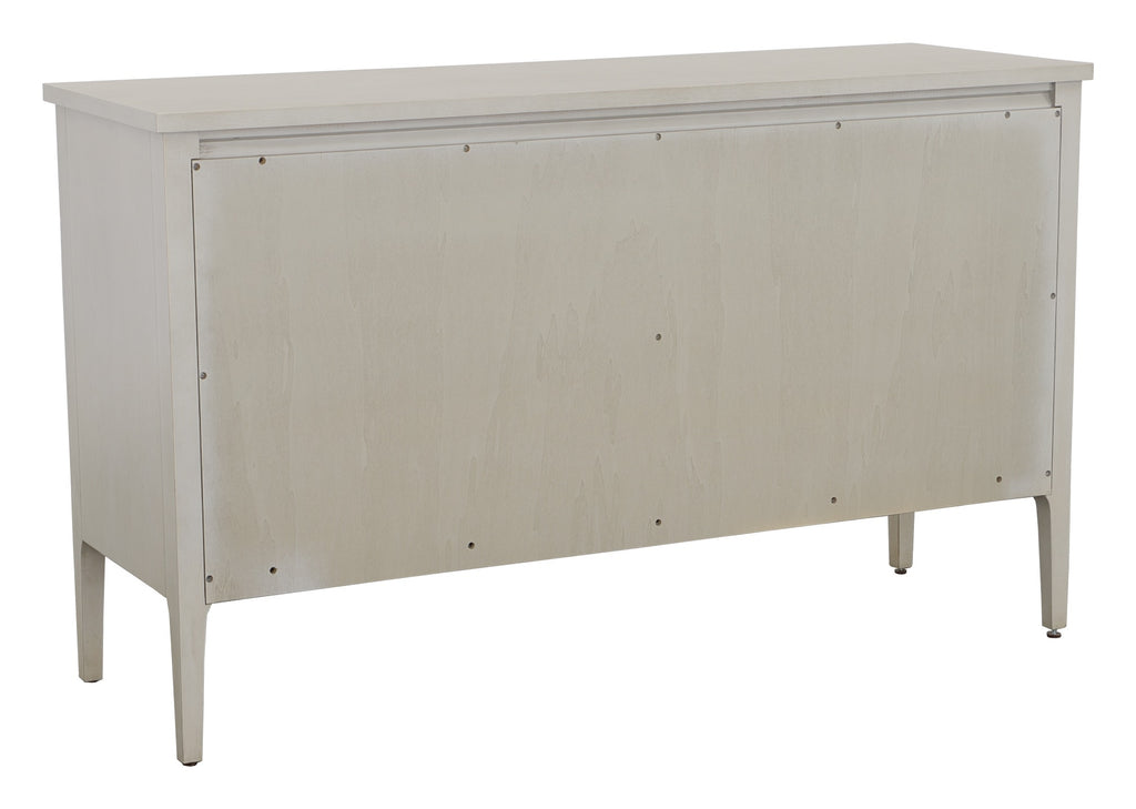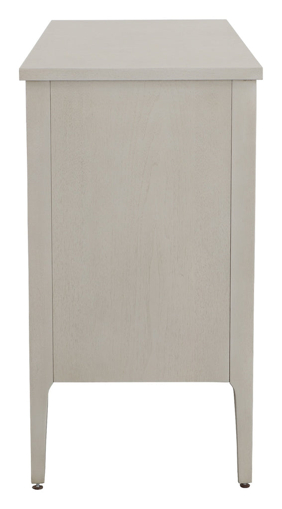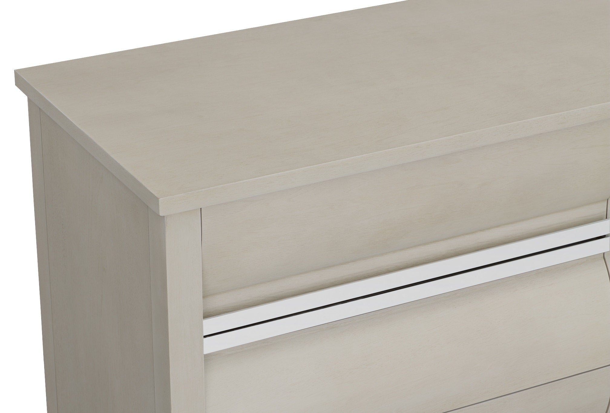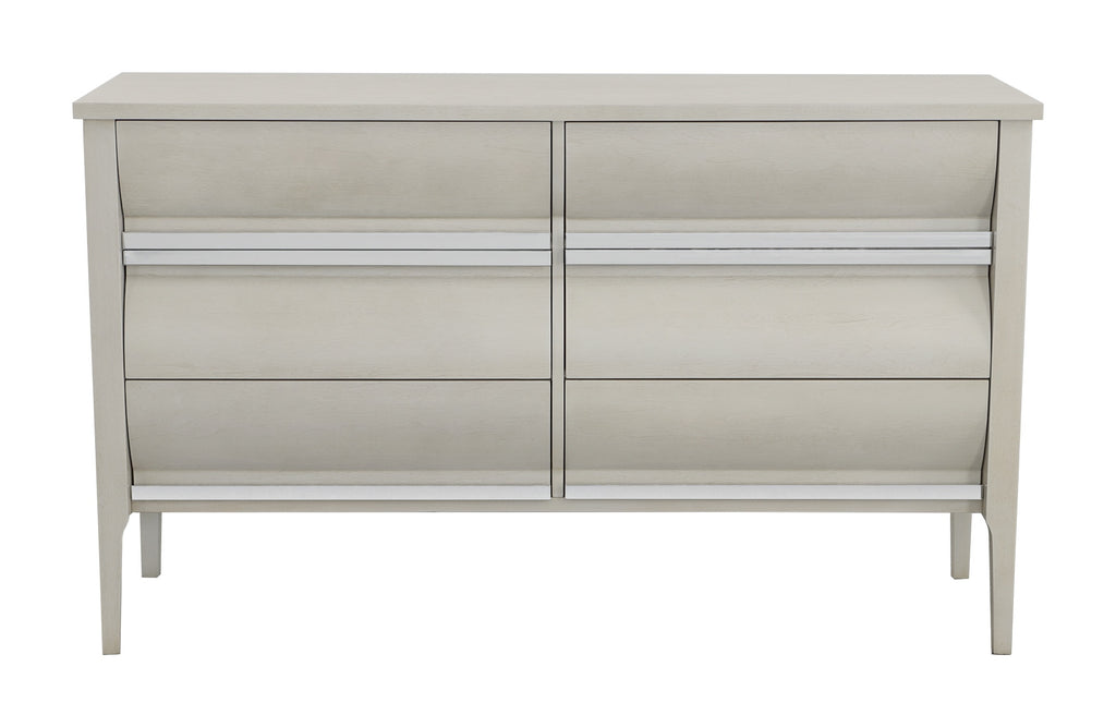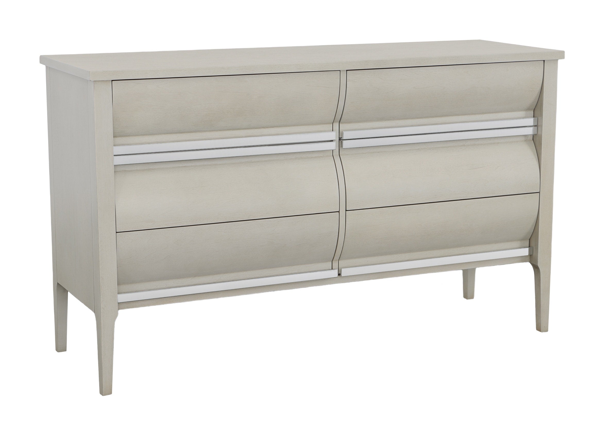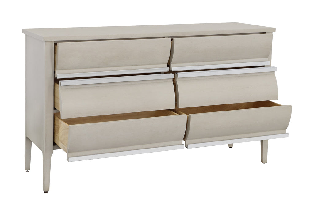 The Heatherwood features a long, bowfront drawer detail, accentuated by six drawers following different curve patterns with custom hardware running the length of the dresser.