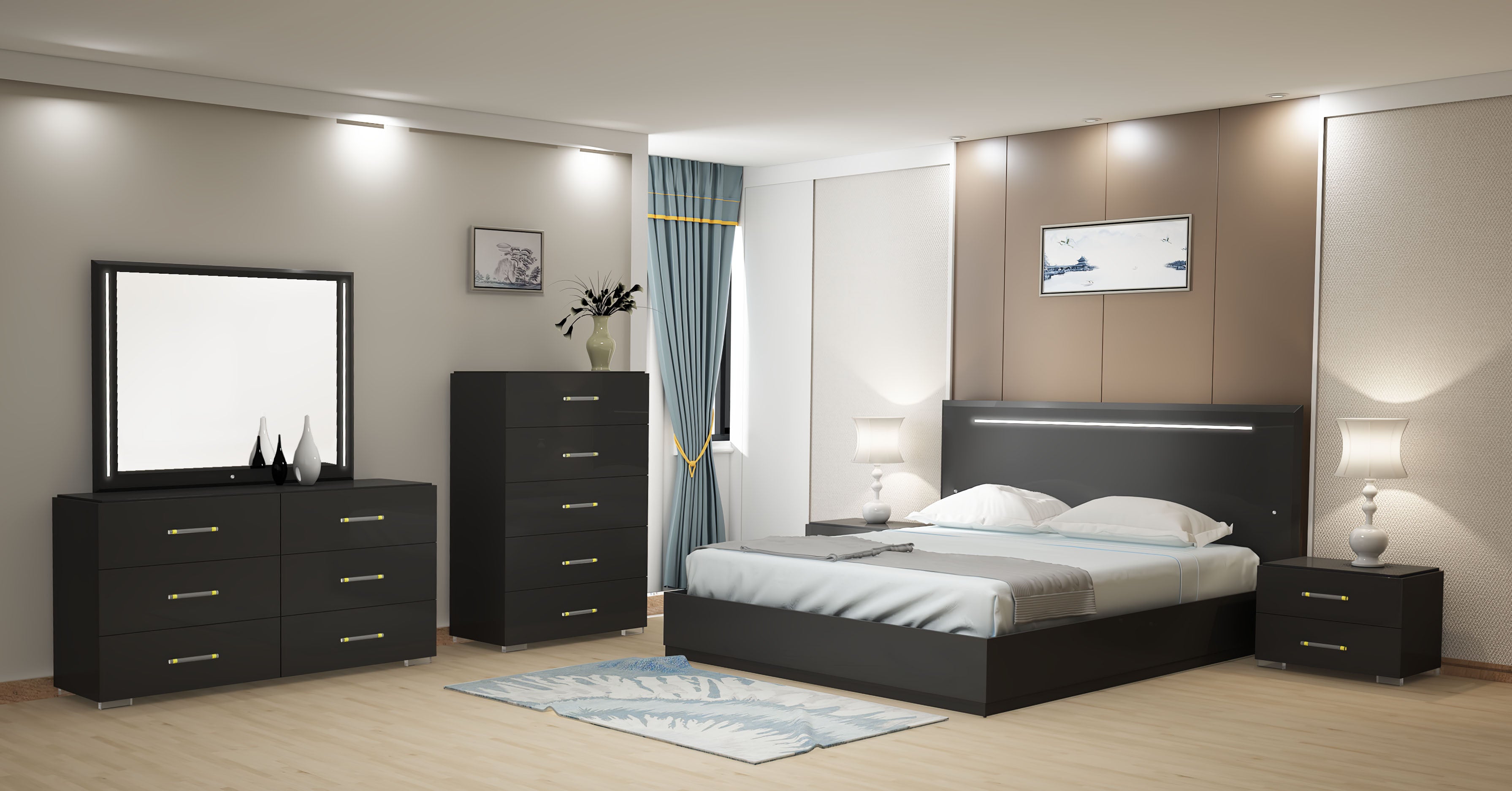 Modern 2-Drawer Gloss Black Night Stand | Modern Motion - FLORENCE-NS