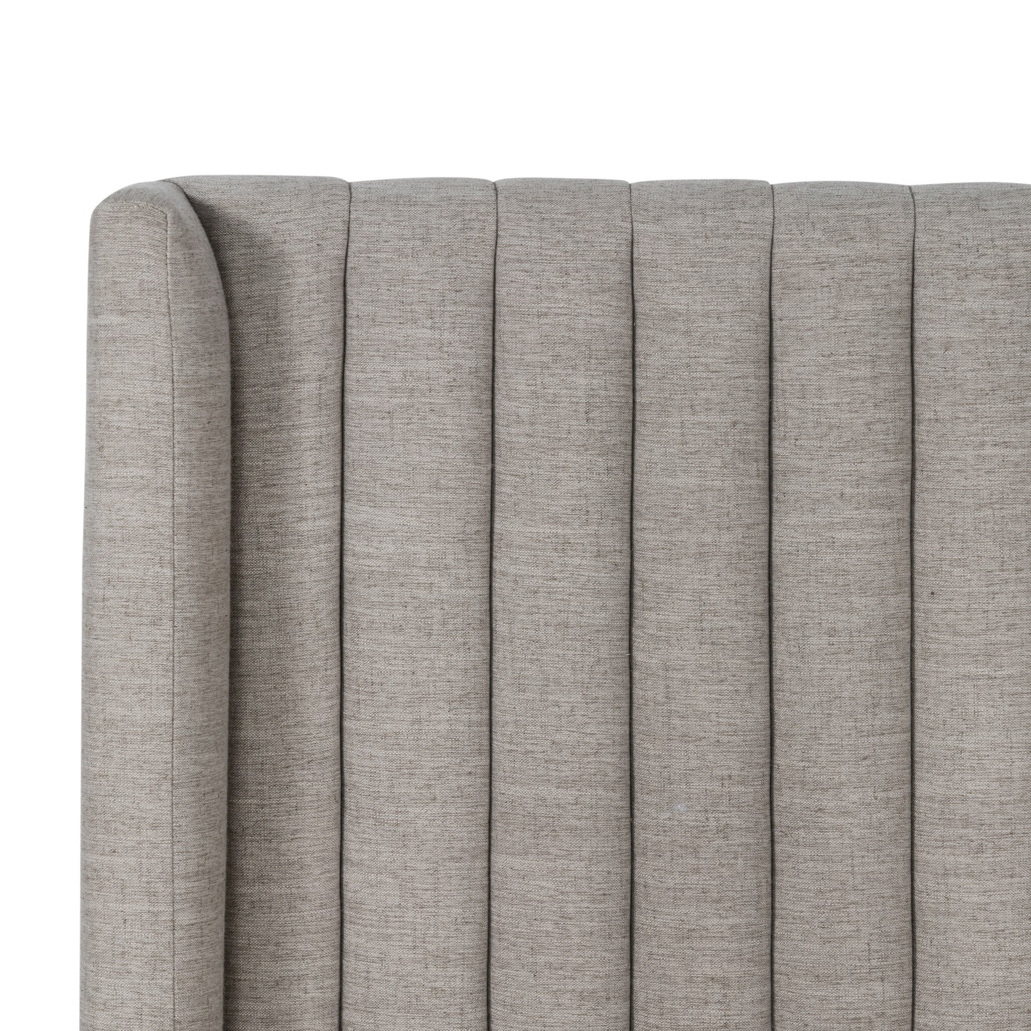 Sky-high style. A tall, vertical-channeled headboard is upholstered in grey high-performance fabric for a sensible take on modern bedroom styling. A parawood plinth base grounds the whole look. Performance fabrics are specially created to withstand spills, stains, high traffic and wear, ensuring long-term comfort and unmatched durability.