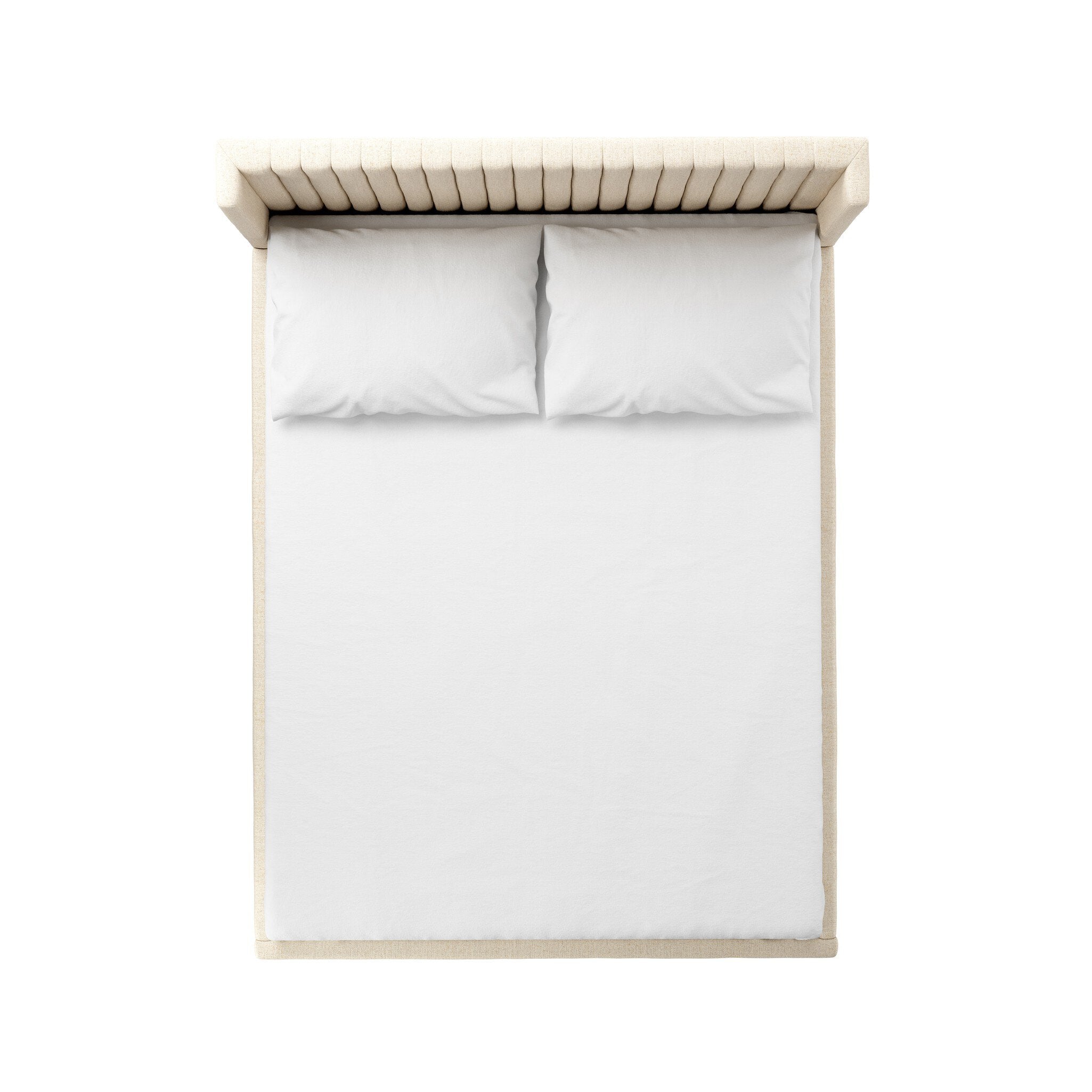 A tall, vertical-channeled headboard is upholstered in cream high-performance fabric for a fresh take on modern bedroom styling. A parawood plinth base grounds the whole look. Performance fabrics are specially created to withstand spills, stains, high traffic and wear, ensuring long-term comfort and unmatched durability.