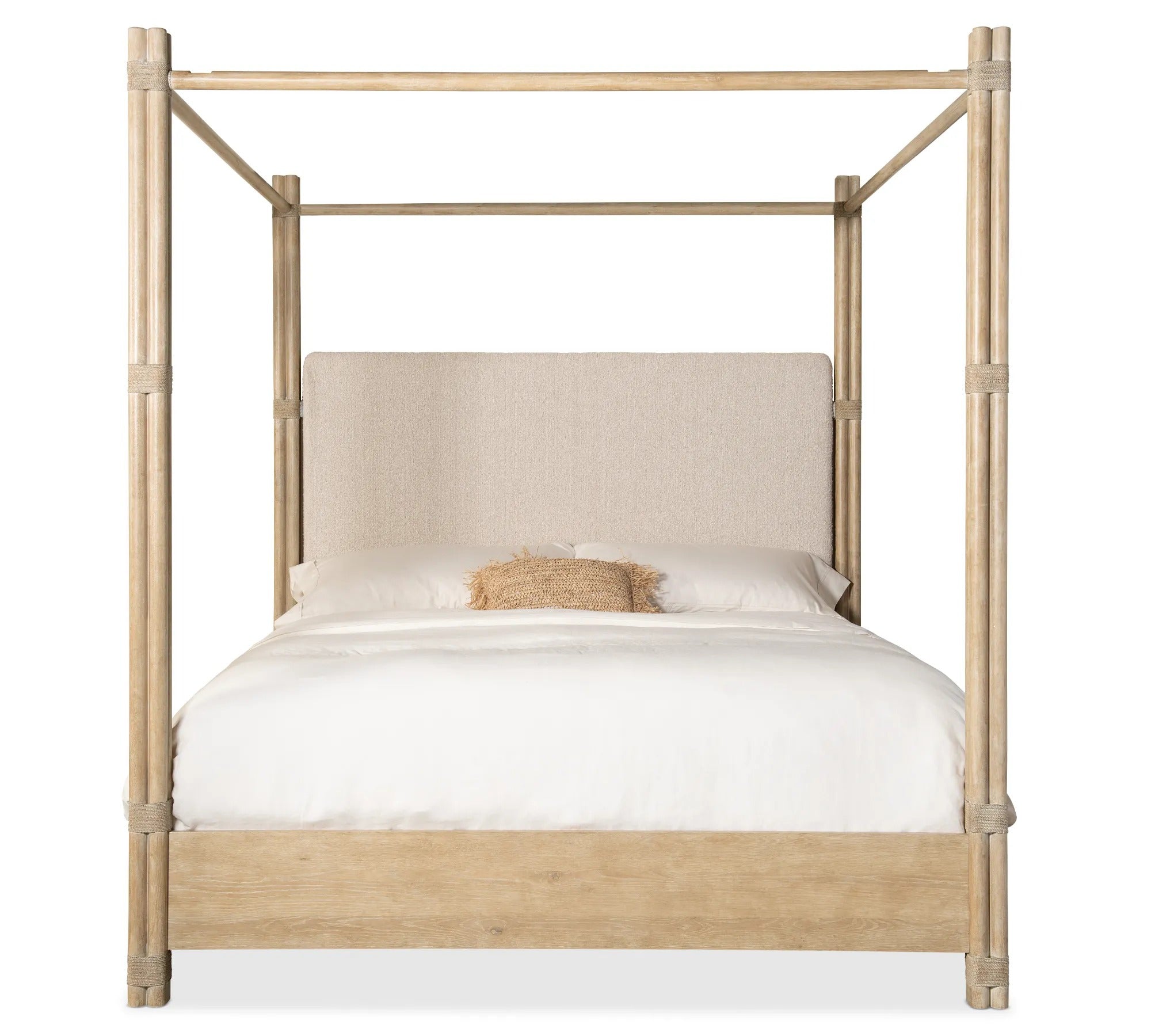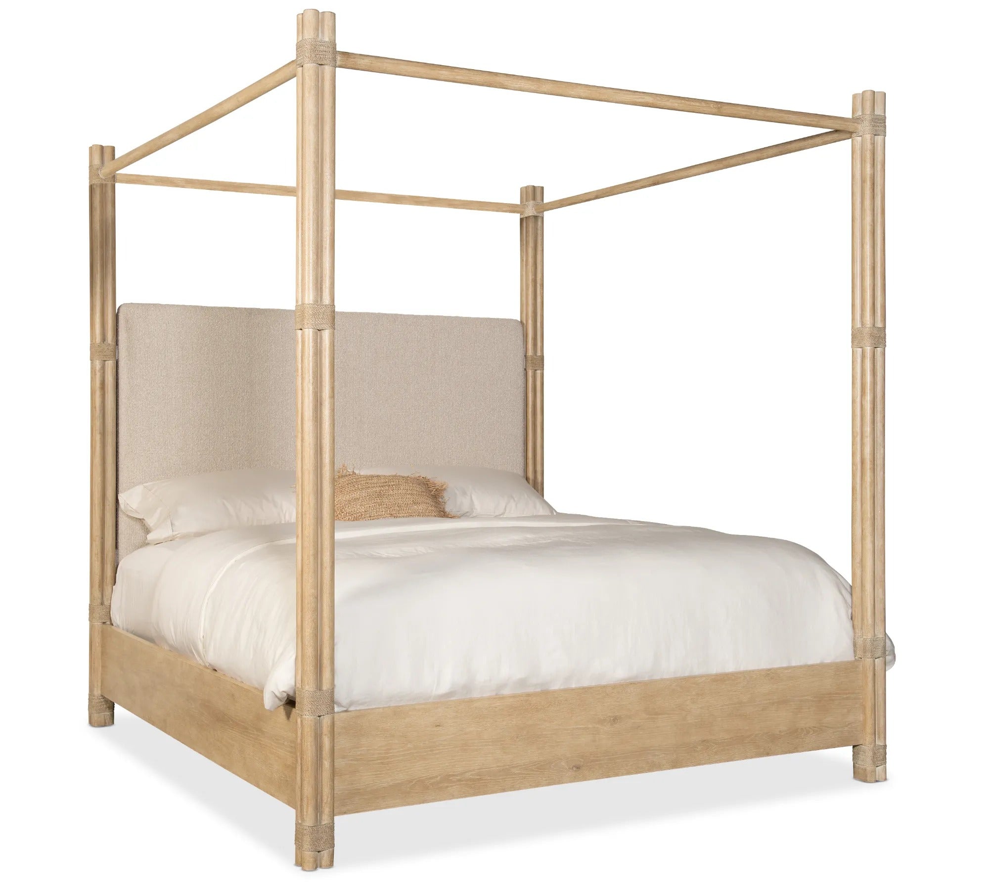 Retreat Pole Rattan King Upholstered Poster Bed w/Canopy | Hooker - 6950-90466-80