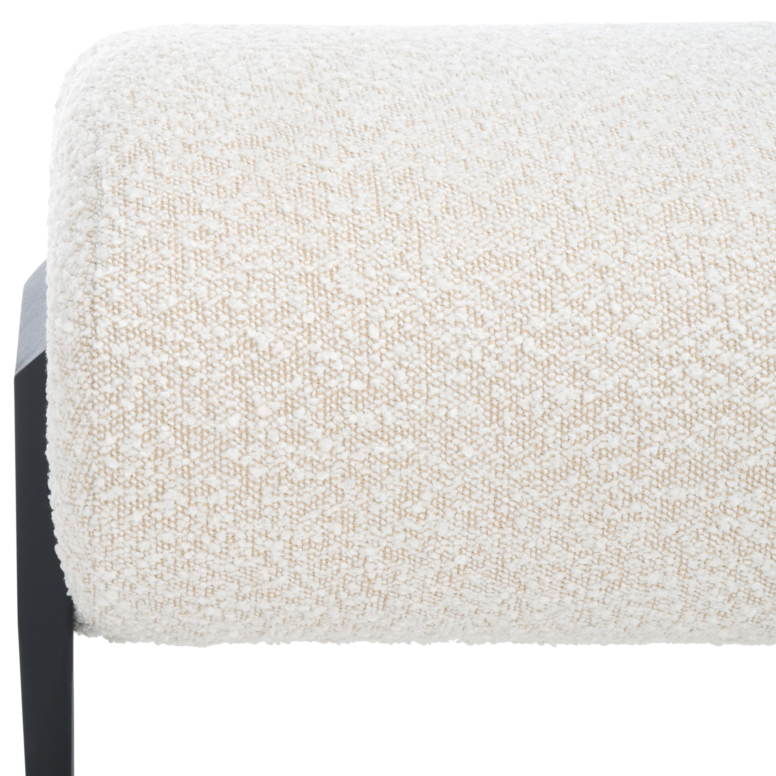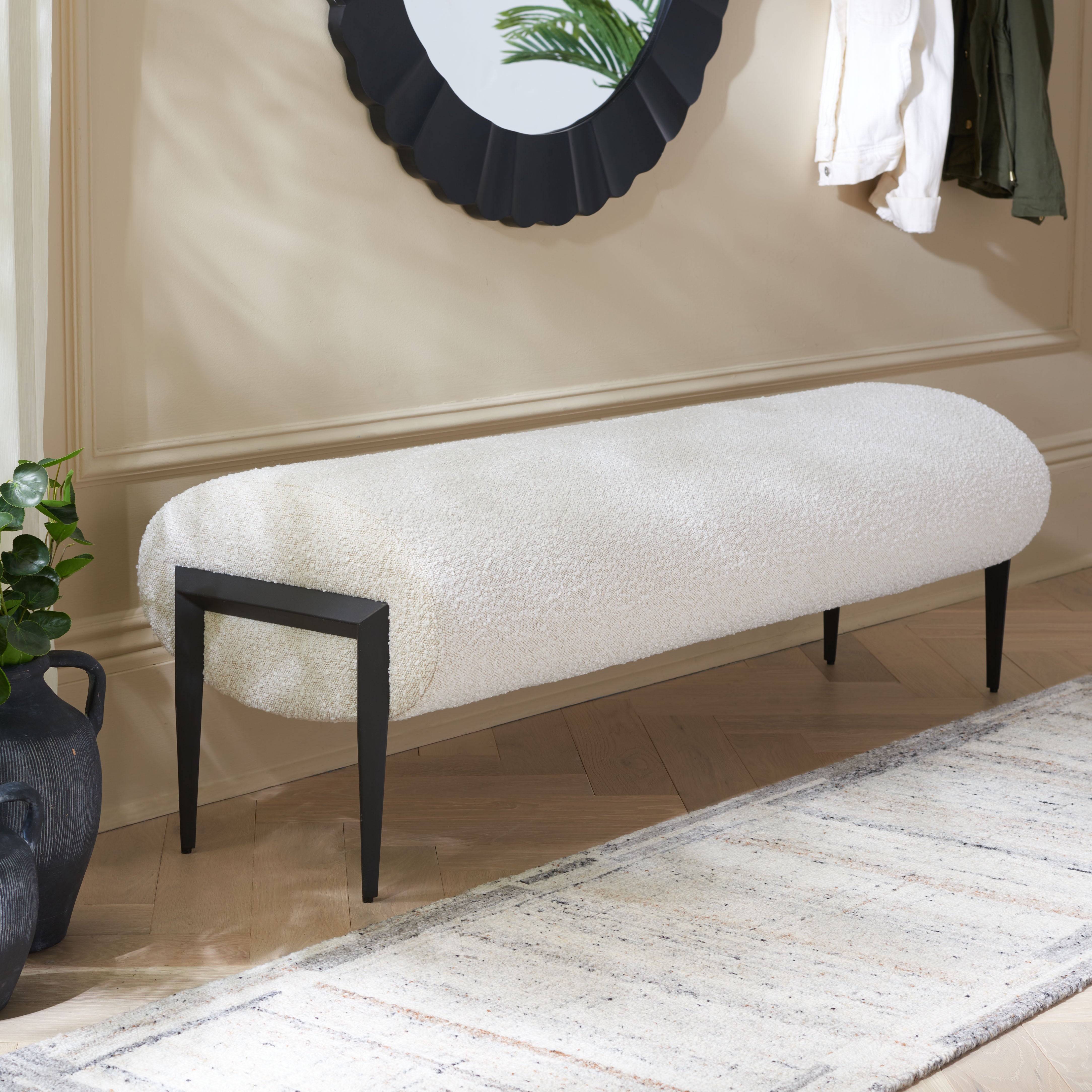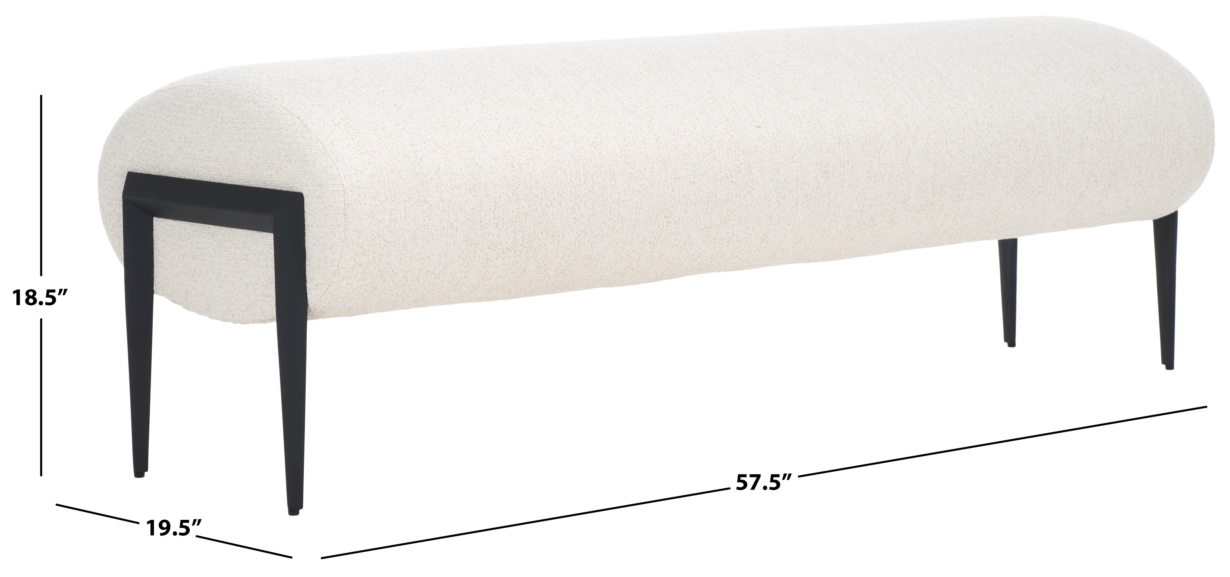 Uplift your home with the sophisticated charm and elegance of our Stacia bench. The sculptural profile and streamlined sophistication of our bench elevate any corner. It attains a plush and voluminous presence with its beautifully sculpted and rounded linen seat. Perched upon wedged black metal legs, the bench vouches for an airy profile that blends into any environment. Our bench can provide comfy seating in an entryway, living area, or complements the foot of your bed to make a stylish impact.