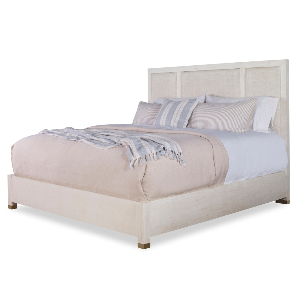 A new classic, the Atlas bed is finished in an off white with three Brown;Natural raffia panels in the headboard for a subtle relief to the wood framing. Resting on polished nickel ferruled feet for that extra twist, the Atlas is a beautifully simple bed.