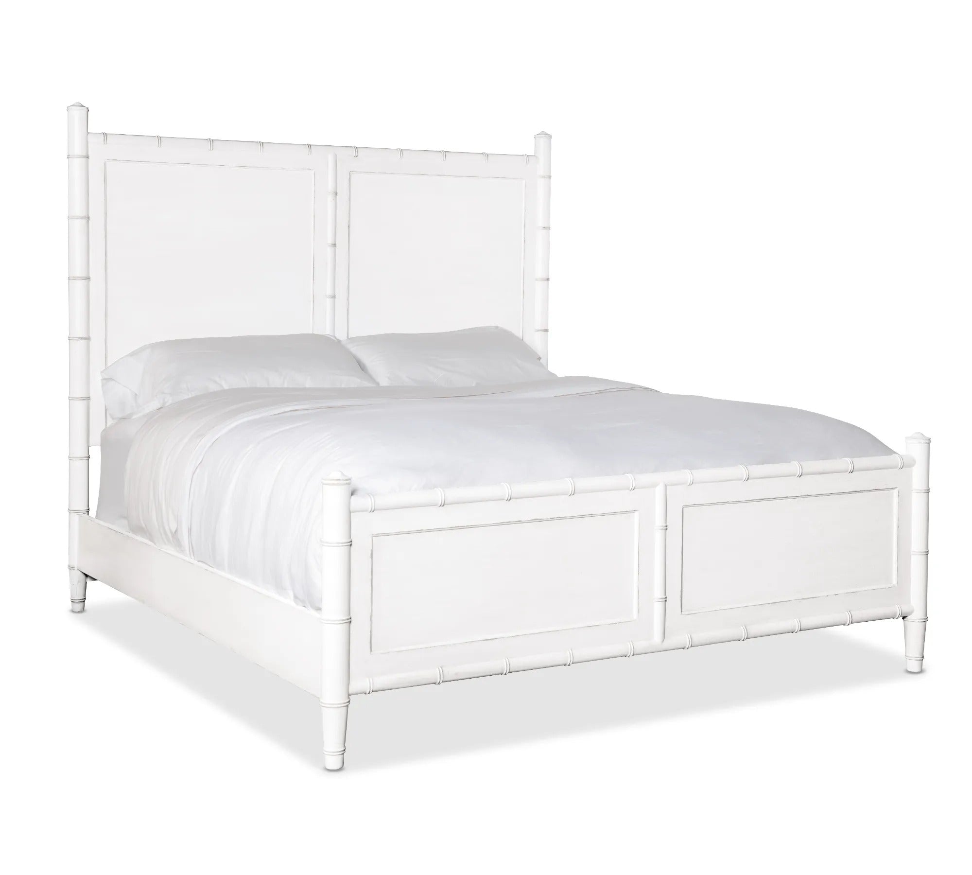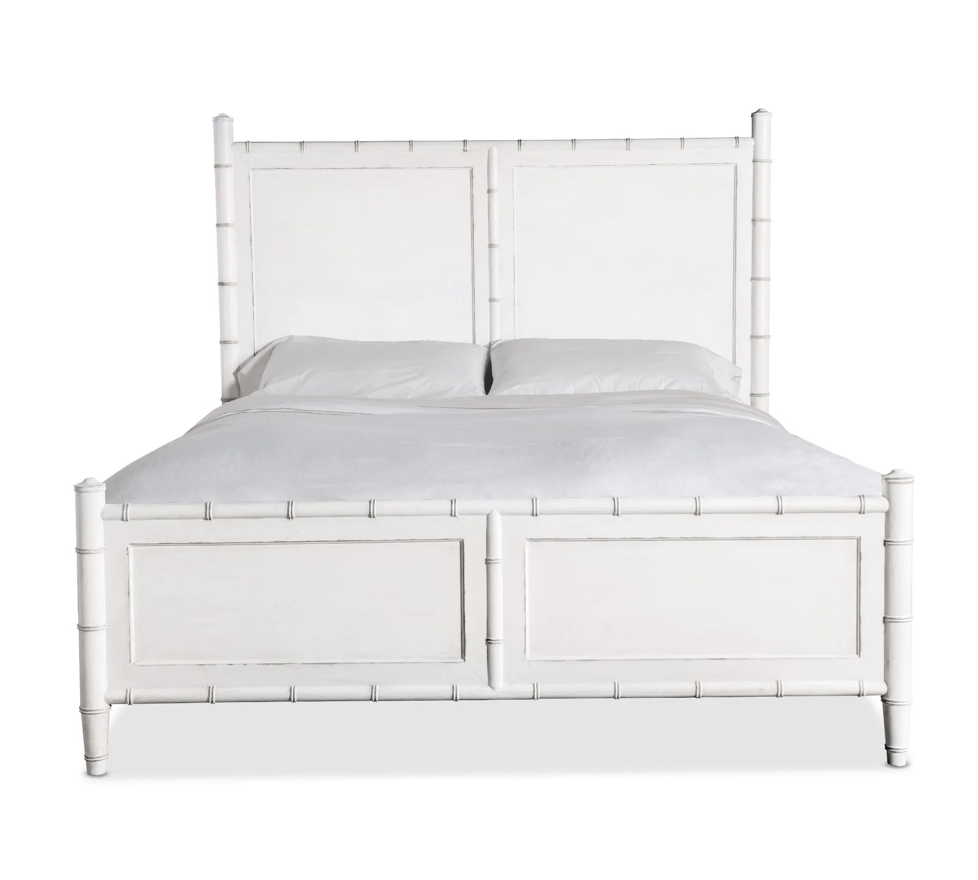 Inspired by the tropical craftsmanship of the West Indies and the cane accents of the classic British and Dutch Colonial design periods, the Charleston Panel Bed is an oasis of renewal for your bedroom space. The headboard and footboard have bamboo-motif trim and bamboo posts on the ends. The wood headboard, footboard and side rails are finished in White Heron, a softer interpretation of the classic Southern limestone white with a slightly brighter sheen, delivering an heirloom-quality finish. Headboard can be used alone.