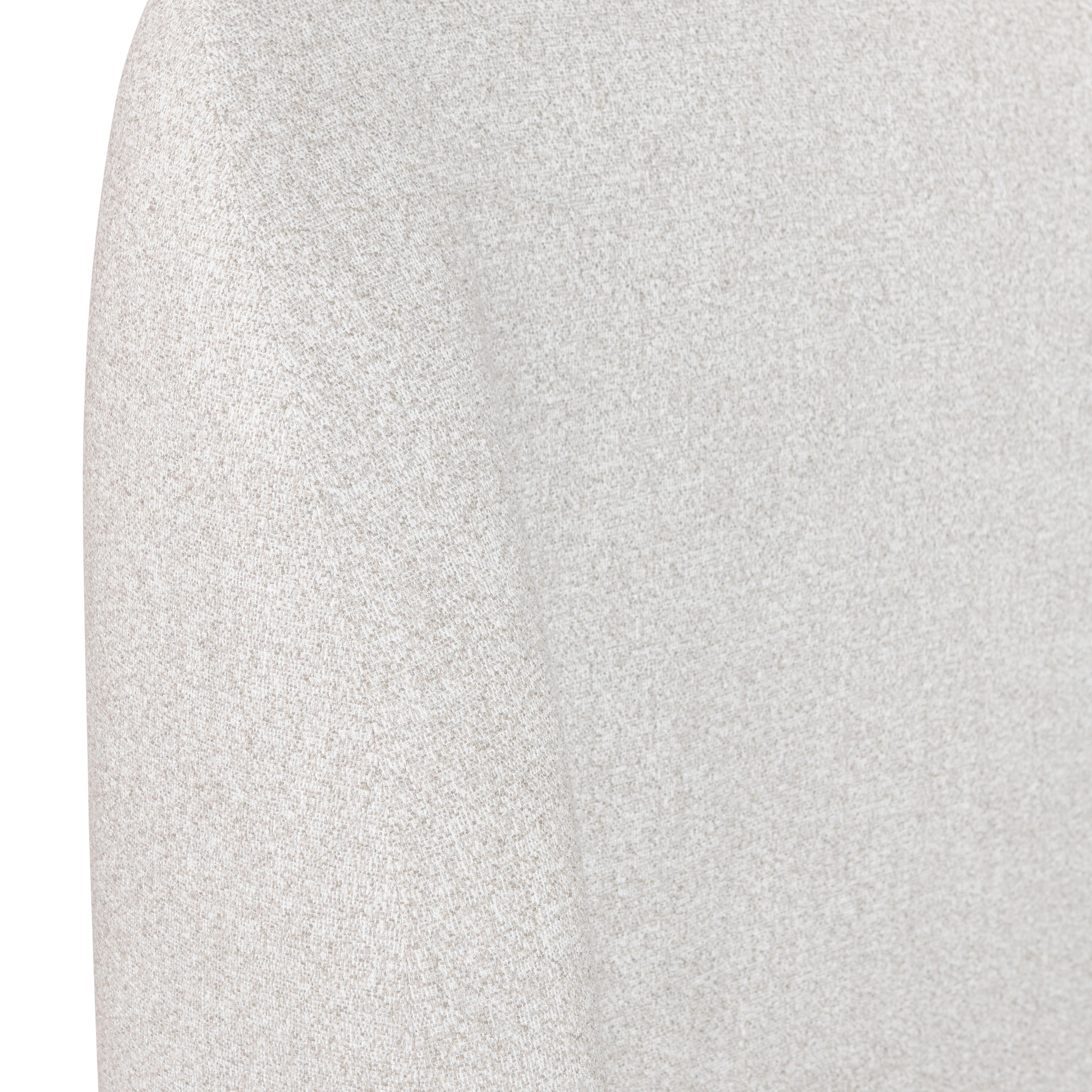 Upholstered panels bend and curve for a new modern shelter style on the Loggia bed. The headboard arcs toward the floor with wings that embrace the side panels. The soft shaping is accentuated by the fabric, while the bed is supported by exposed wood feet in Aria finish.
