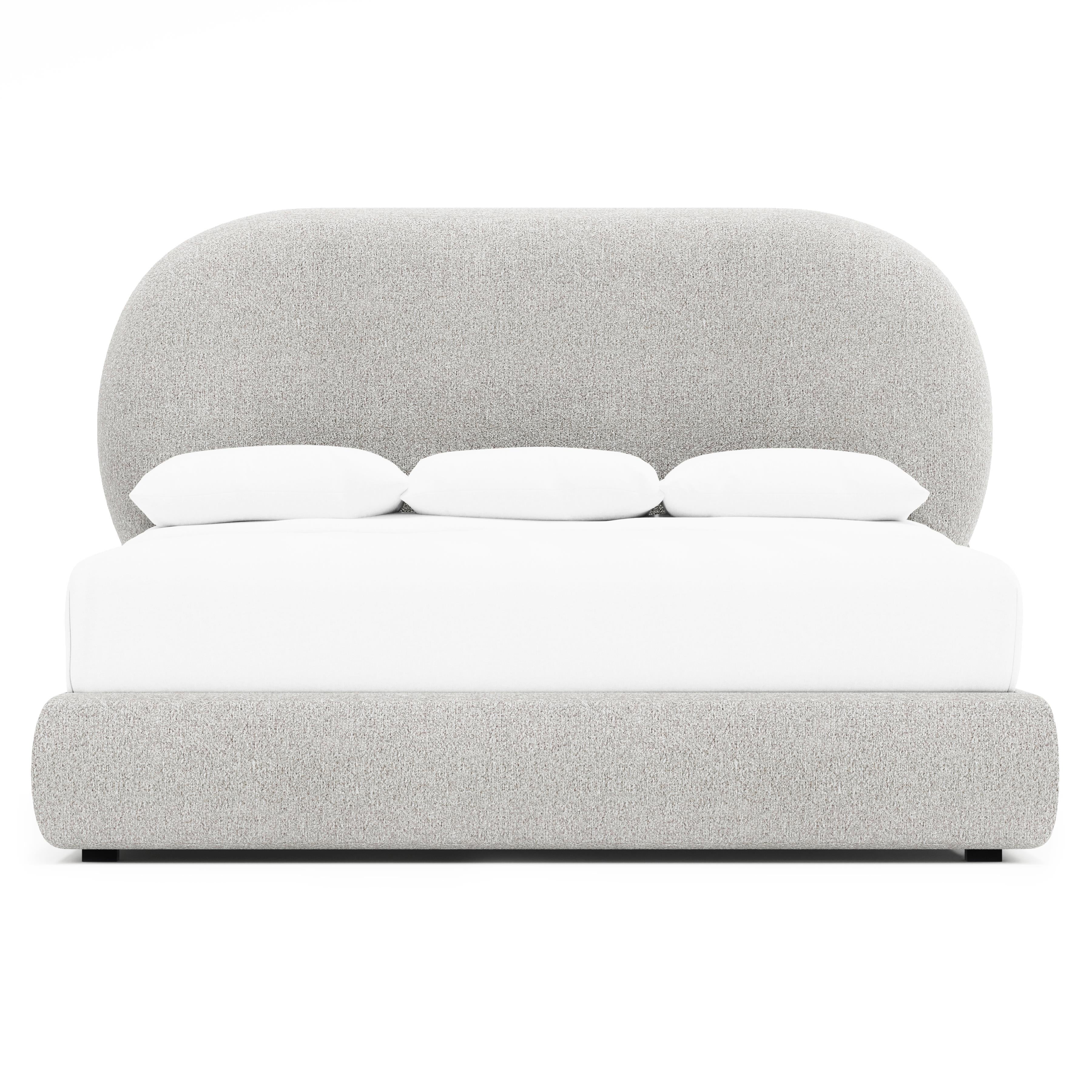 The Monolith panel bed makes a bold statement with daring shapes and a fully upholstered design. A unique curved oval headboard is nested into the back and side panels, creating a one-of-a-kind style. Exposed wood feet are finished in Puma.