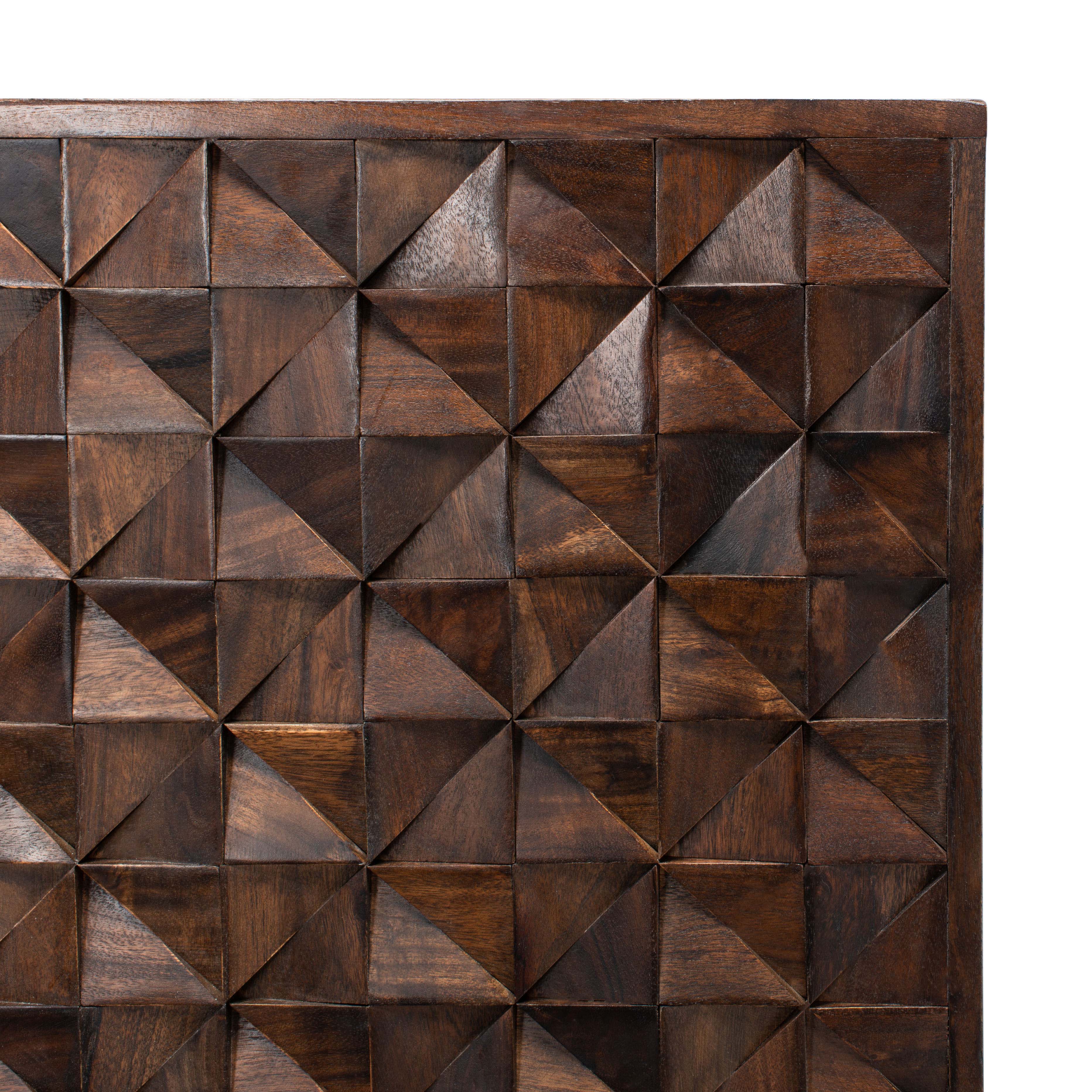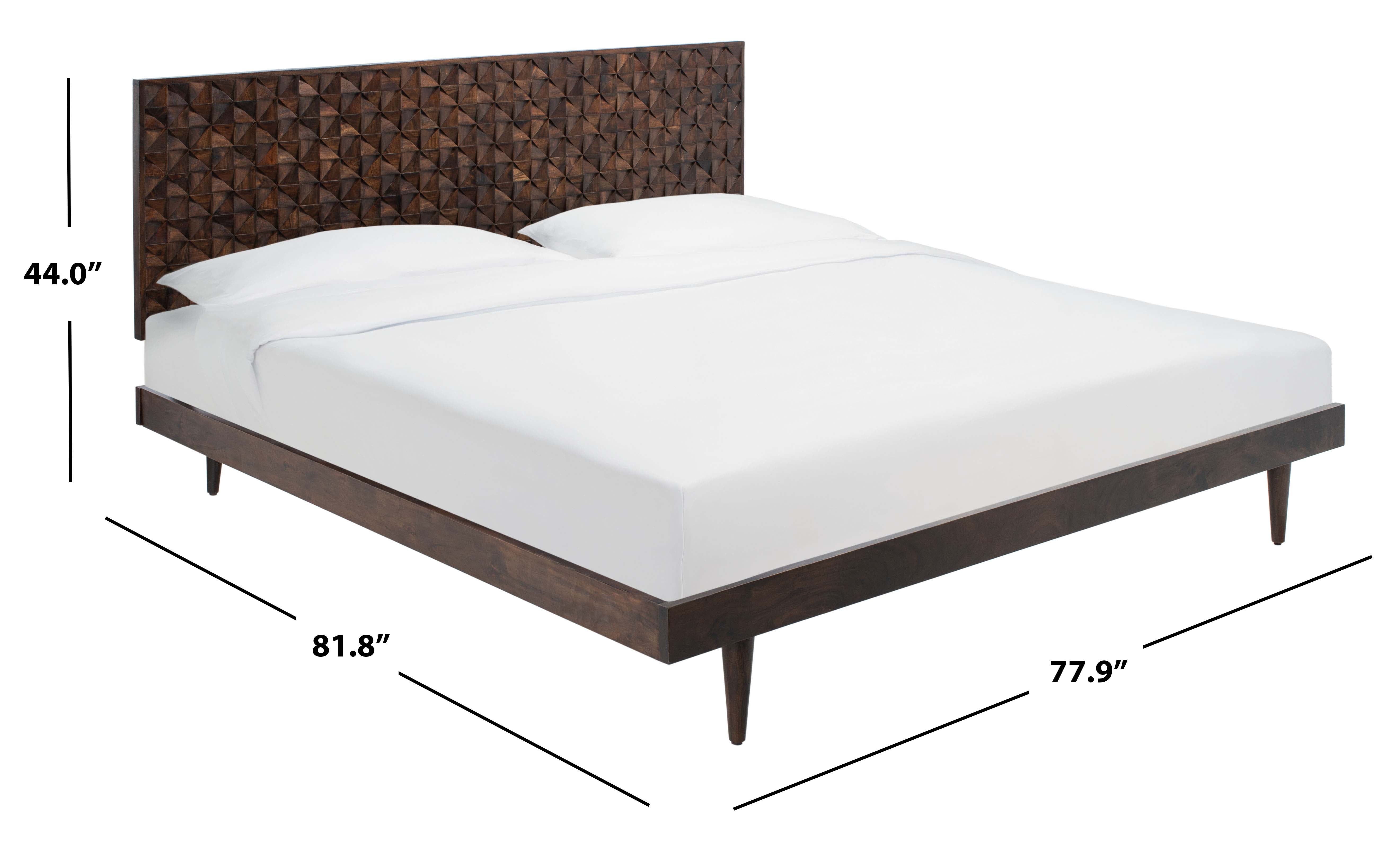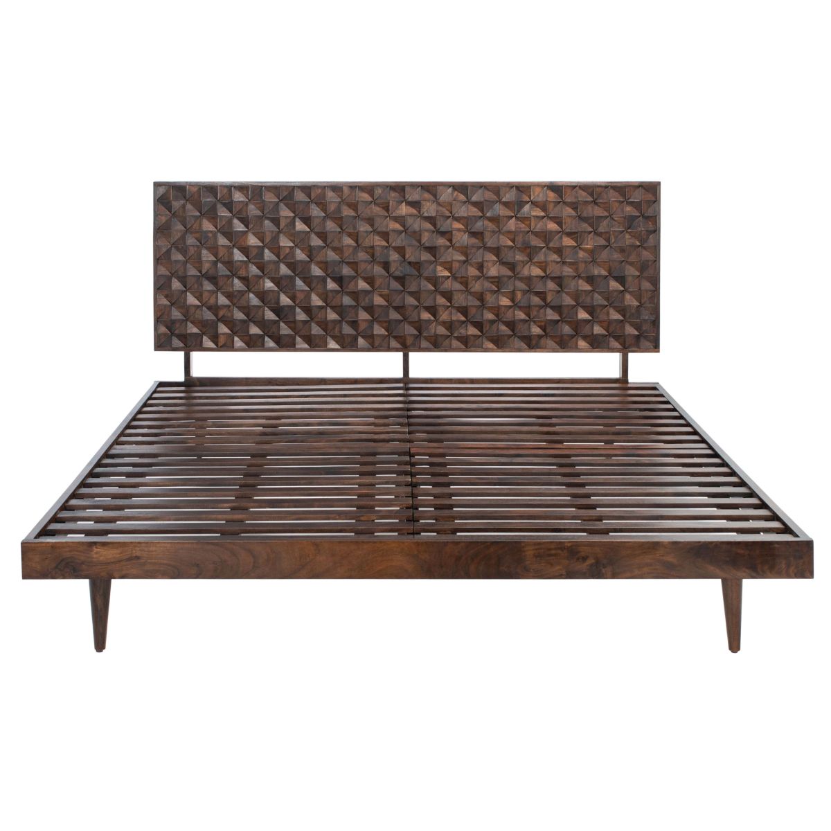 Flaunting a distinct couturier look, this Zinnia Platform Bed elevates your decor to new heights of style and glamour. Zinnia's artfully faceted headboard abounds with striking visual intrigue, making a bold contemporary statement in the bedroom. A deep walnut finish makes it perfect for any color scheme. Sized for a standard king bed.