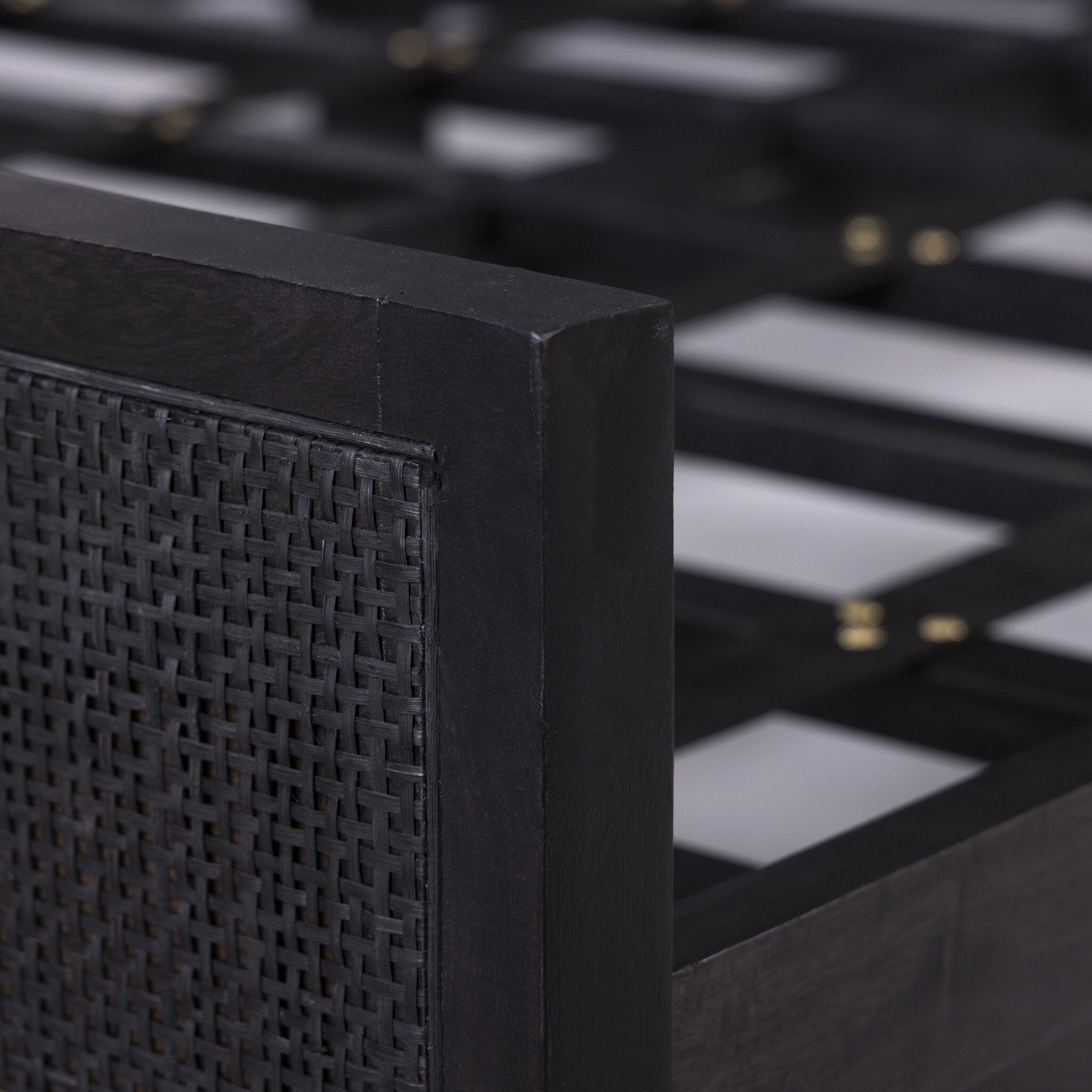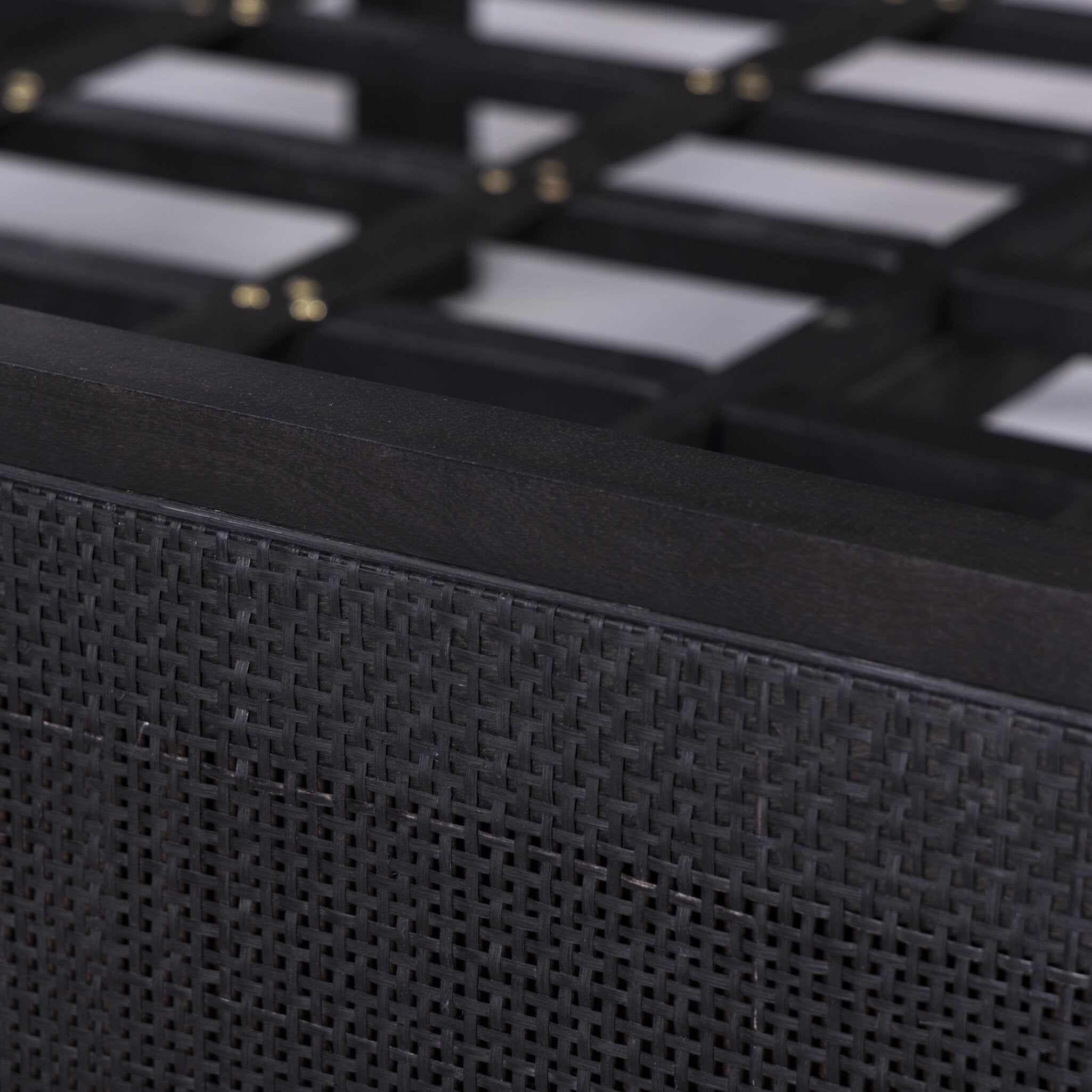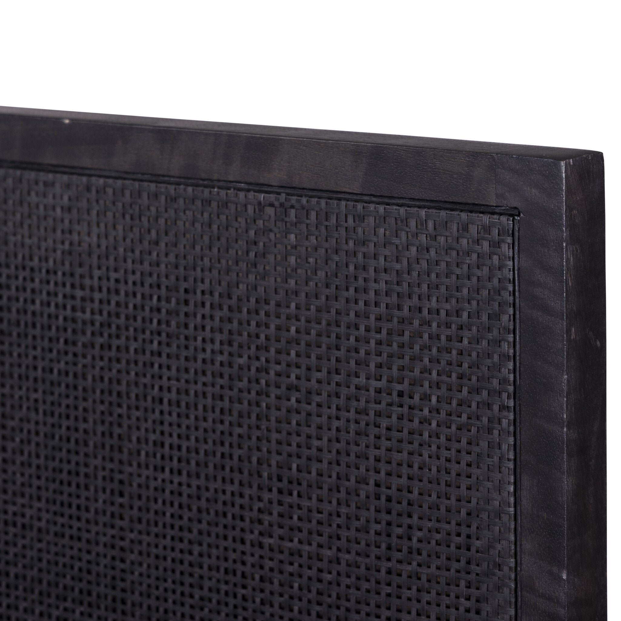 Black-washed mango frames an inset of black woven cane, for a textural, monochromatic look.