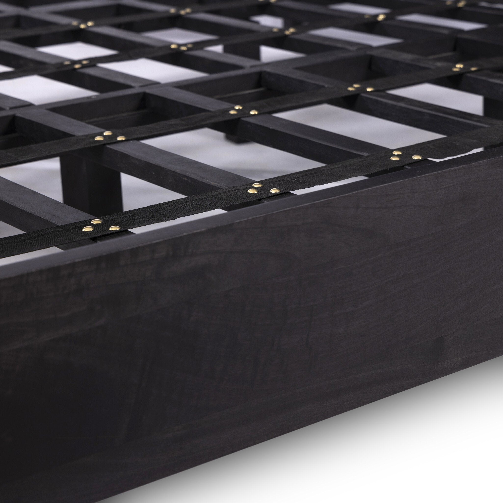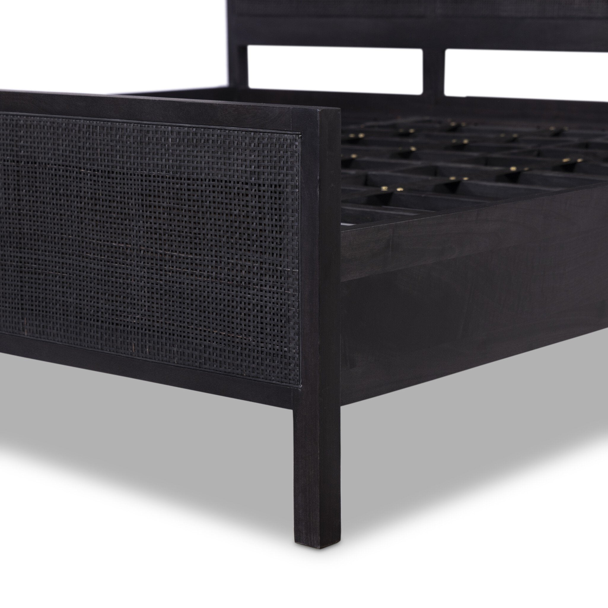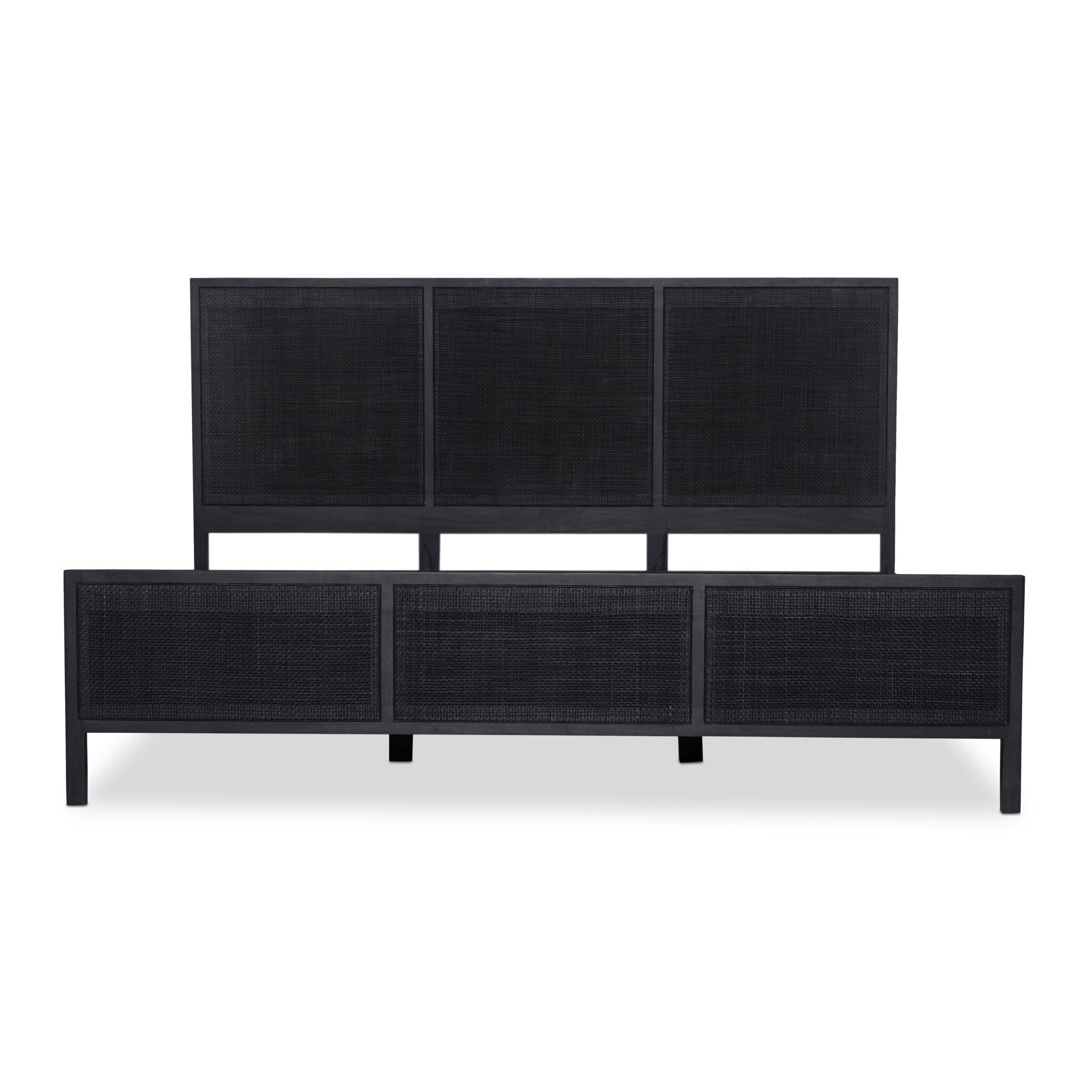 Black-washed mango frames an inset of black woven cane, for a textural, monochromatic look.