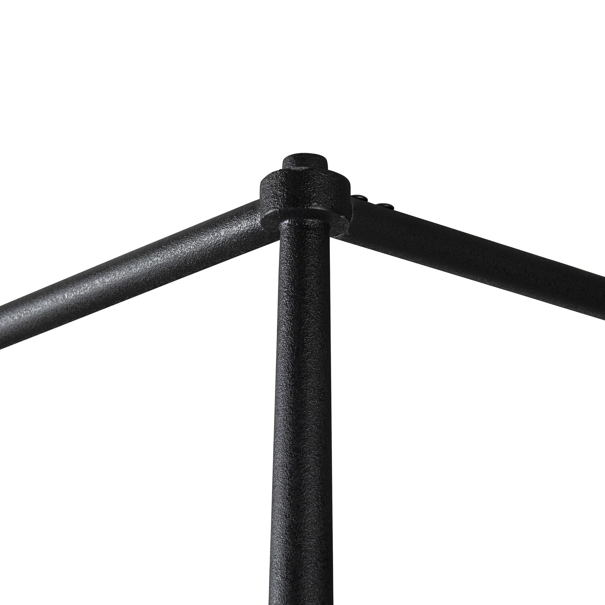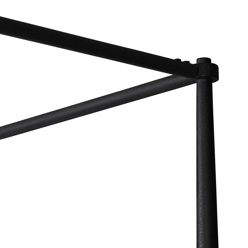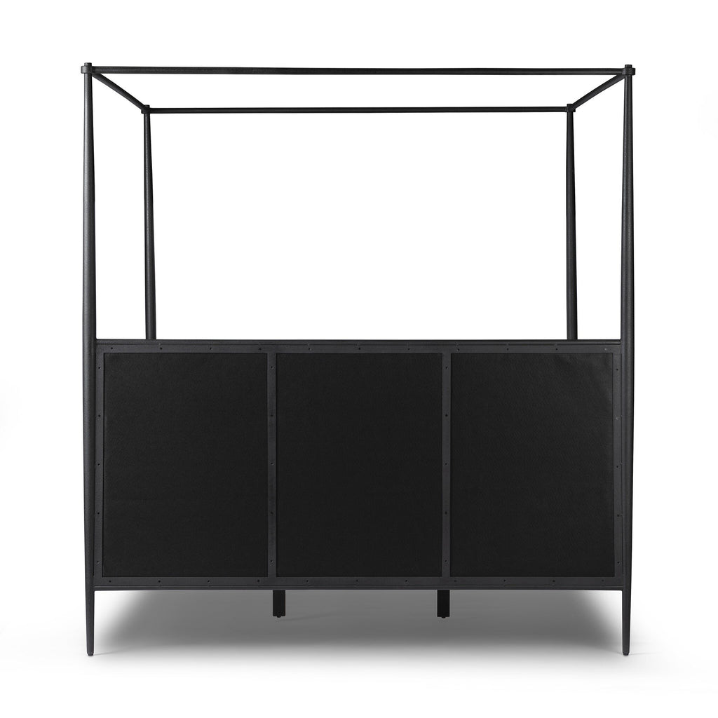 Streamlined and refined. Tapered at the top and bottom, this textured black iron canopy bed fashions a comfortable headboard upholstered in a classic cream hue for contrast.