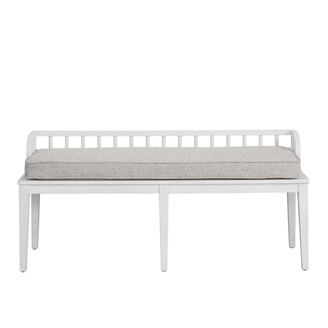 The genteel Finn Dining Bench features a plush upholstered body and white-hued tapered legs, offering both comfort and function.