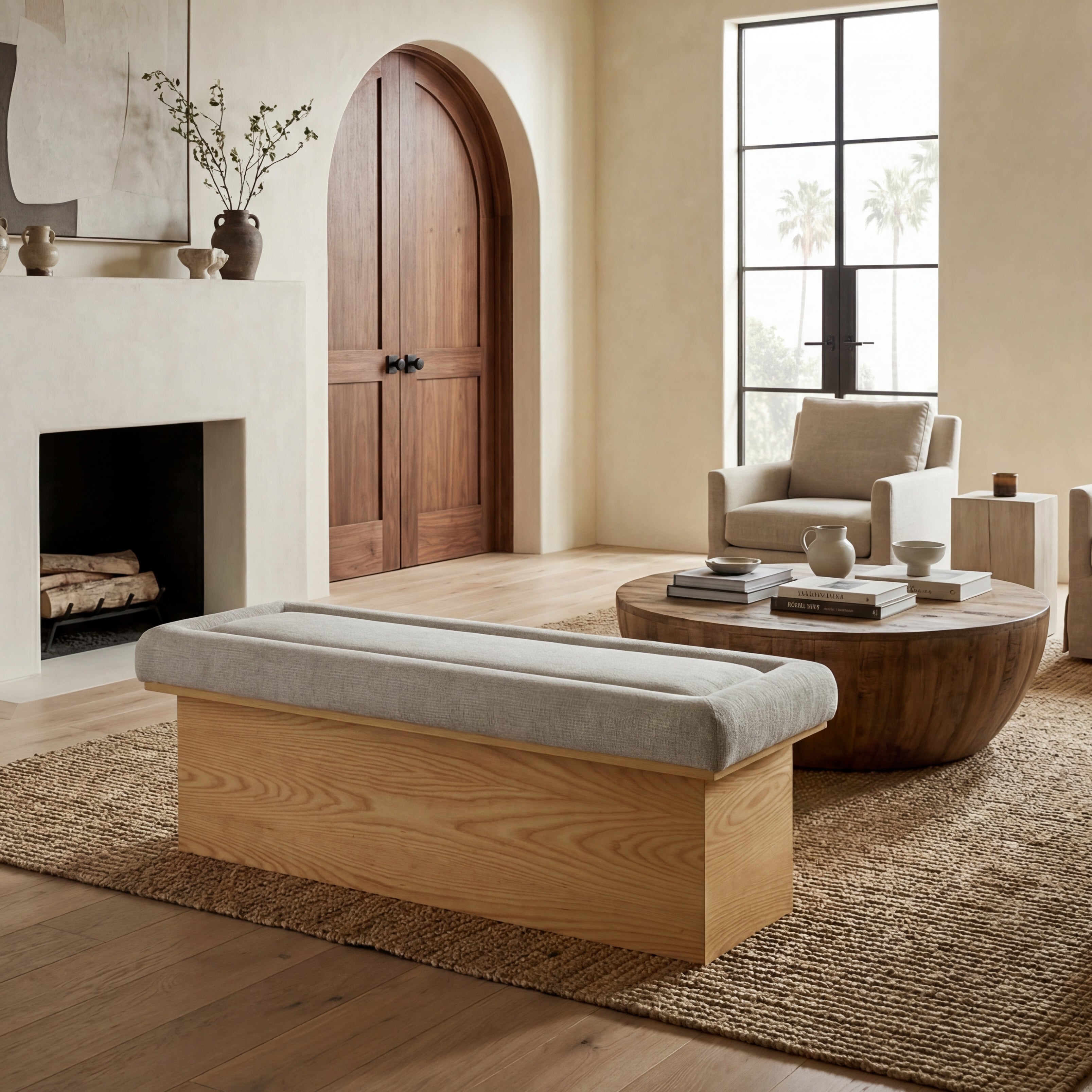 Transform your living space with the Trudy chenille and wood bench, a perfect blend of functionality and style. This piece adds warmth and charm to any room. Crafted from a combination of wood, fabric, and foam, it offers the ideal balance of support and comfort. The sleek design makes it suitable for various interior aesthetics, whether placed in a hallway, bedroom, or living area. Its understated elegance and neutral tones make it a versatile addition to your decor scheme. Embrace the inviting feel of this bench and enhance your home's atmosphere effortlessly. Whether used as a cozy reading spot or a convenient seating solution, the Trudy bench seamlessly fits into your daily routine. Its wood structure provides a sturdy foundation, while the fabric upholstery offers a soft touch for your relaxation moments. Elevate your home's appeal with this charming piece that embraces both form and function.