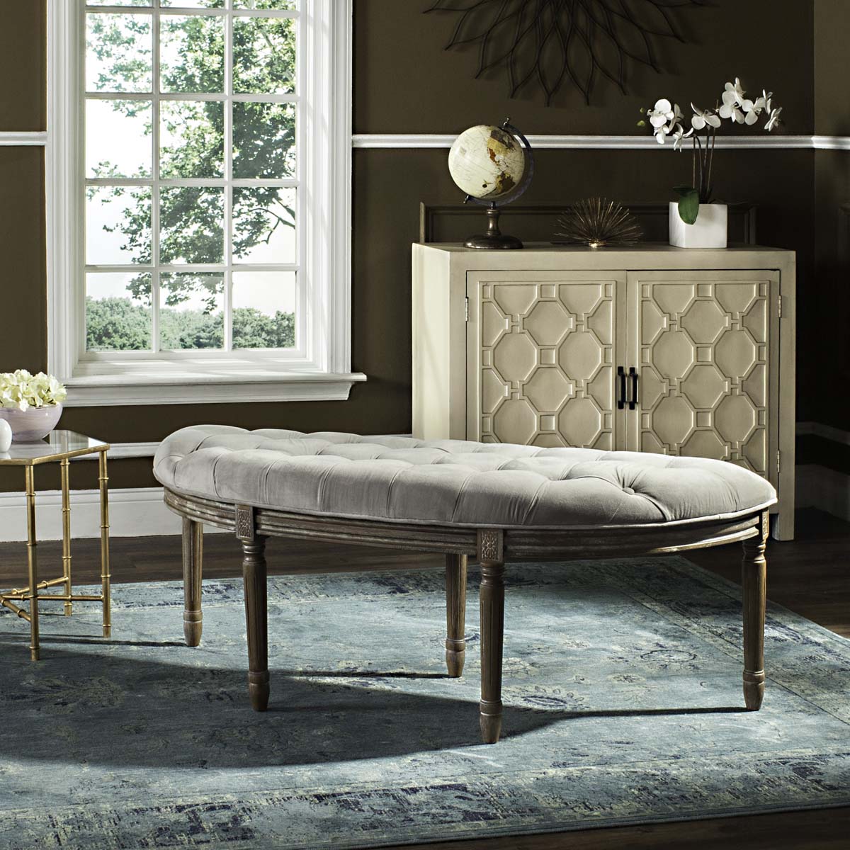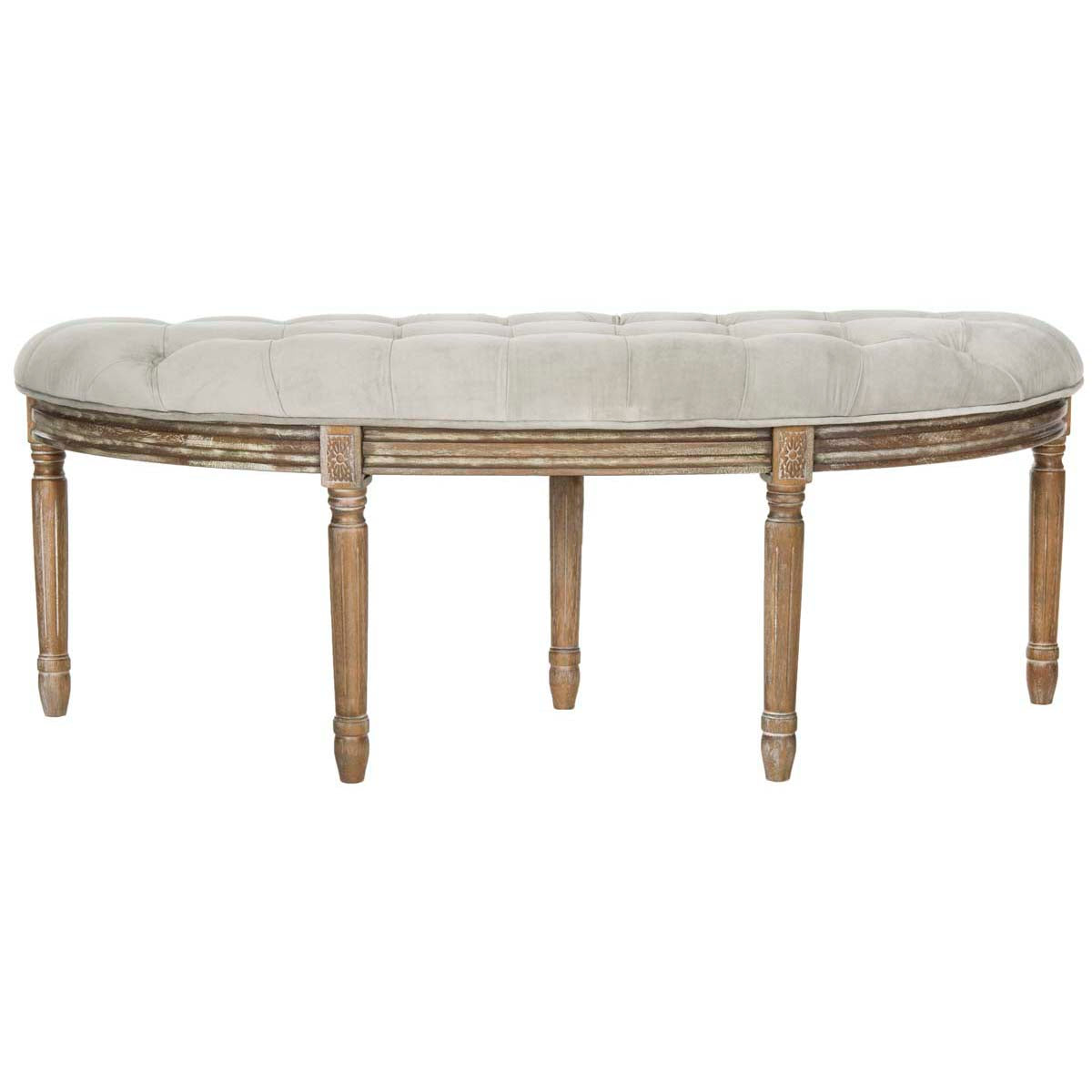 Safavieh Abilene Tufted Rustic Semi Circle Bench - Grey Velvet/Rustic Oak