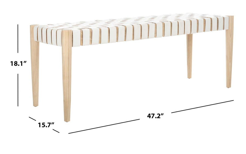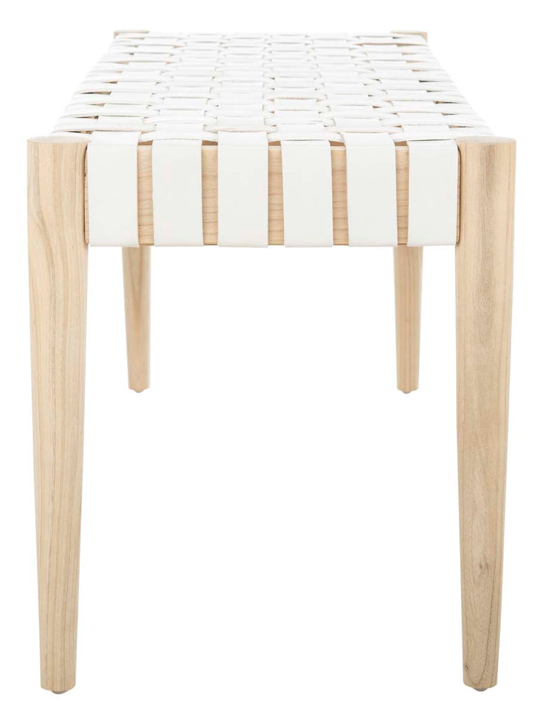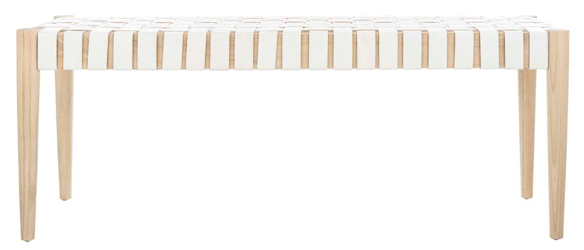 Safavieh Amalia Leather Weave Bench - Off White Leather/Light Oak