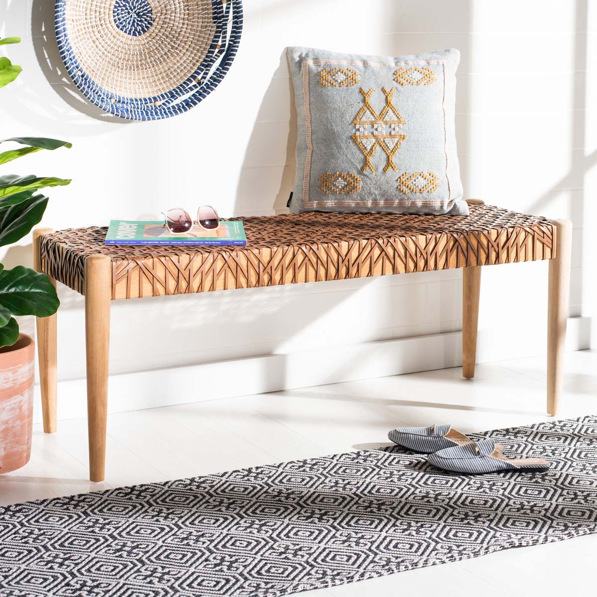 The interiors of the latest 5 star resort in the Swiss Alps inspired this contemporary bench. A modern classic, the clean lines of natural teak frame its sophisticated brown cowhide leather upholstery. Ideal as an extra surface or seat in any living room.
