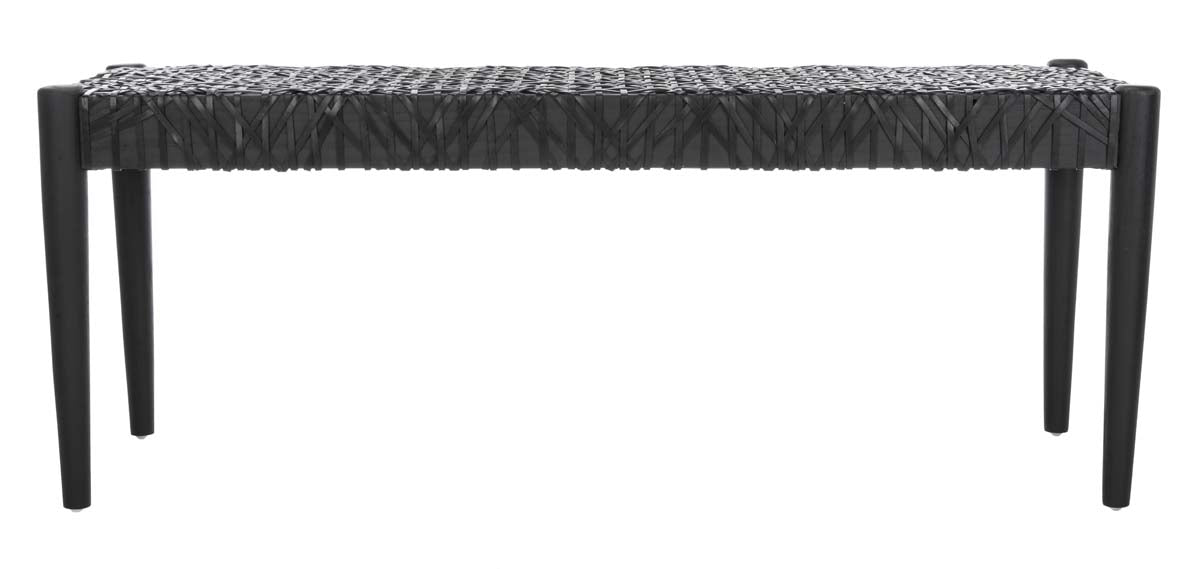 Safavieh Bandelier Leather Weave Bench - Black/Black Leather