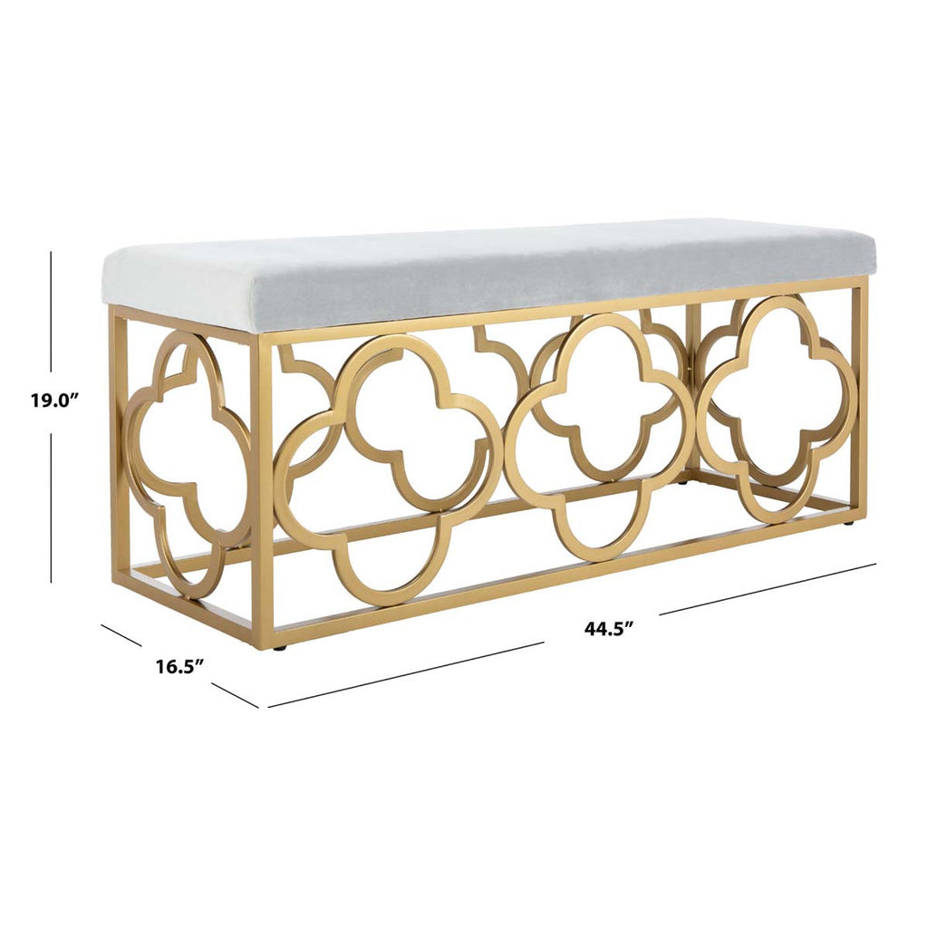 Safavieh Fleur Rectangle Bench - Grey Velvet/Gold