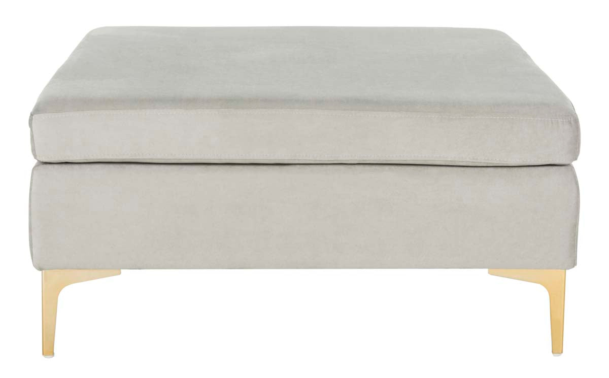 Safavieh Giovanna Square Ottoman - Grey Velvet/Brass